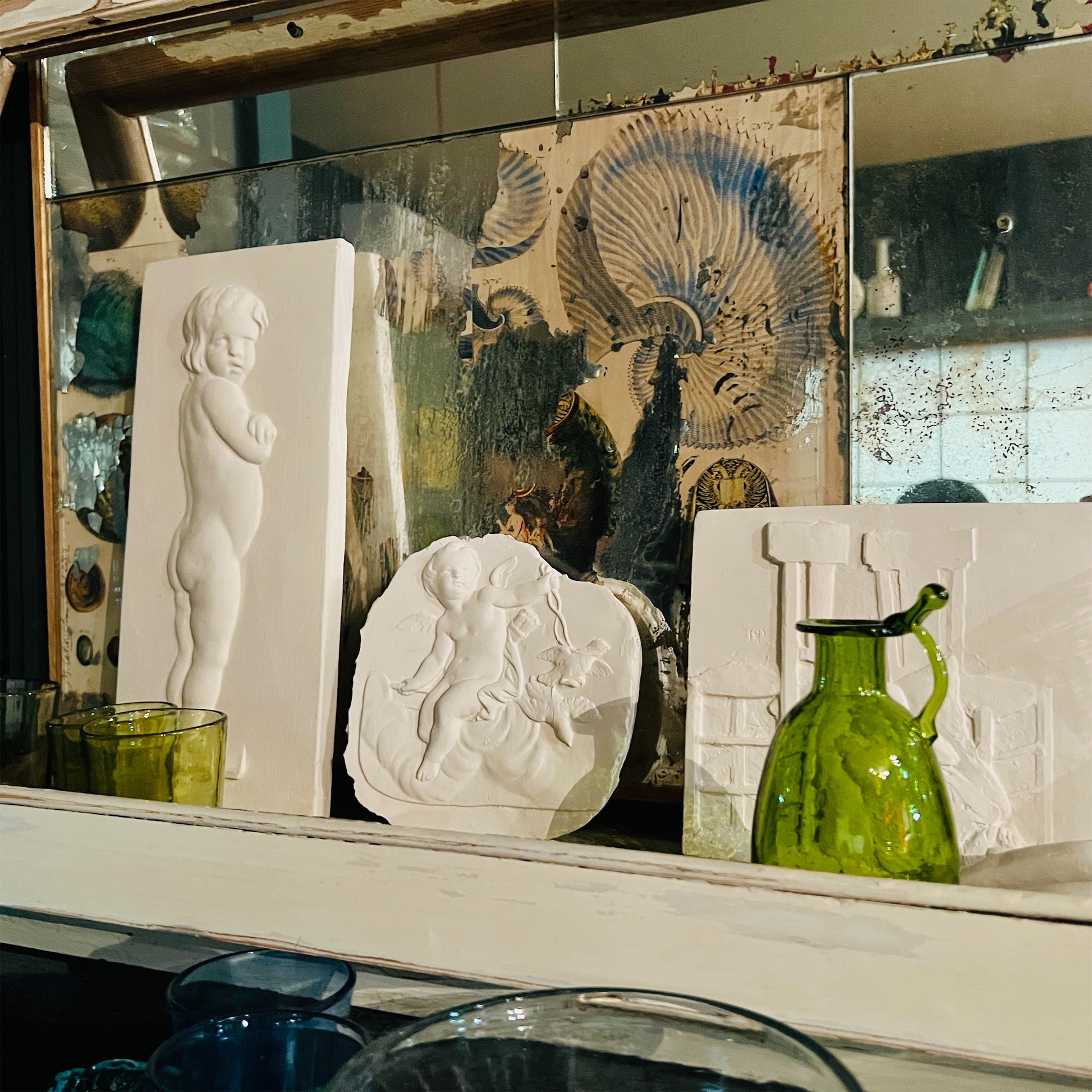 「ラ・スフルリー」は、彫刻の型を制作する職人でもあるアーティスト、セバスチャンとパートナーのヴァレンティナが2007年にパリで活動を始めた手吹きガラスのブランド。幼い頃からガラスに魅了されていたというセバスチャンは、オリジナルのデザインを手がける他、自分の家族が代々使い続けてきた日用品など、ヨーロッパで愛用されてきた「形」に着目。そこに現代のデザイン、機能性を取り入れて、フランス、イタリアの伝統的な技法でひとつひとつ手作りしています。こちらの作品は、La Soufflerieの石膏作品シリーズの一つです。全て手作業で作られています。水濡れにはご注意ください。