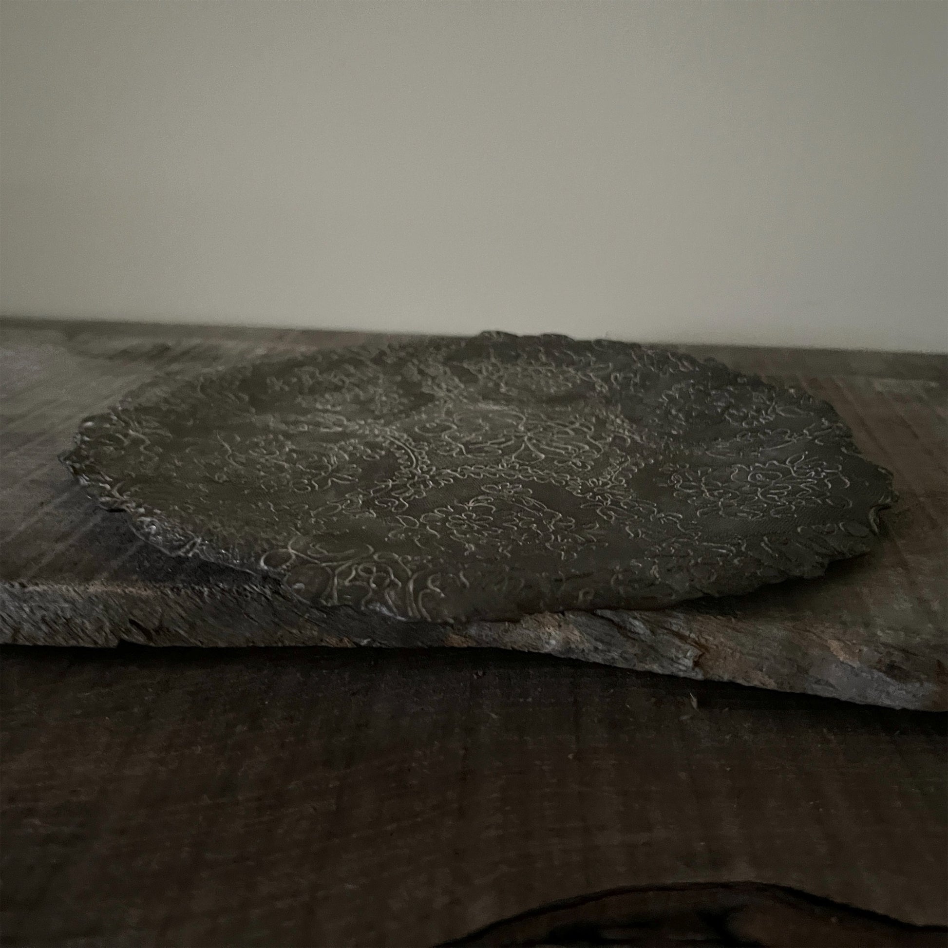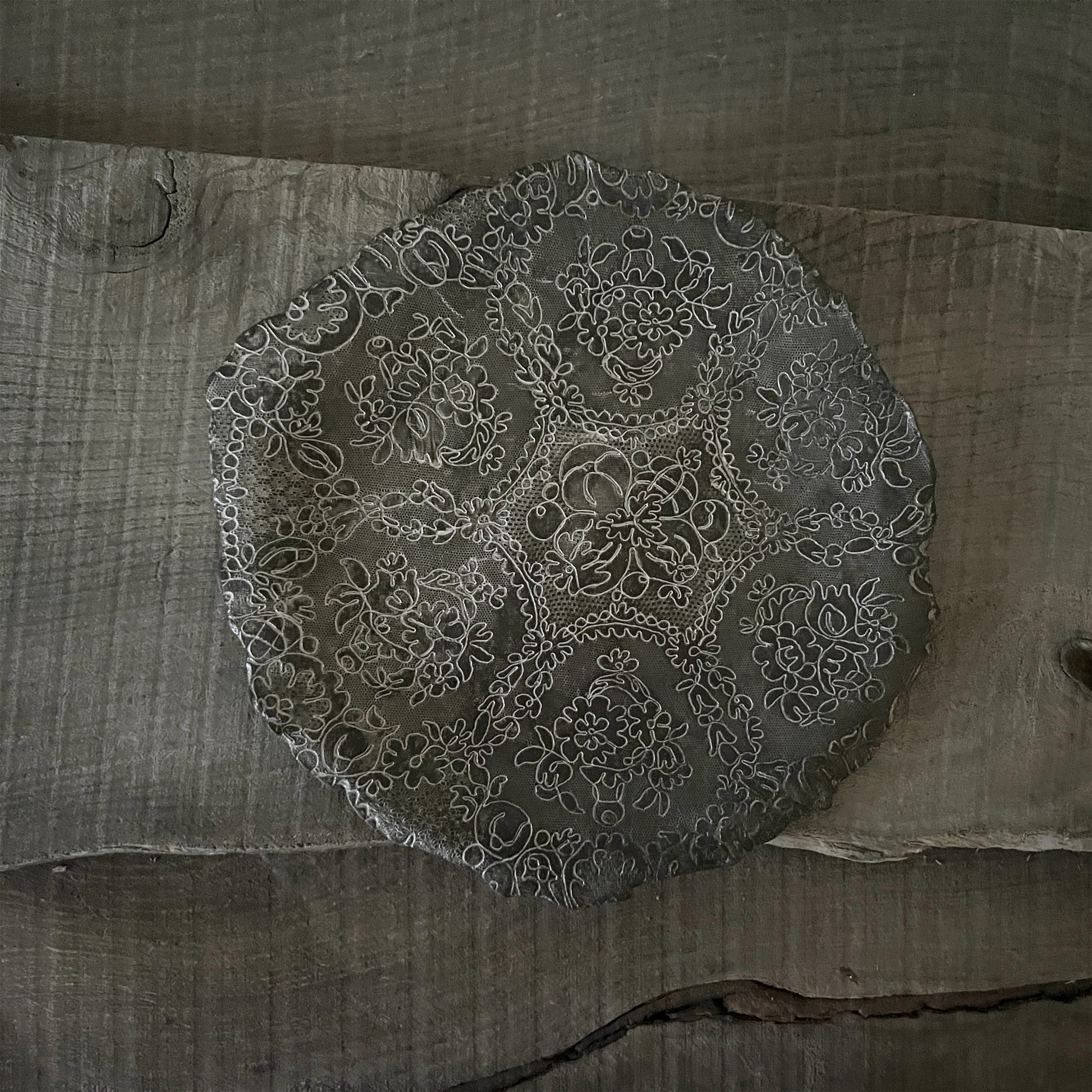 フランス人アーティストのヴァレリー・カサドが独自の手法で制作するセラミック作品。南仏ソルグ島のヴォクリューズに工房を構え、感性の赴くままに手を動かして造形しています。布地のように薄く柔らかなフォルムで、粉砂糖をまとったお菓子のような表情があります。古いものに関心の深い彼女が集めたアンティークのレースやボタンで表現された美しいレリーフが魅力。作家の優しさが伝わってくるような、ひとつとして同じものがない作品です。*手作りのため、形や風合いには個体差があります。