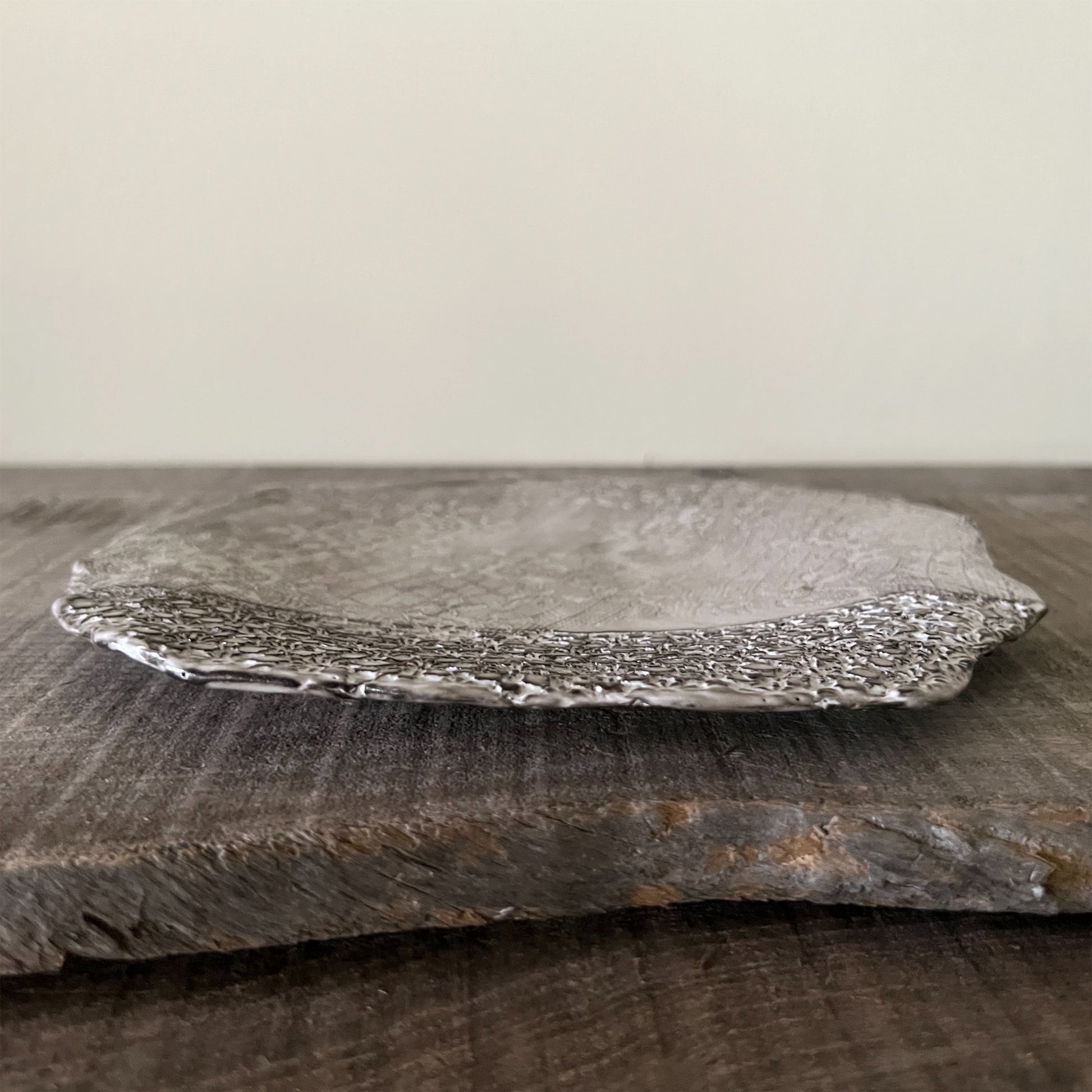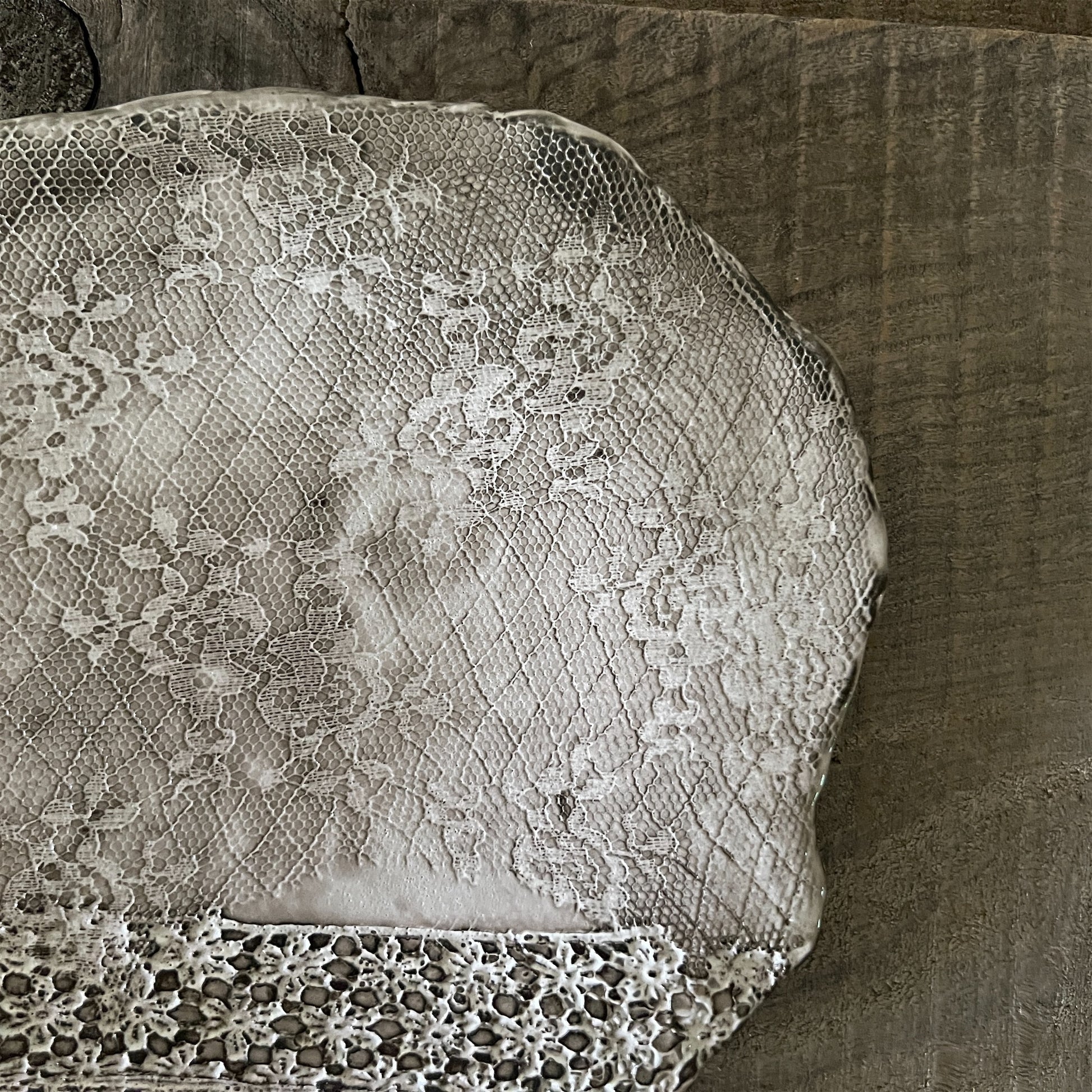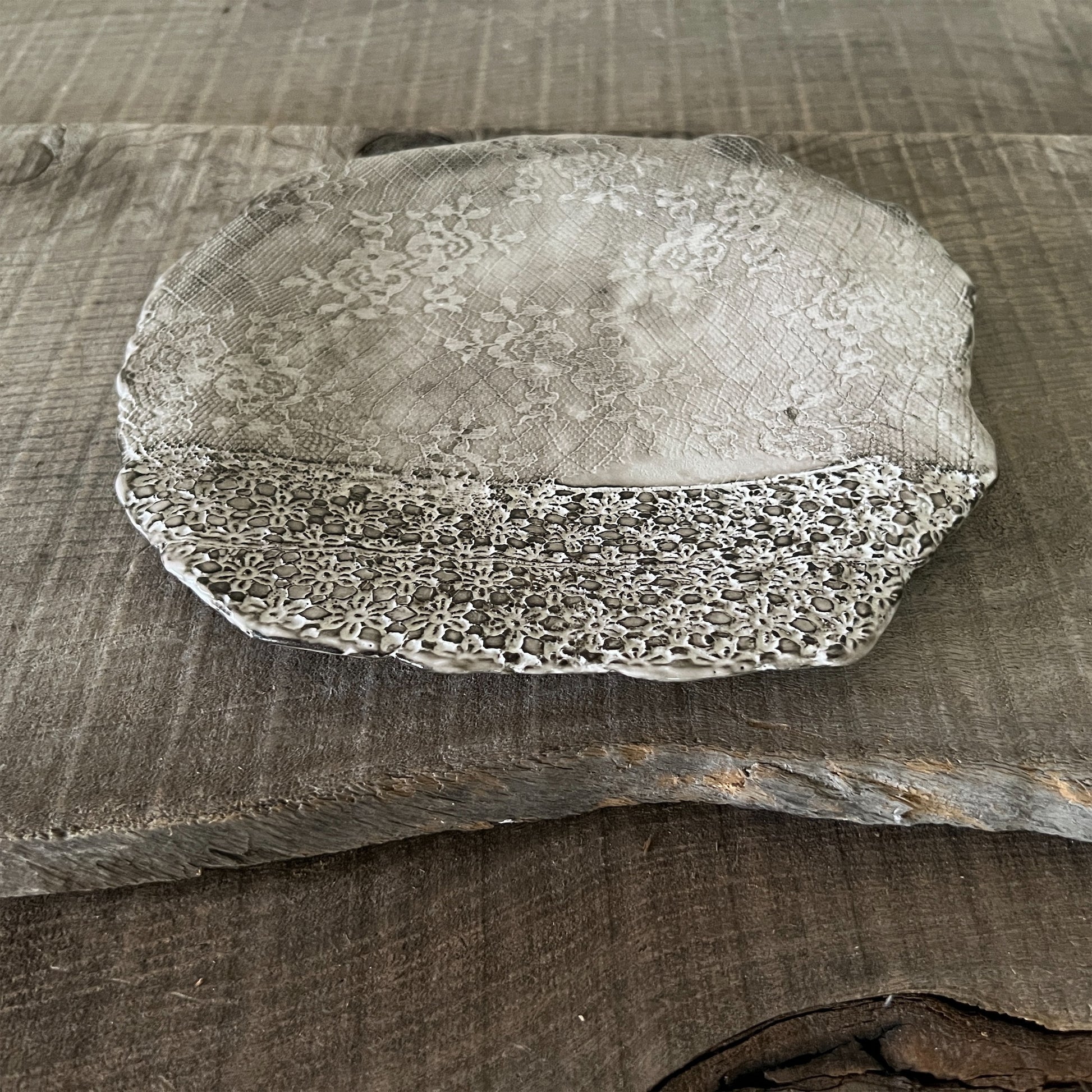 フランス人アーティストのヴァレリー・カサドが独自の手法で制作するセラミック作品。南仏ソルグ島のヴォクリューズに工房を構え、感性の赴くままに手を動かして造形しています。布地のように薄く柔らかなフォルムで、粉砂糖をまとったお菓子のような表情があります。古いものに関心の深い彼女が集めたアンティークのレースやボタンで表現された美しいレリーフが魅力。作家の優しさが伝わってくるような、ひとつとして同じものがない作品です。*手作りのため、形や風合いには個体差があります。