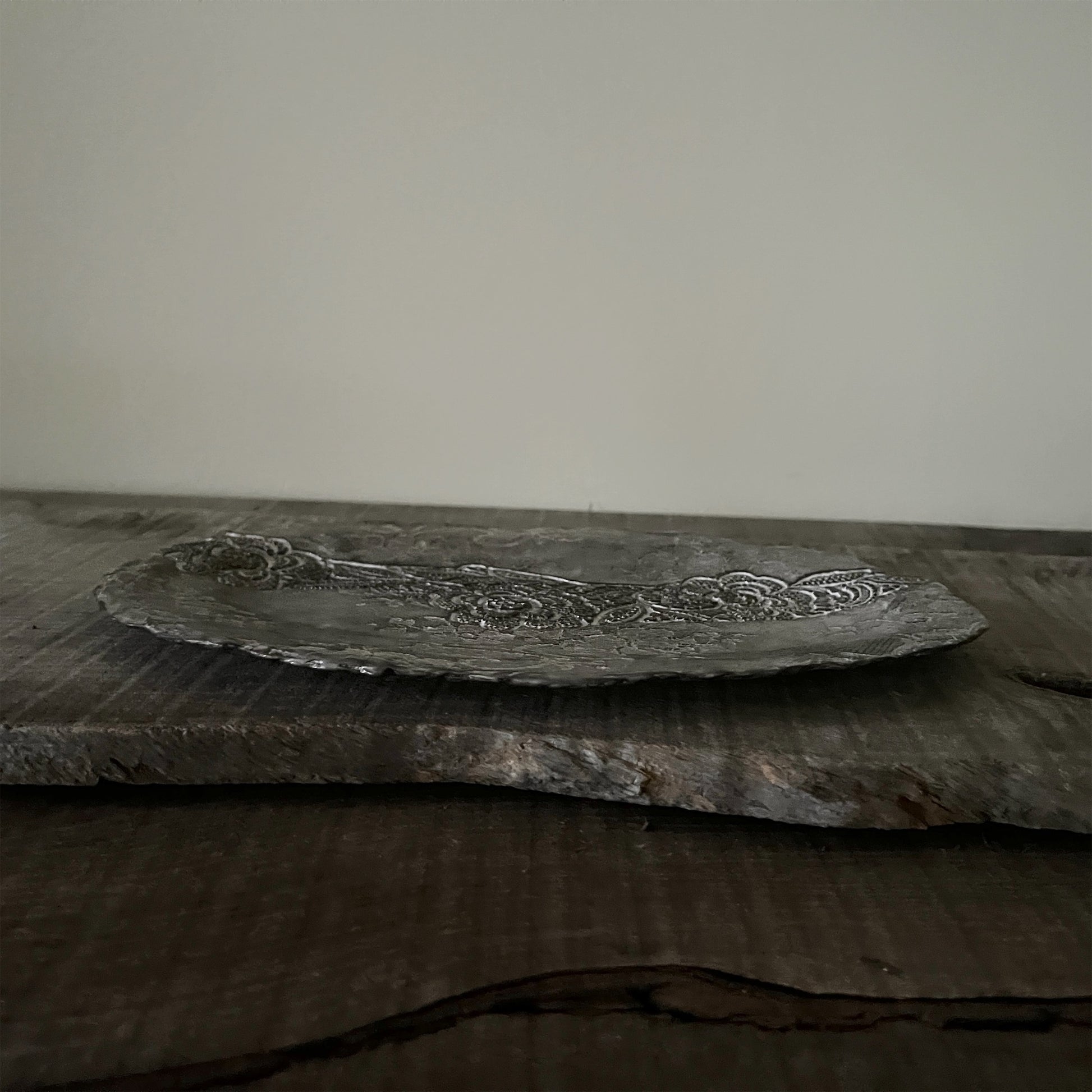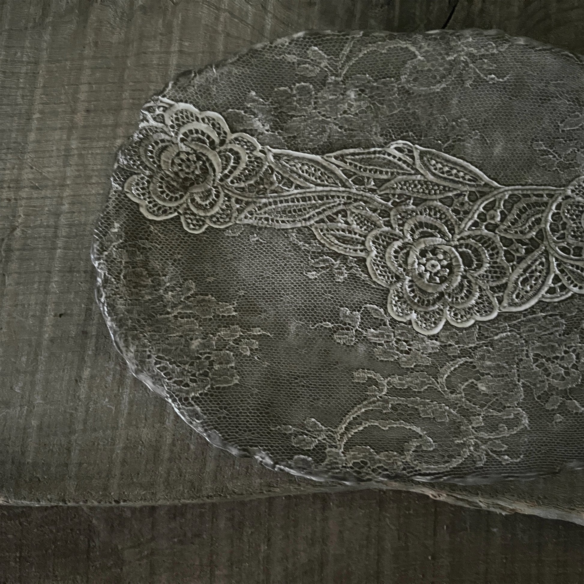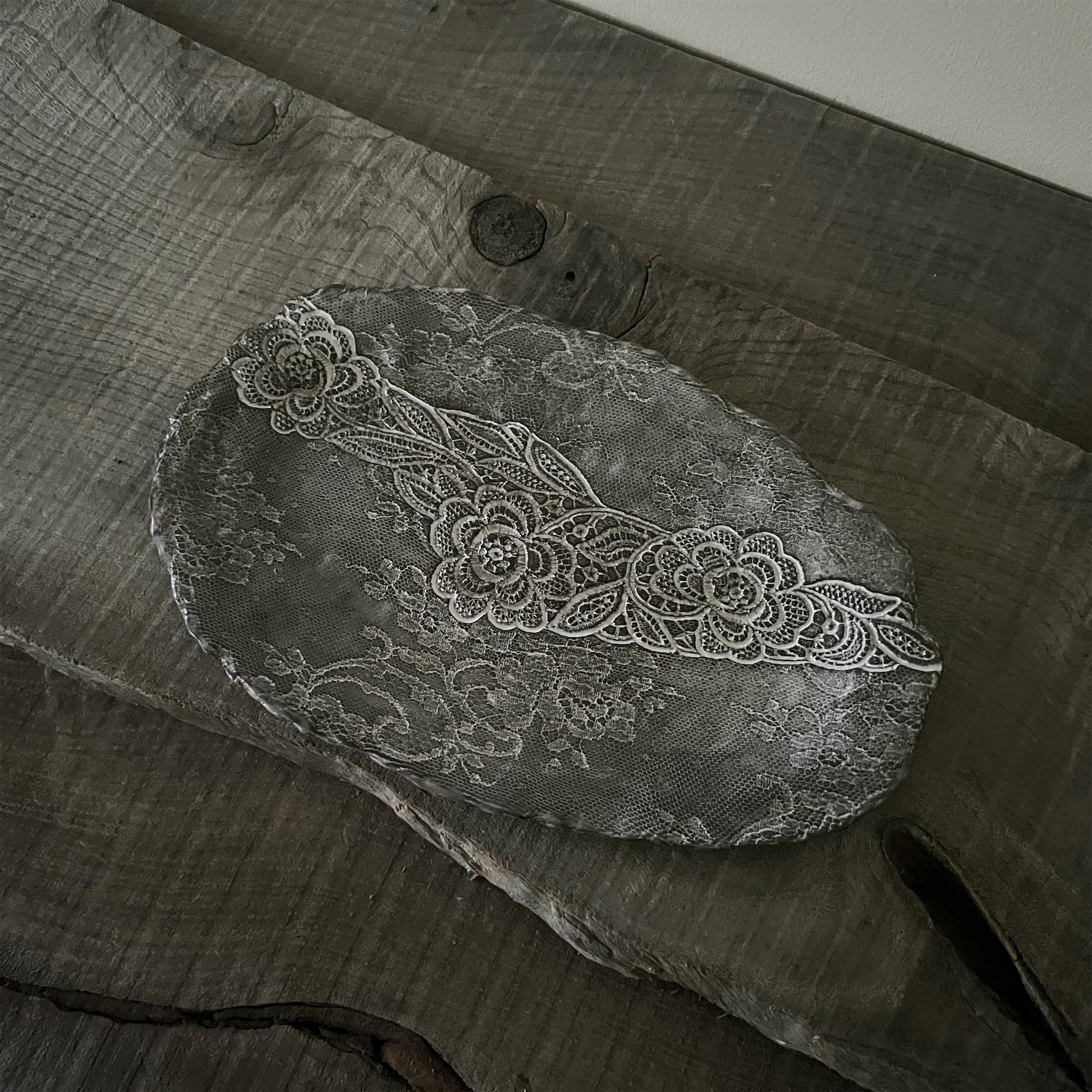 フランス人アーティストのヴァレリー・カサドが独自の手法で制作するセラミック作品。南仏ソルグ島のヴォクリューズに工房を構え、感性の赴くままに手を動かして造形しています。布地のように薄く柔らかなフォルムで、粉砂糖をまとったお菓子のような表情があります。古いものに関心の深い彼女が集めたアンティークのレースやボタンで表現された美しいレリーフが魅力。作家の優しさが伝わってくるような、ひとつとして同じものがない作品です。*手作りのため、形や風合いには個体差があります。
