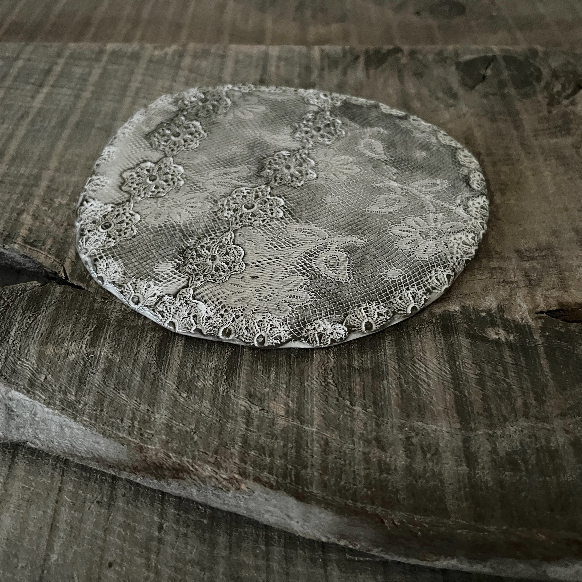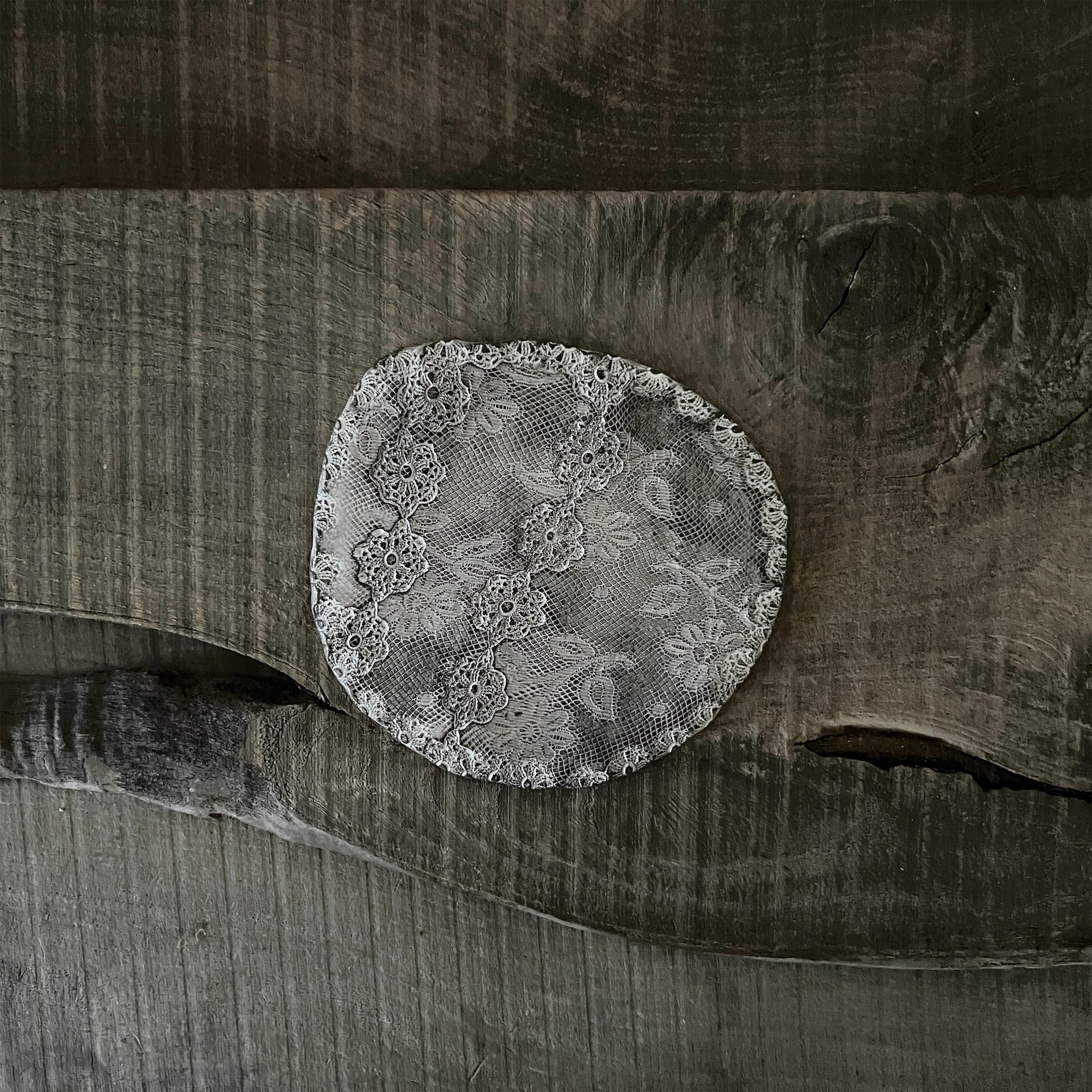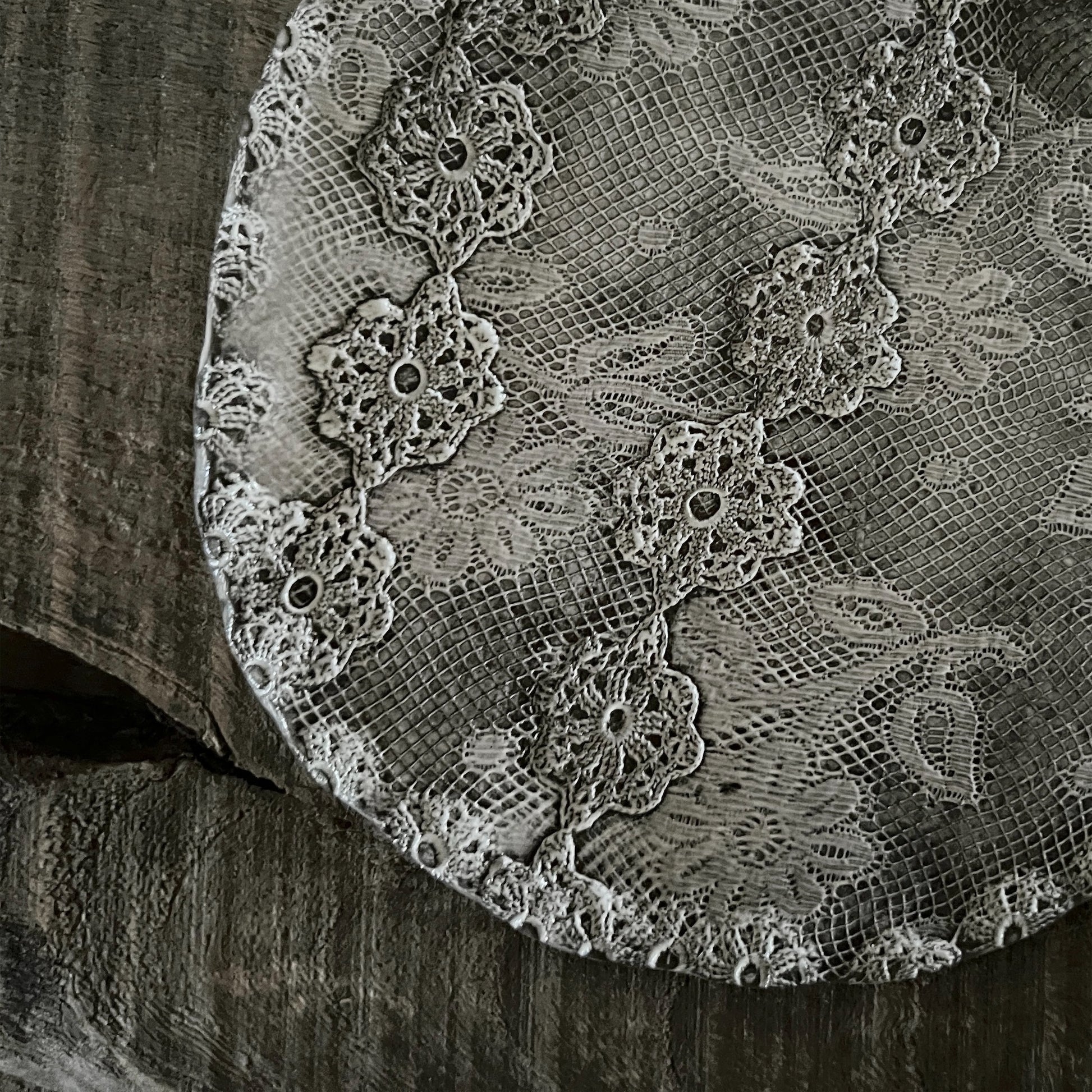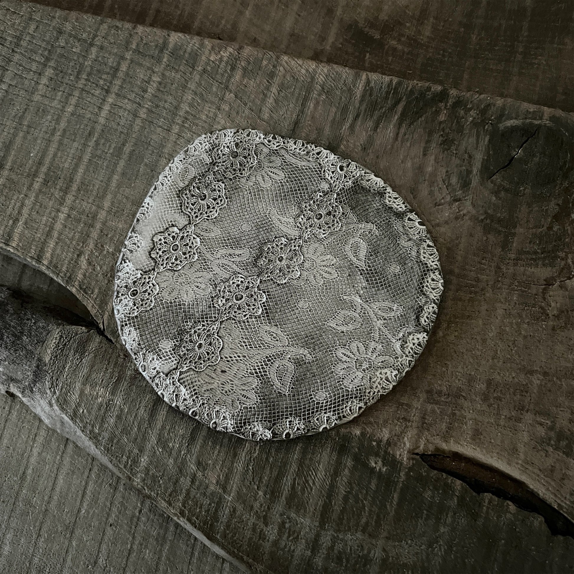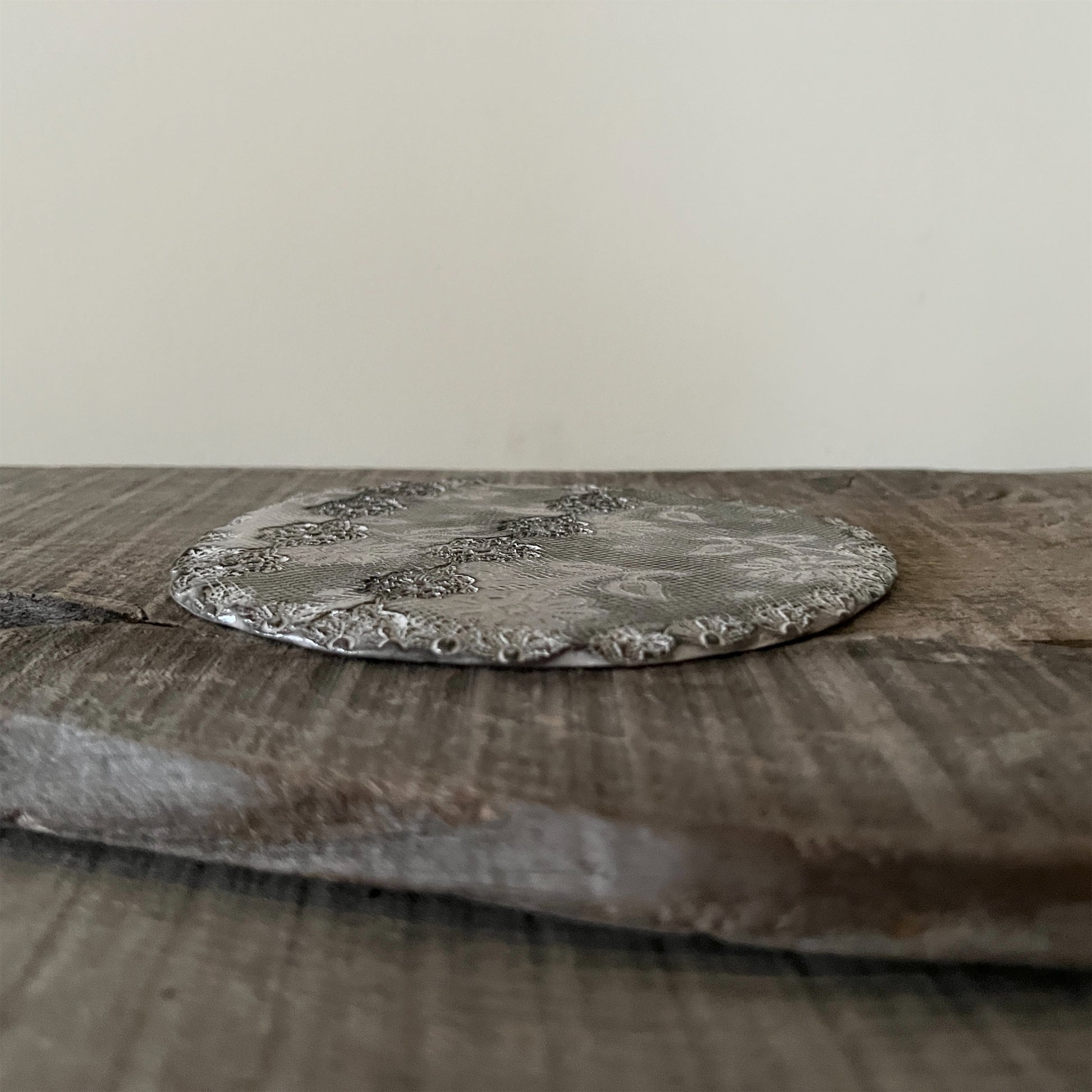 フランス人アーティストのヴァレリー・カサドが独自の手法で制作するセラミック作品。南仏ソルグ島のヴォクリューズに工房を構え、感性の赴くままに手を動かして造形しています。布地のように薄く柔らかなフォルムで、粉砂糖をまとったお菓子のような表情があります。古いものに関心の深い彼女が集めたアンティークのレースやボタンで表現された美しいレリーフが魅力。作家の優しさが伝わってくるような、ひとつとして同じものがない作品です。*手作りのため、形や風合いには個体差があります。