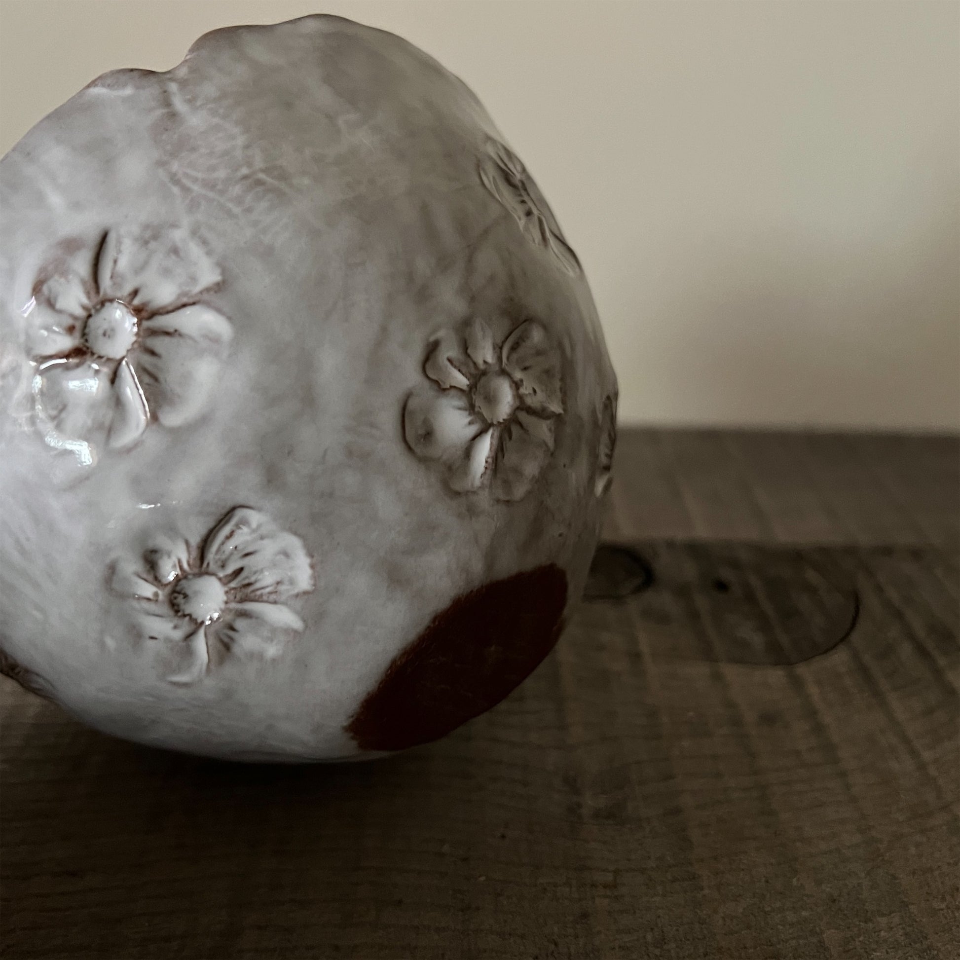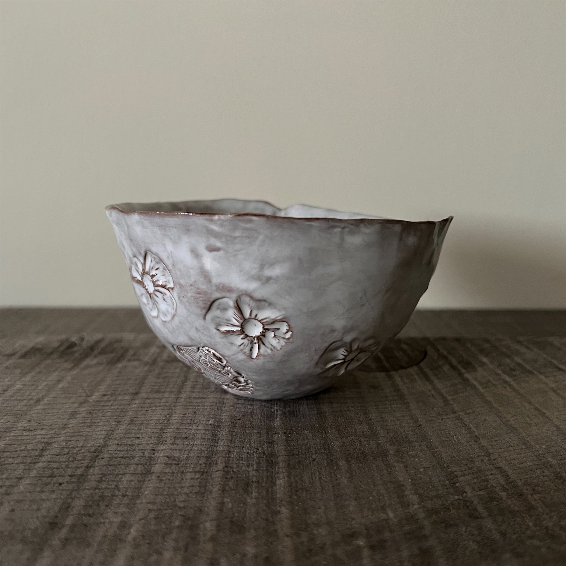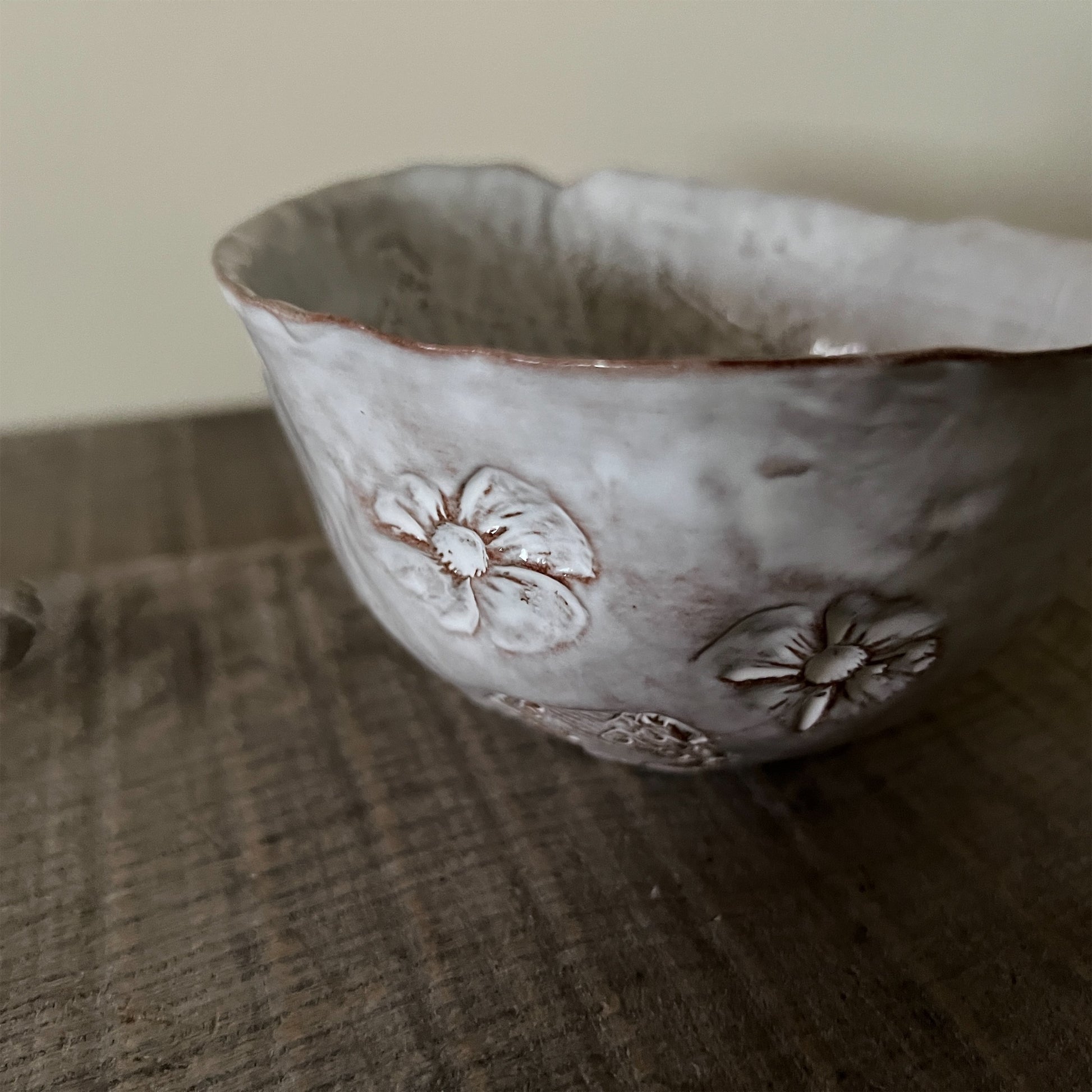フランス人アーティストのヴァレリー・カサドが独自の手法で制作するセラミック作品。南仏ソルグ島のヴォクリューズに工房を構え、感性の赴くままに手を動かして造形しています。布地のように薄く柔らかなフォルムで、粉砂糖をまとったお菓子のような表情があります。古いものに関心の深い彼女が集めたアンティークのレースやボタンで表現された美しいレリーフが魅力。作家の優しさが伝わってくるような、ひとつとして同じものがない作品です。*手作りのため、形や風合いには個体差があります。