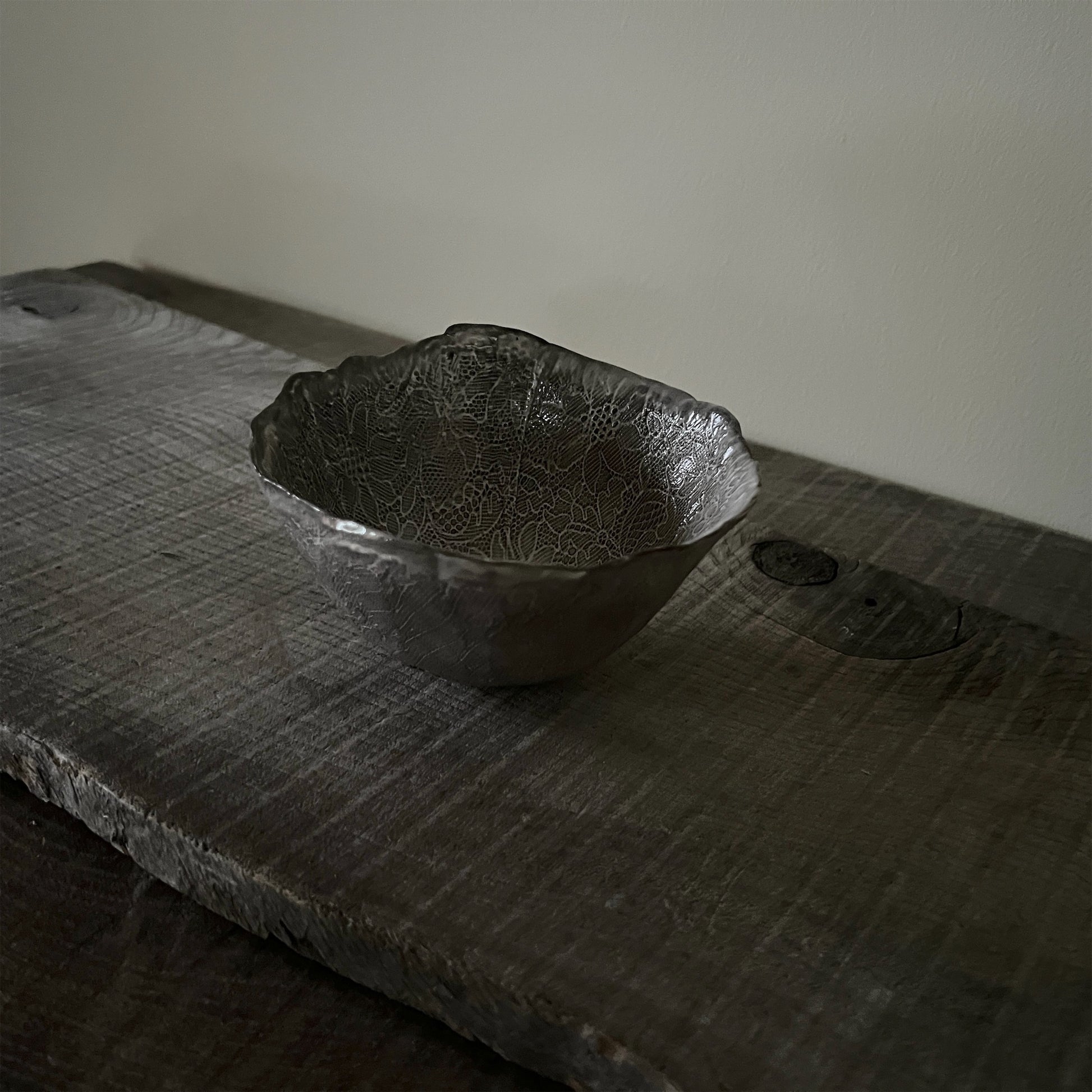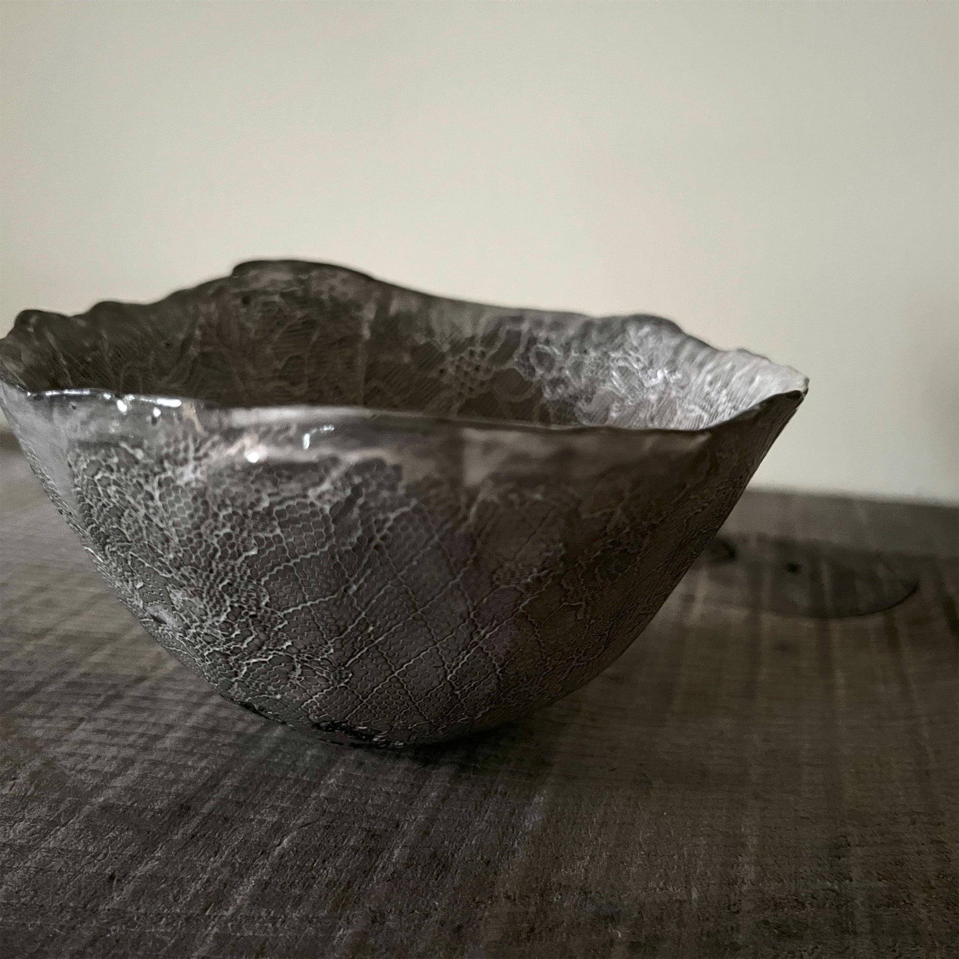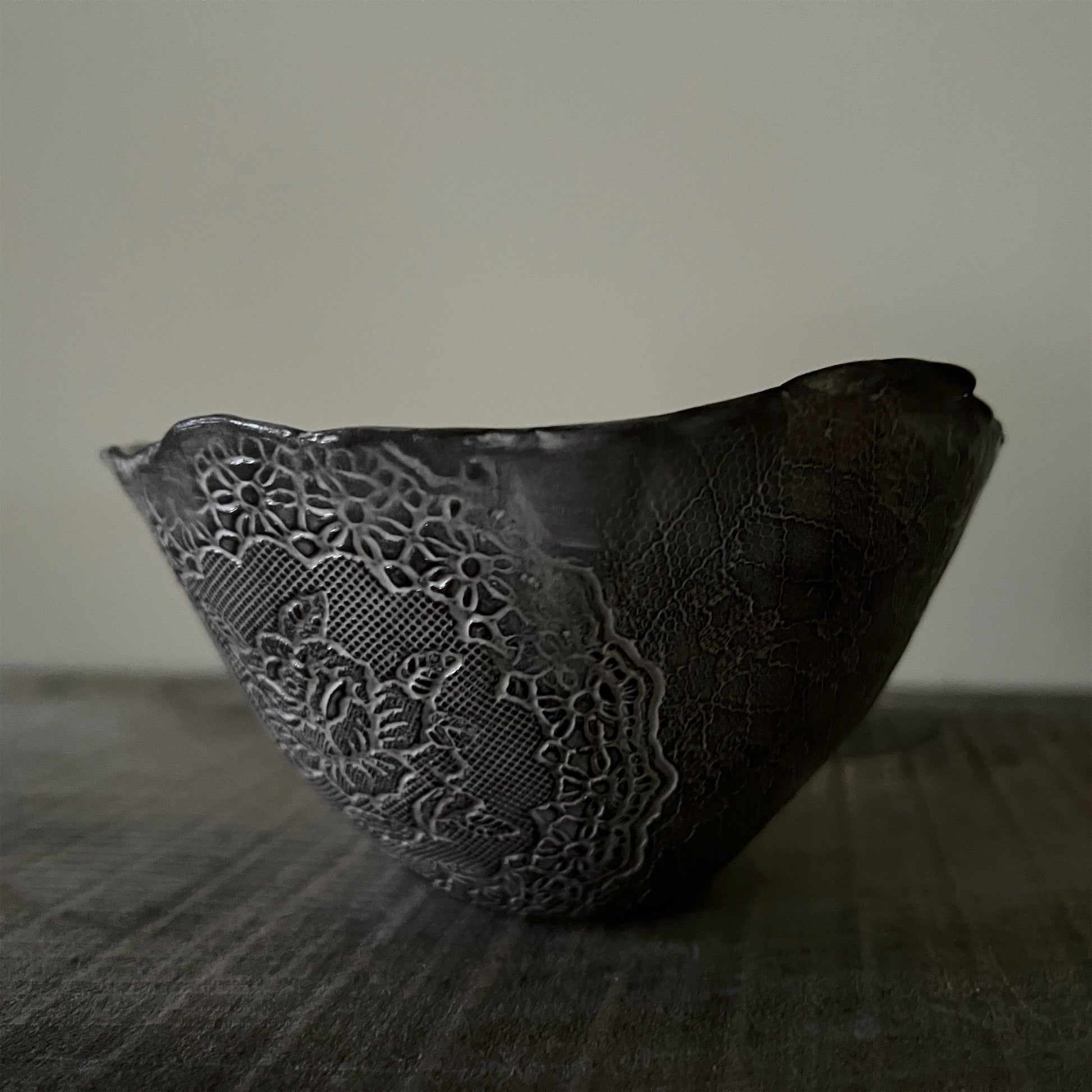 フランス人アーティストのヴァレリー・カサドが独自の手法で制作するセラミック作品。南仏ソルグ島のヴォクリューズに工房を構え、感性の赴くままに手を動かして造形しています。布地のように薄く柔らかなフォルムで、粉砂糖をまとったお菓子のような表情があります。古いものに関心の深い彼女が集めたアンティークのレースやボタンで表現された美しいレリーフが魅力。作家の優しさが伝わってくるような、ひとつとして同じものがない作品です。*手作りのため、形や風合いには個体差があります。