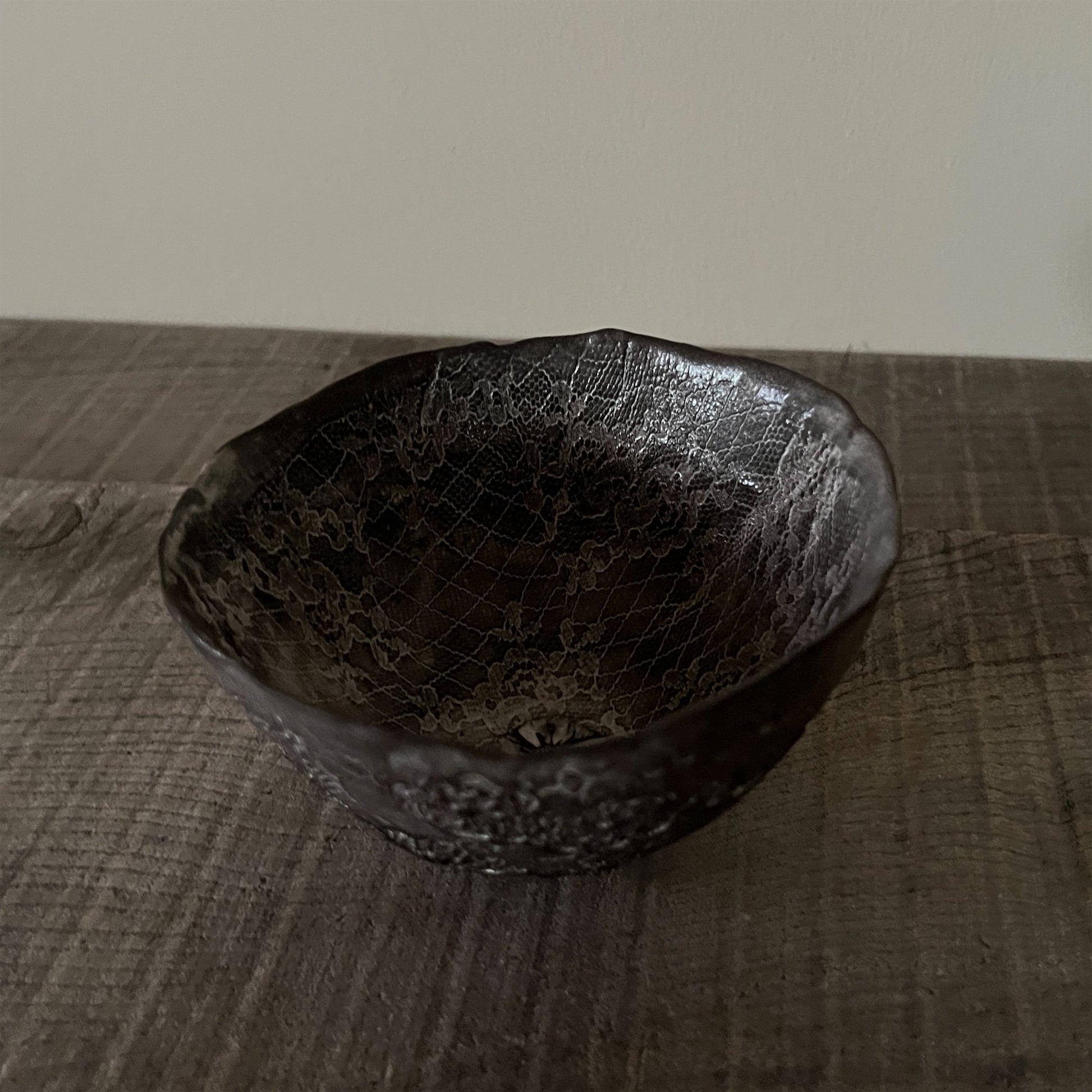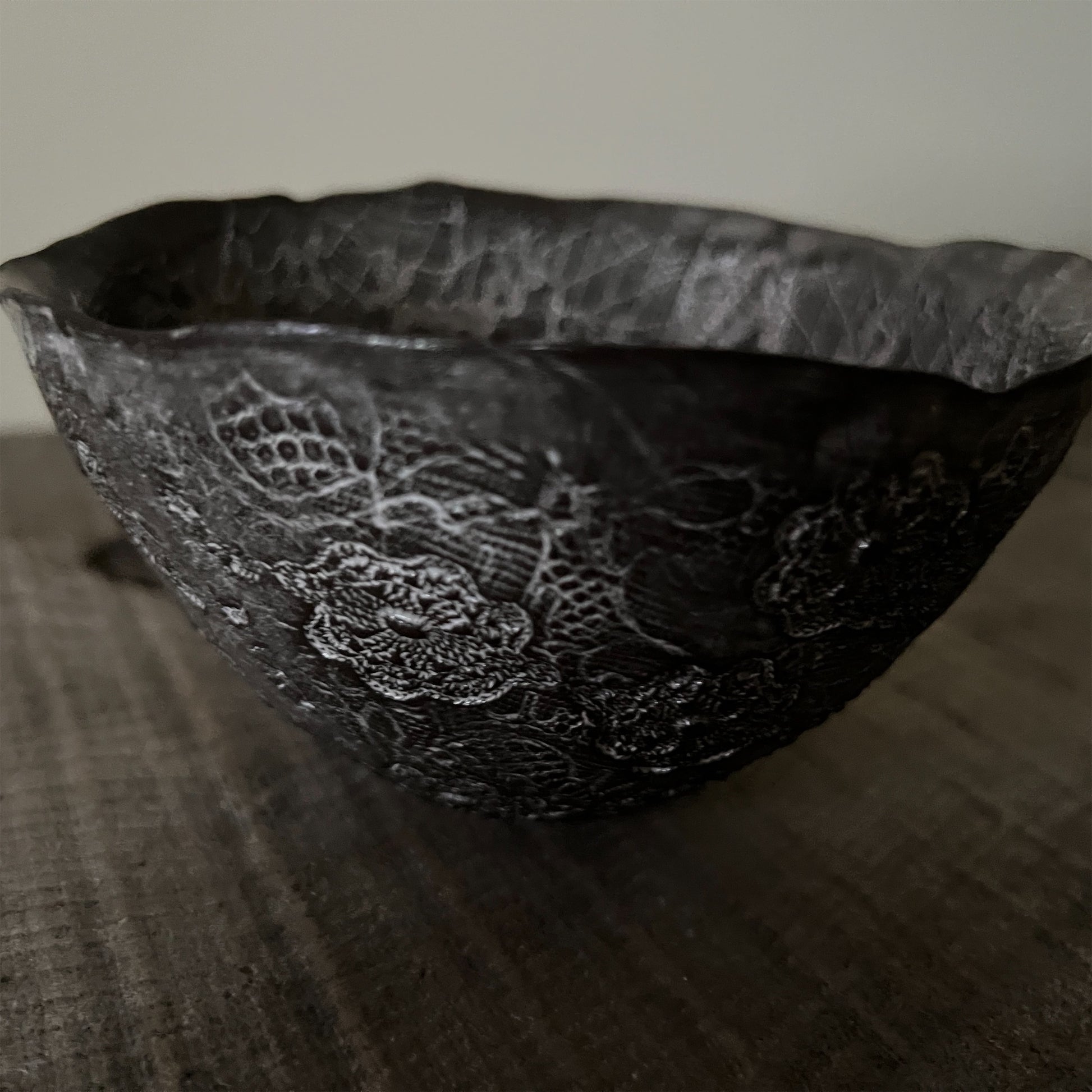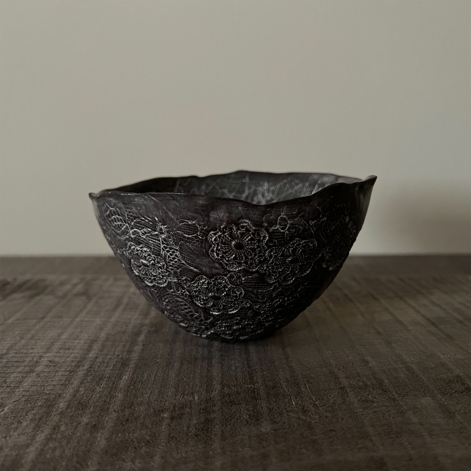 フランス人アーティストのヴァレリー・カサドが独自の手法で制作するセラミック作品。南仏ソルグ島のヴォクリューズに工房を構え、感性の赴くままに手を動かして造形しています。布地のように薄く柔らかなフォルムで、粉砂糖をまとったお菓子のような表情があります。古いものに関心の深い彼女が集めたアンティークのレースやボタンで表現された美しいレリーフが魅力。作家の優しさが伝わってくるような、ひとつとして同じものがない作品です。*手作りのため、形や風合いには個体差があります。
