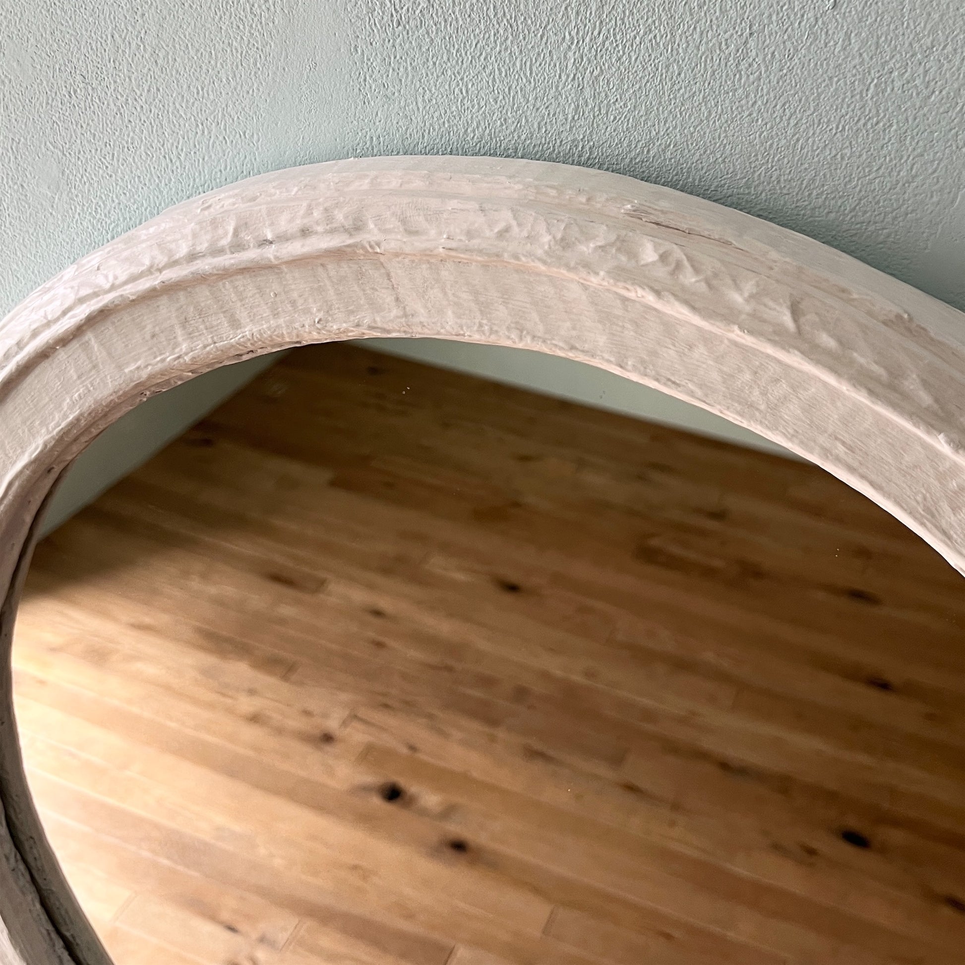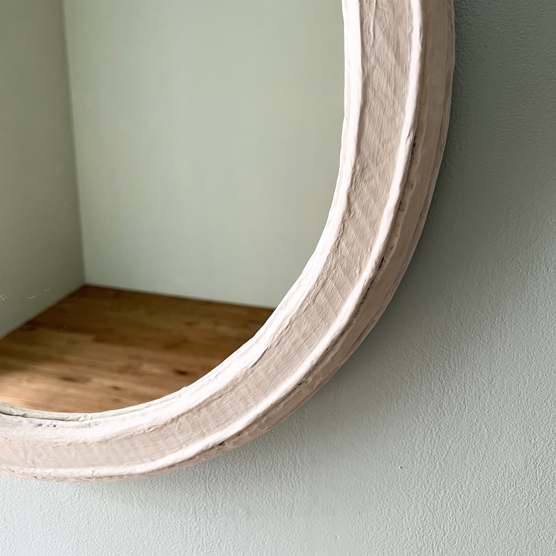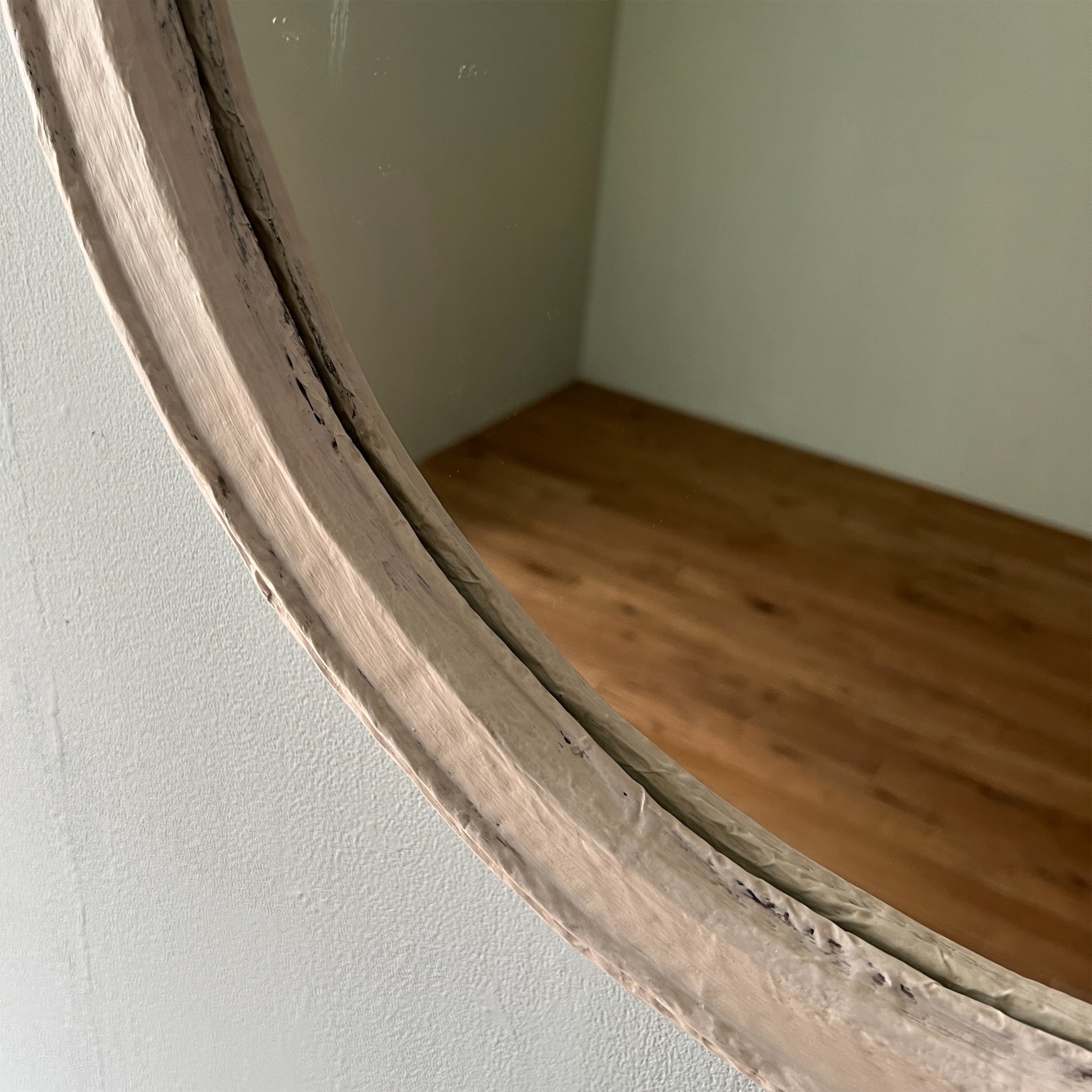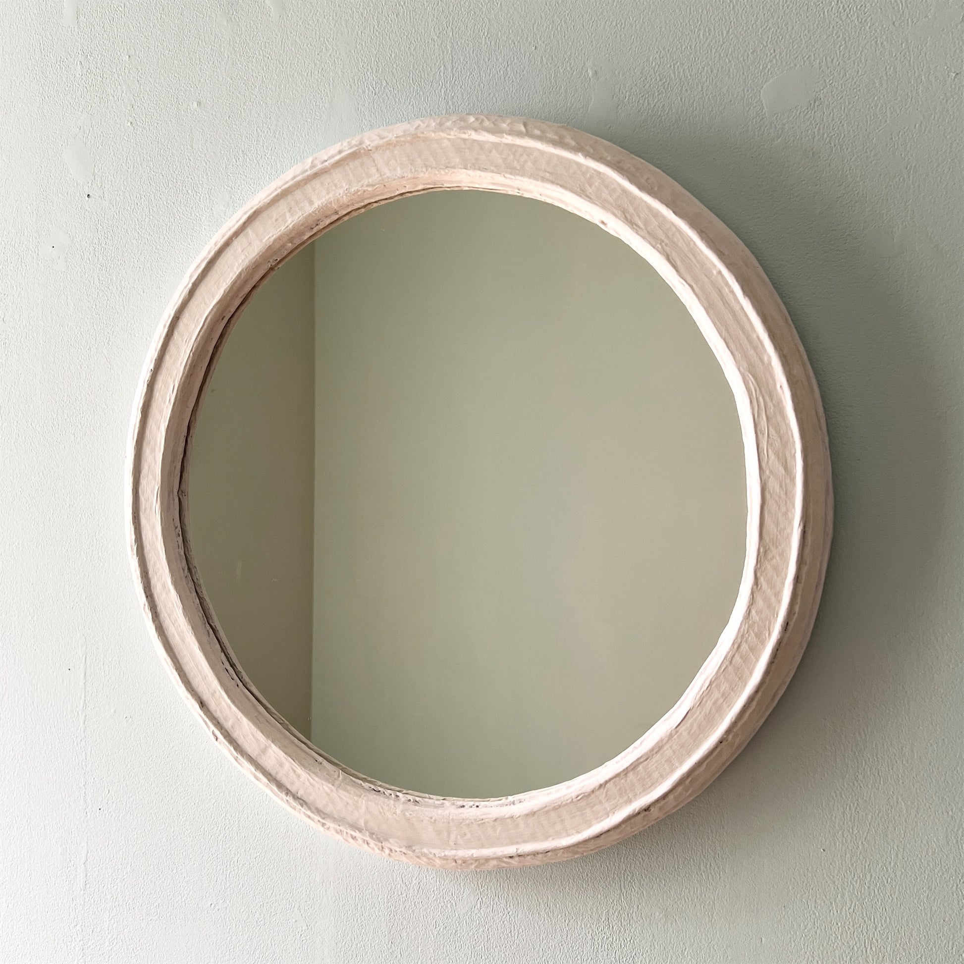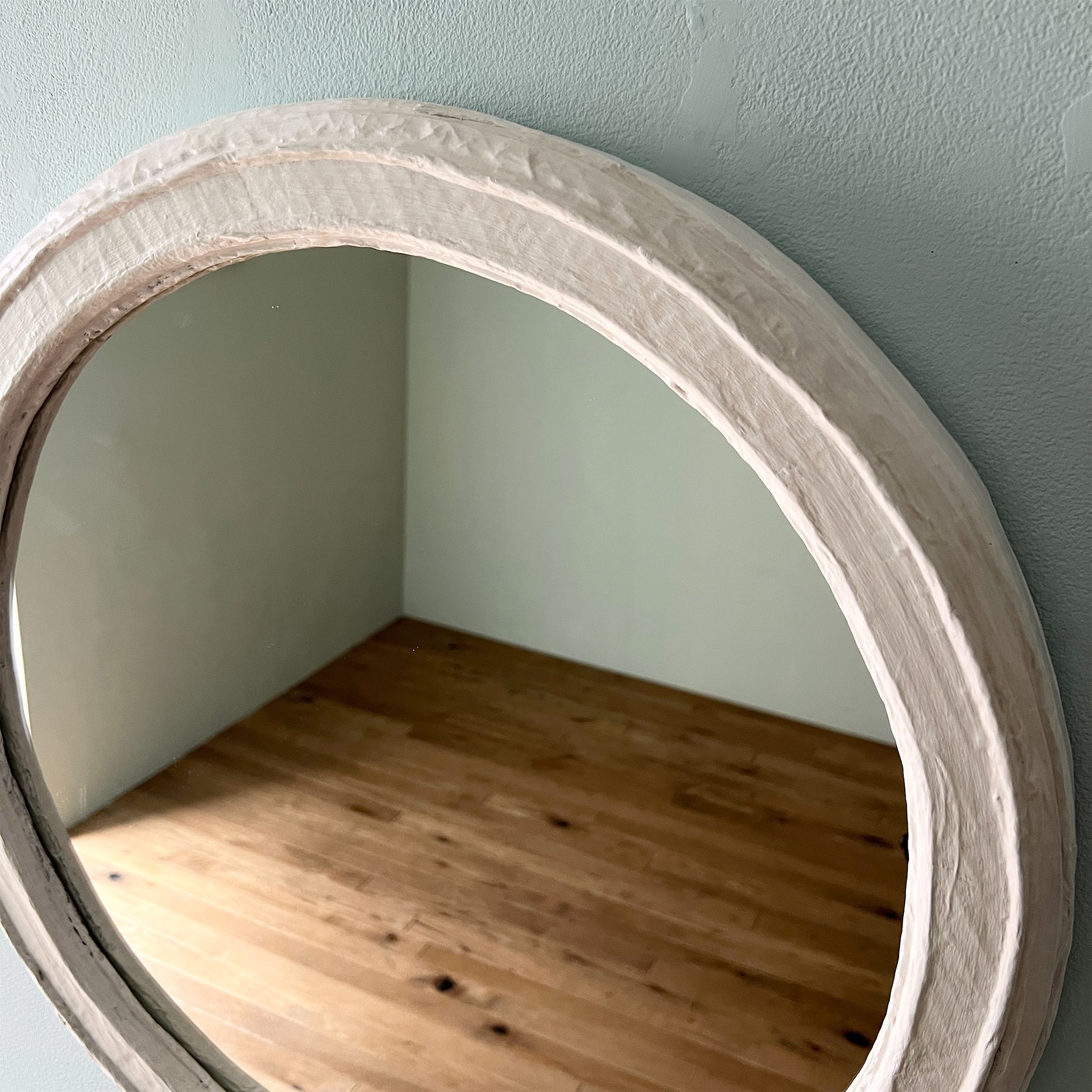 段ボール、新聞紙でつくったミラー。表面は撥水作用のあるコーティング剤で仕上げています。エイジング塗装をしております。