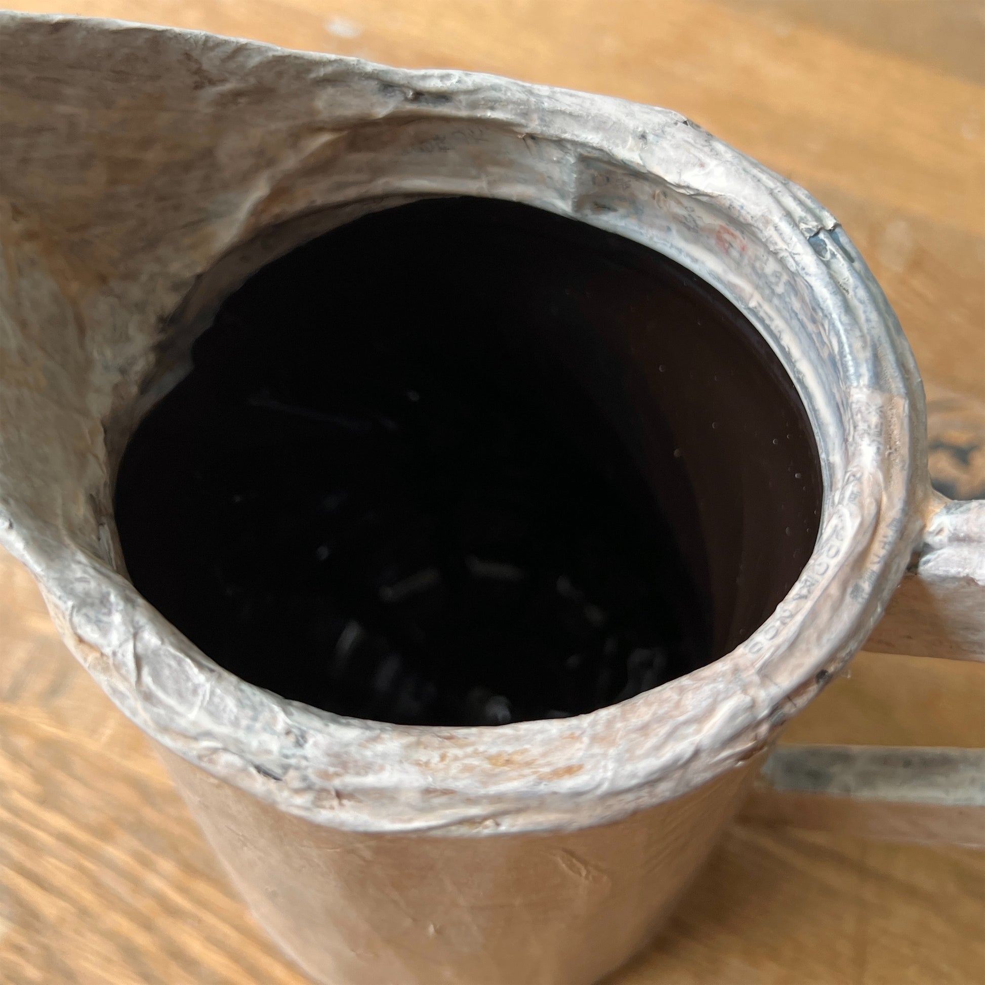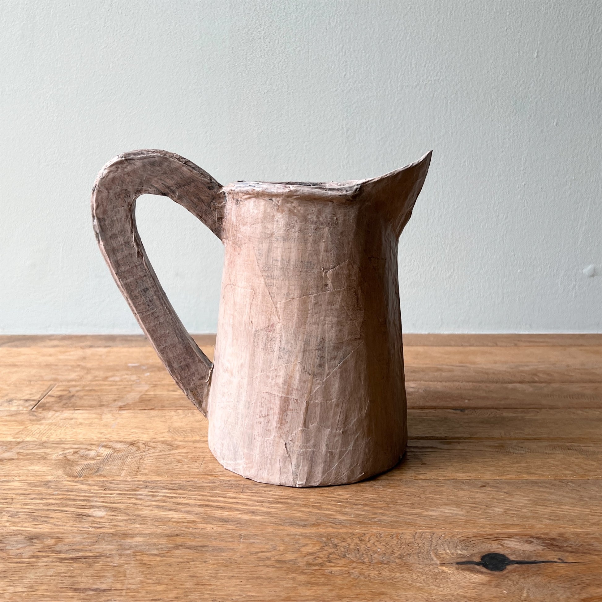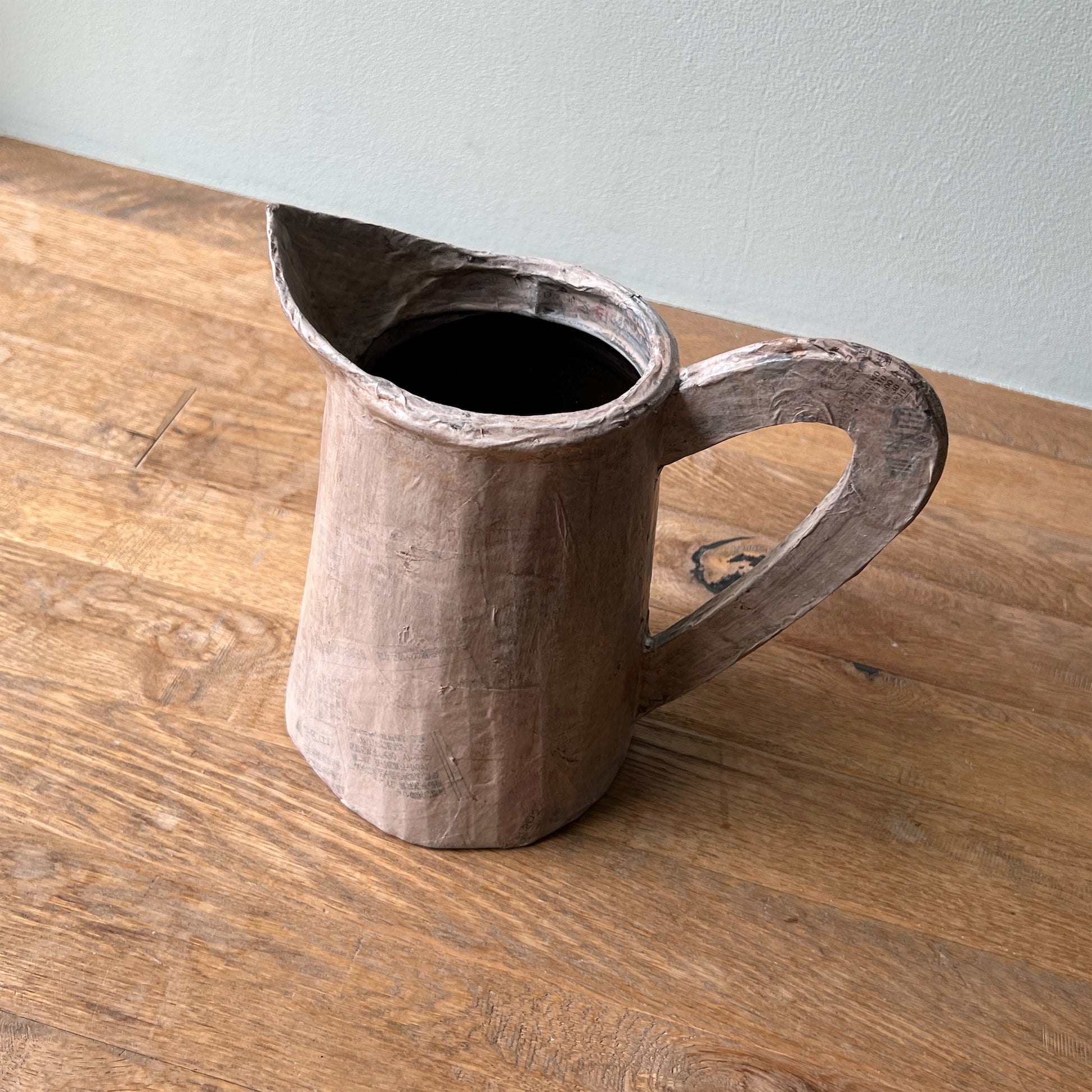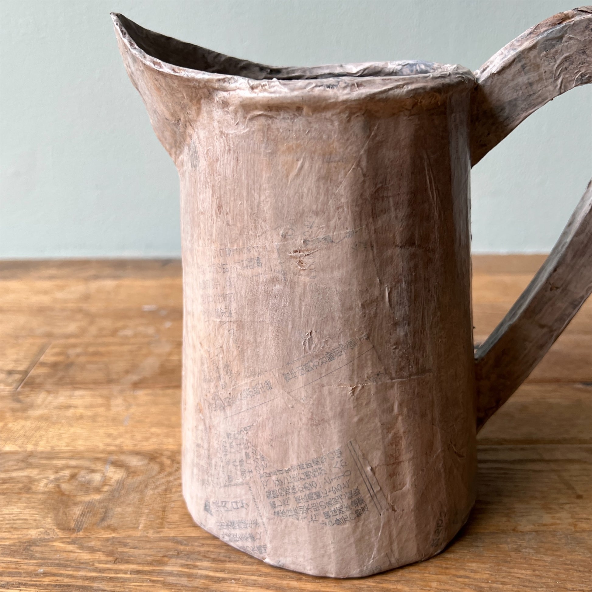 段ボール、新聞紙でつくったピッチャー。表面は撥水作用のあるコーティング剤で仕上げています。エイジング塗装をしております。軽量なので釘や画鋲で壁に設置できます。マーブリングによる色つけのため、一点ものになります。手作りのため、多少の歪み、ぐらつき等ございます【美しい窓辺】【お取り扱い上のご注意 】表面が濡れても問題ありませんが、本品全体を水に長時間浸すと、性質上ふやけてしまいますのでご注意ください。ふやけてしまった場合は、風通しの良いところで乾かしてください。こちらの商品は実店舗でも取り扱っております。オンラインショップ上でご注文いただいても、現品が実店舗にて「売約済」となっておりご希望に添えない場合もございます。その際はメールにてご連絡いたしますので、予めご了承ください。