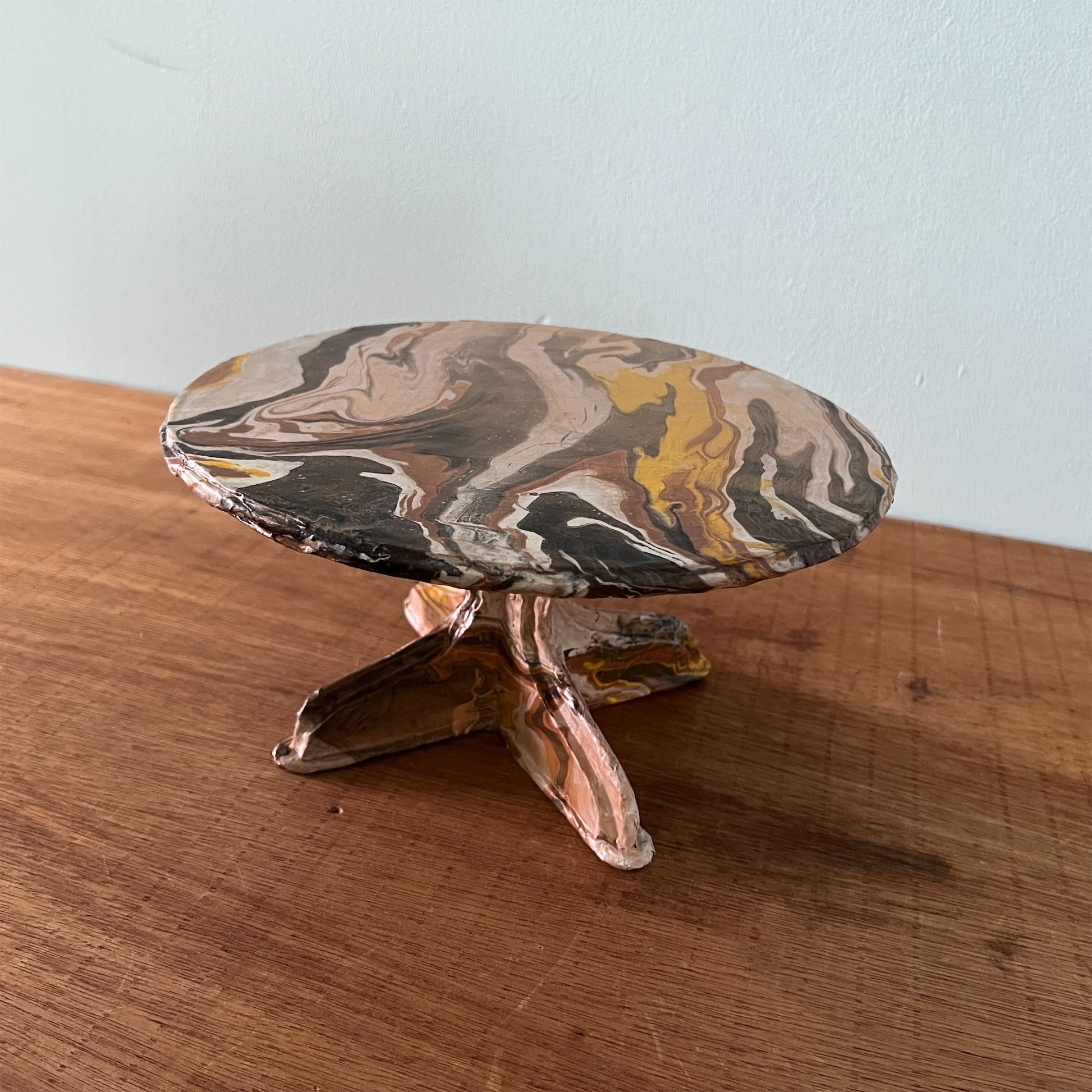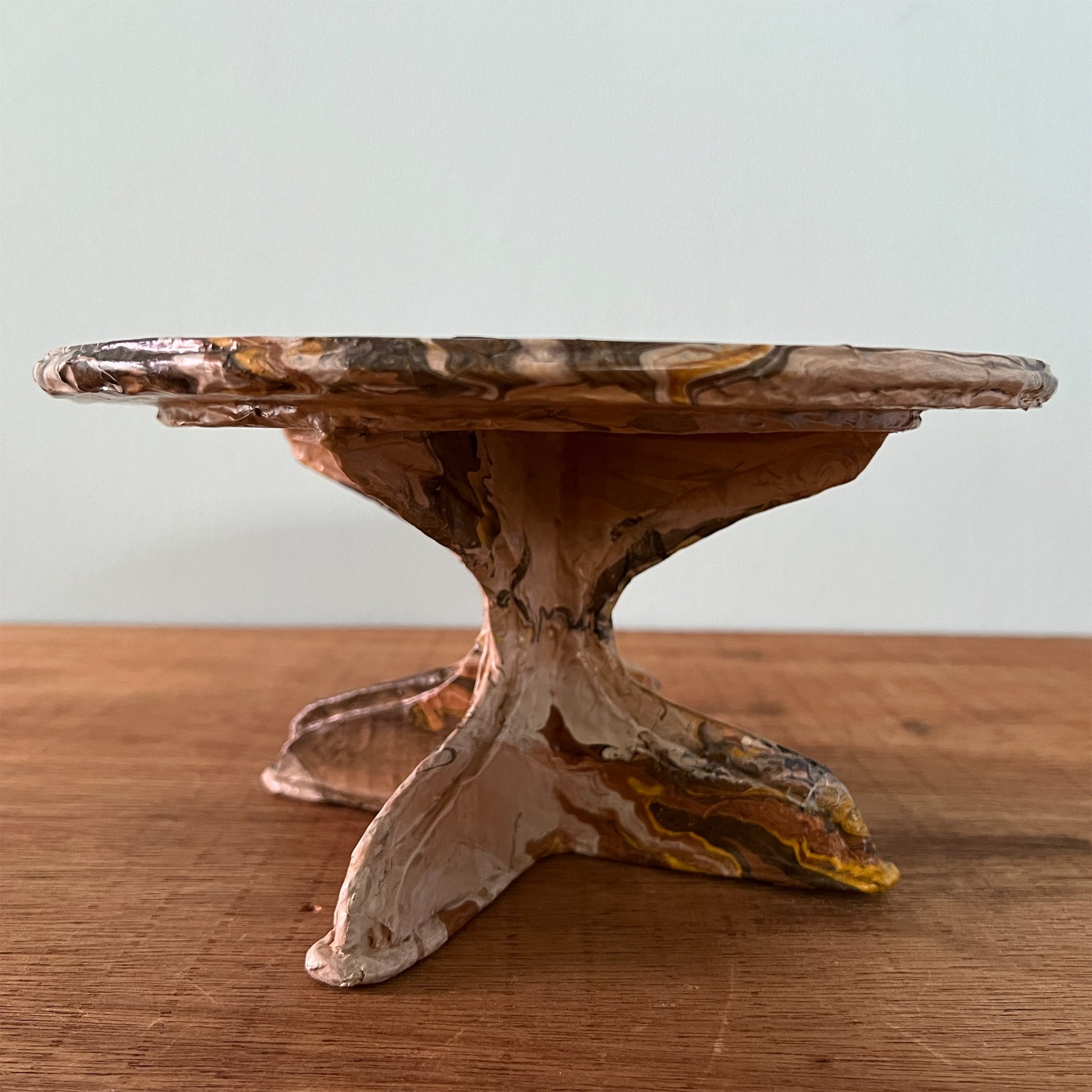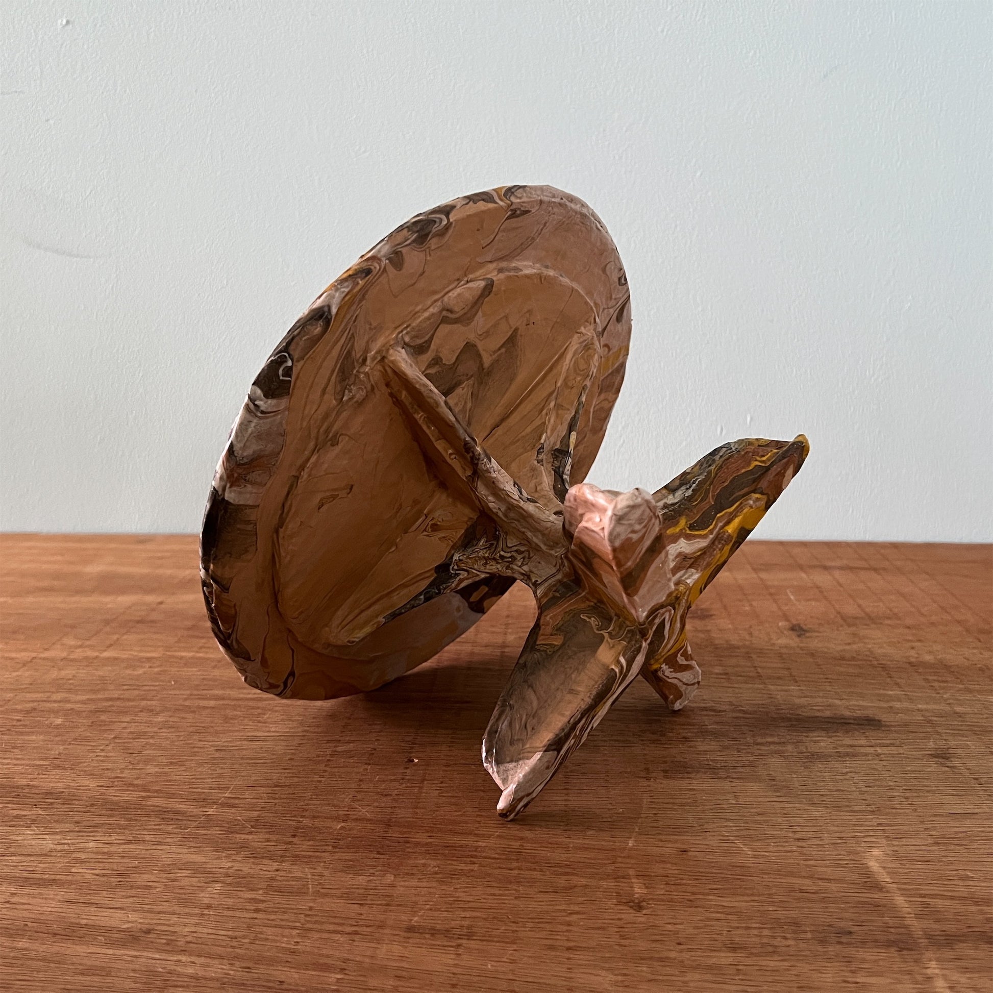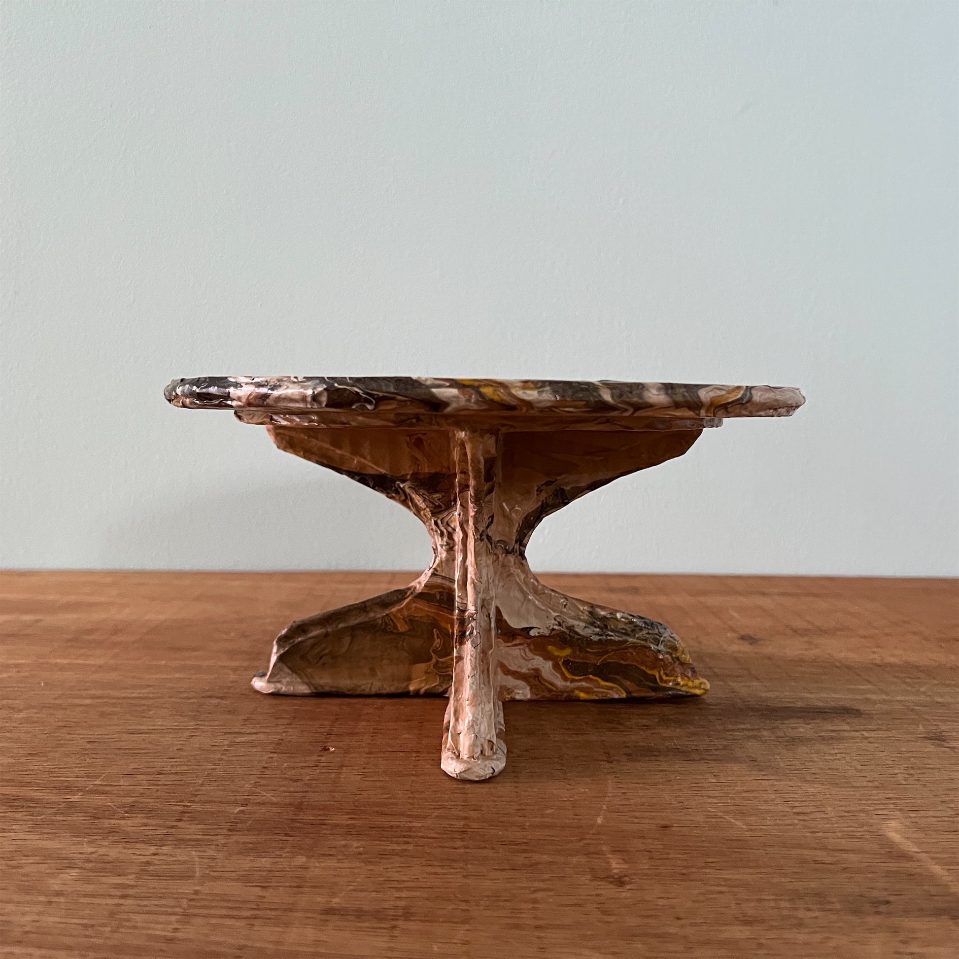 段ボール、新聞紙、木材でつくったコンポート。表面は撥水作用のあるコーティング剤で仕上げています。ちょっとしたオブジェや鉢植え、一輪挿し、本などお好きなものを置いて楽しむことができます。軽量なので釘で壁に設置できます。【美しい窓辺】【お取り扱い上のご注意 】表面が濡れても問題ありませんが、本品全体を水に長時間浸すと、性質上ふやけてしまいますのでご注意ください。ふやけてしまった場合は、風通しの良いところで乾かしてください。汚れた場合は、固く絞った布で拭いてください。【ウォールデコ 使用上のご注意】壁に掛ける際は付属の画鋲を使用し、ガタつき・ぐらつきがないよう しっかりと取り付けてください。 ウオールデコが外れて物が落ち、 破損やケガの原因となります。割れ物等を置かれる際は細心のご注意をお願いいたします。 こちらの商品は装飾棚になります。 構造上、 棚に乗せる物の荷重は 300gを目安とし、左右均等に乗せてください。こちらの商品は実店舗でも取り扱っております。オンラインショップ上でご注文いただいても、現品が実店舗にて「売約済」となっておりご希望に添えない場合もございます。その際はメールにてご連絡いたしますので、予めご了承ください。