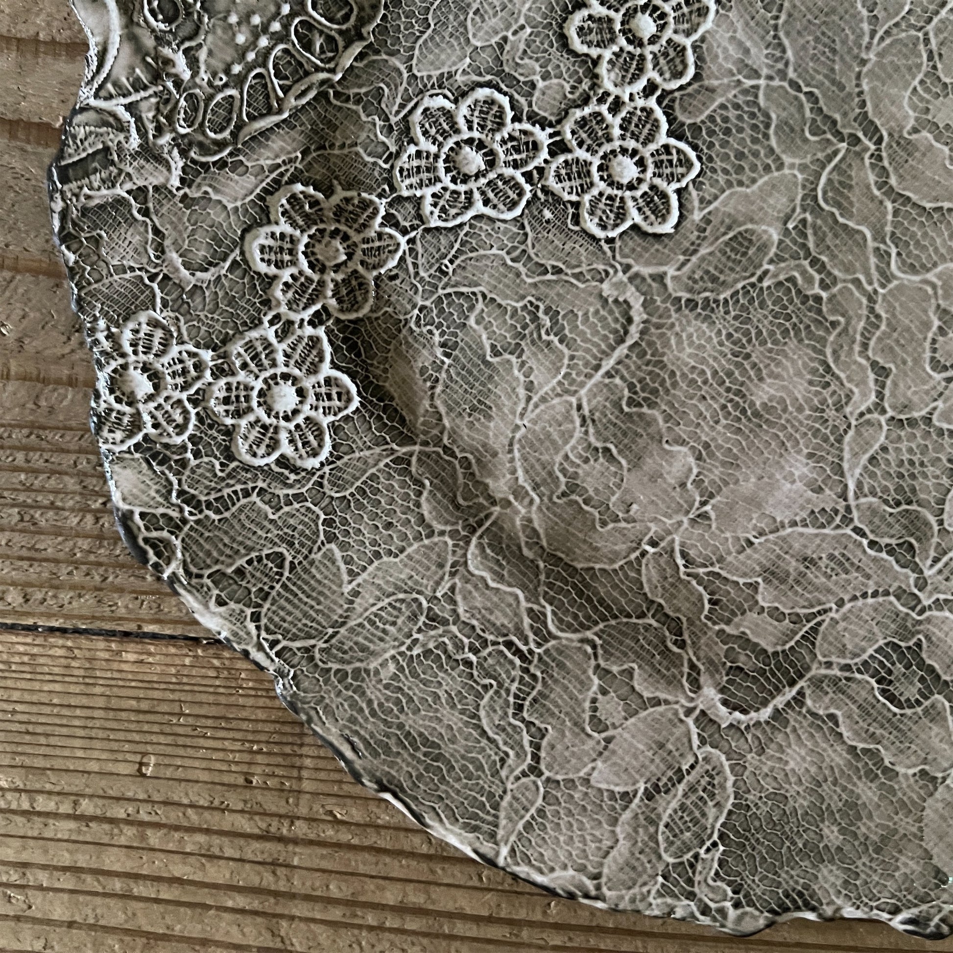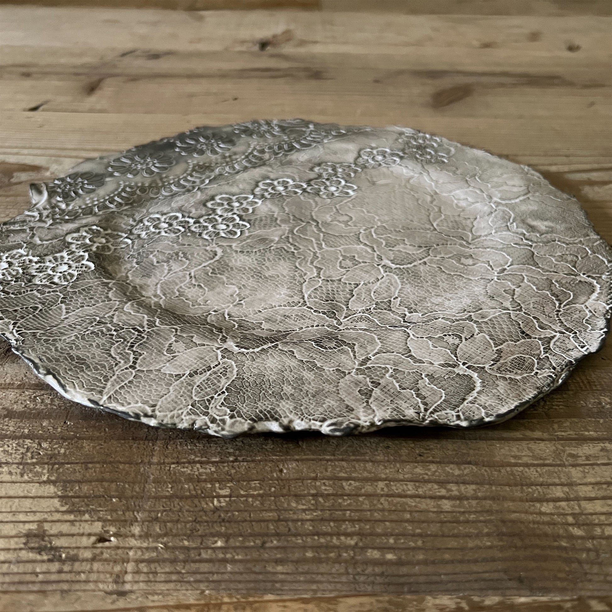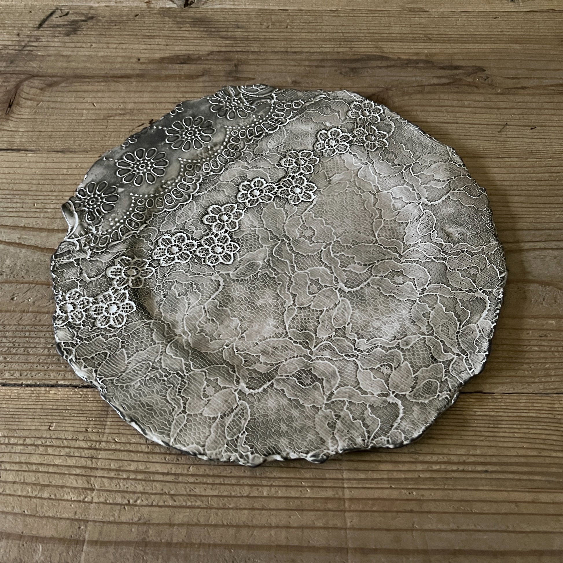 フランス人アーティストのヴァレリー・カサドが独自の手法で制作するセラミック作品。南仏ソルグ島のヴォクリューズに工房を構え、感性の赴くままに手を動かして造形しています。布地のように薄く柔らかなフォルムで、粉砂糖をまとったお菓子のような表情があります。古いものに関心の深い彼女が集めたアンティークのレースやボタンで表現された美しいレリーフが魅力。作家の優しさが伝わってくるような、ひとつとして同じものがない作品です。*手作りのため、形や風合いには個体差があります。