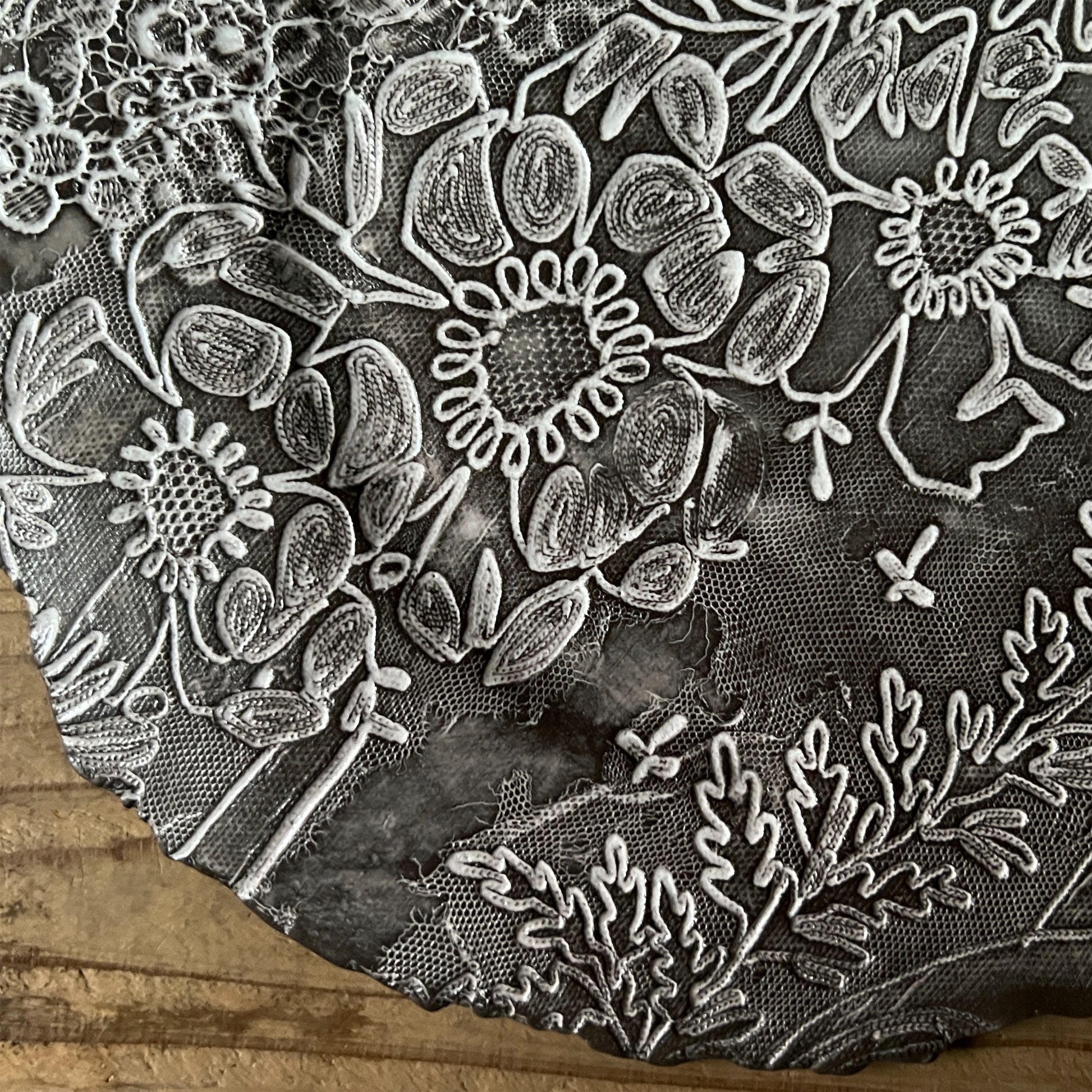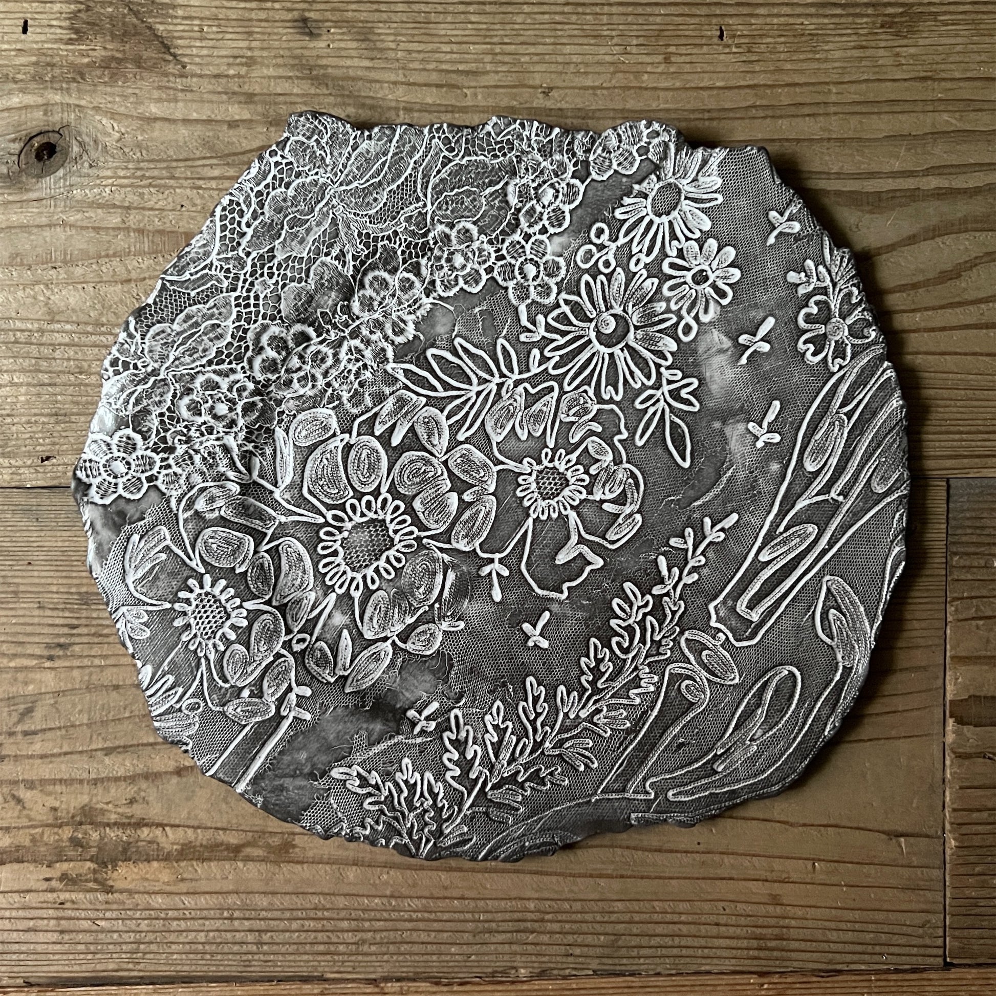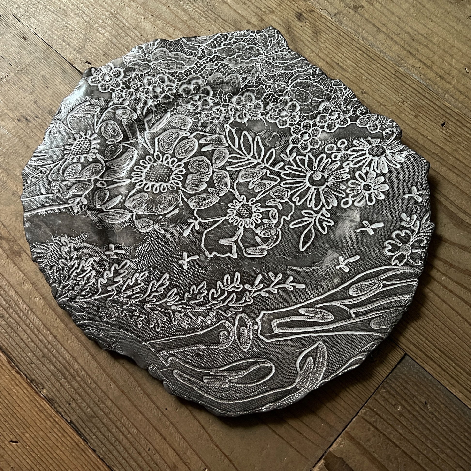 フランス人アーティストのヴァレリー・カサドが独自の手法で制作するセラミック作品。南仏ソルグ島のヴォクリューズに工房を構え、感性の赴くままに手を動かして造形しています。布地のように薄く柔らかなフォルムで、粉砂糖をまとったお菓子のような表情があります。古いものに関心の深い彼女が集めたアンティークのレースやボタンで表現された美しいレリーフが魅力。作家の優しさが伝わってくるような、ひとつとして同じものがない作品です。*手作りのため、形や風合いには個体差があります。