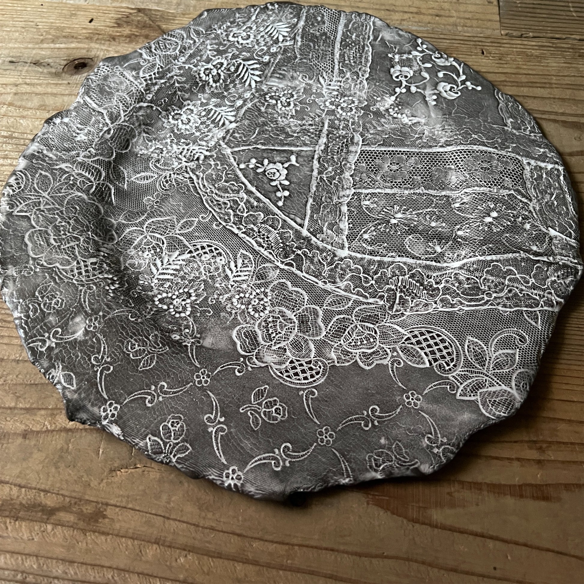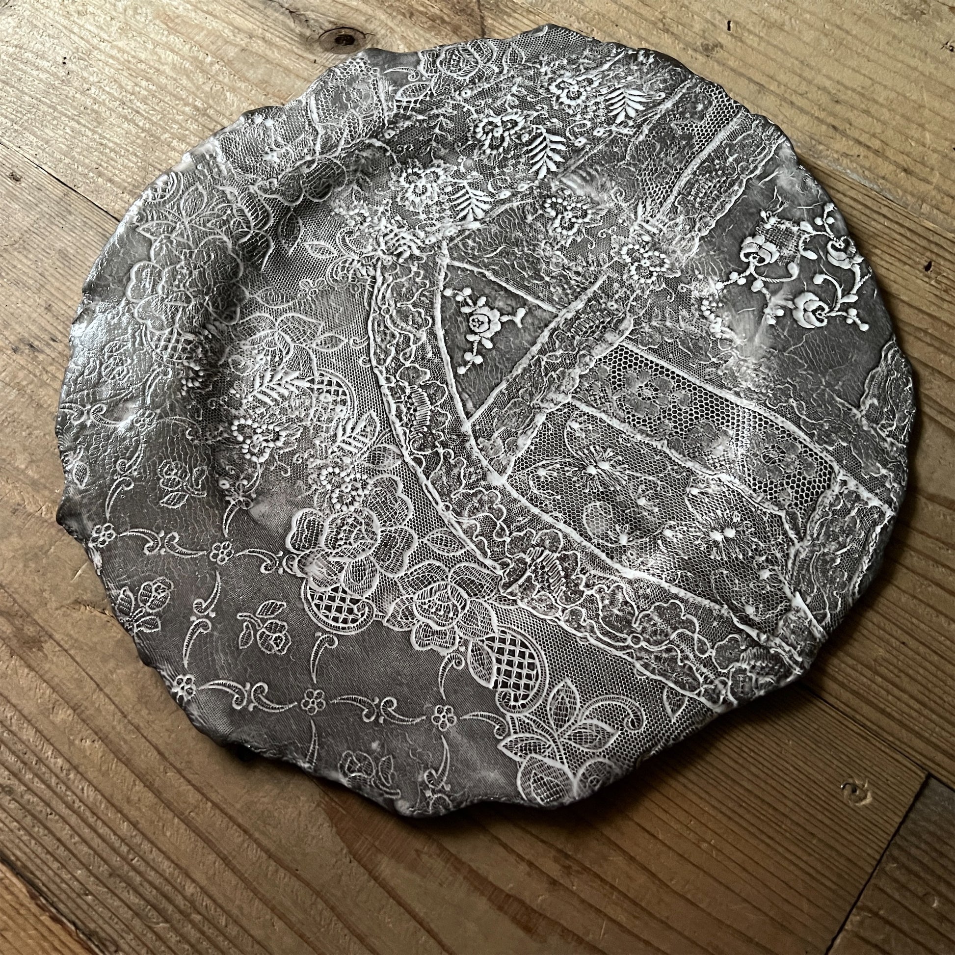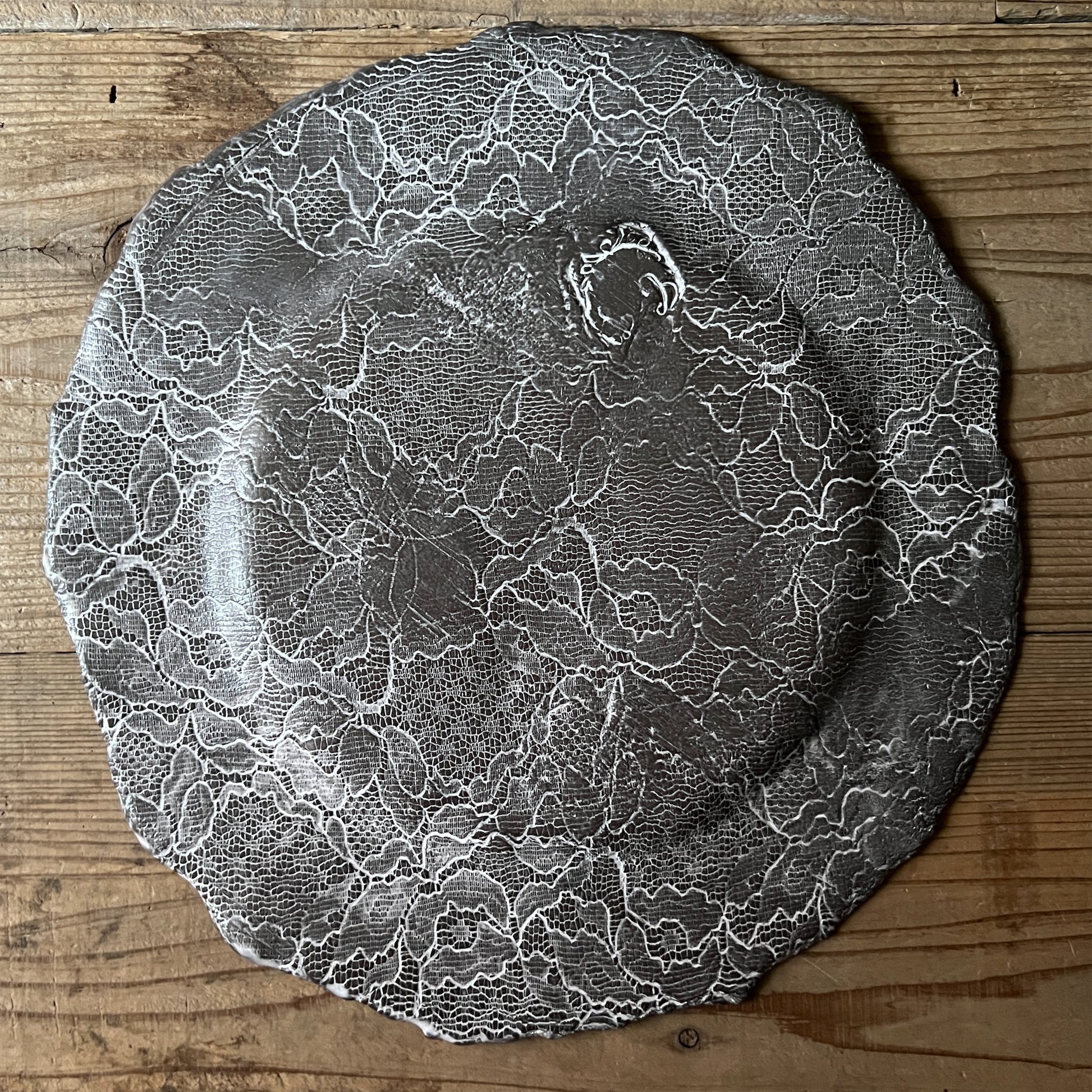 フランス人アーティストのヴァレリー・カサドが独自の手法で制作するセラミック作品。南仏ソルグ島のヴォクリューズに工房を構え、感性の赴くままに手を動かして造形しています。布地のように薄く柔らかなフォルムで、粉砂糖をまとったお菓子のような表情があります。古いものに関心の深い彼女が集めたアンティークのレースやボタンで表現された美しいレリーフが魅力。作家の優しさが伝わってくるような、ひとつとして同じものがない作品です。*手作りのため、形や風合いには個体差があります。