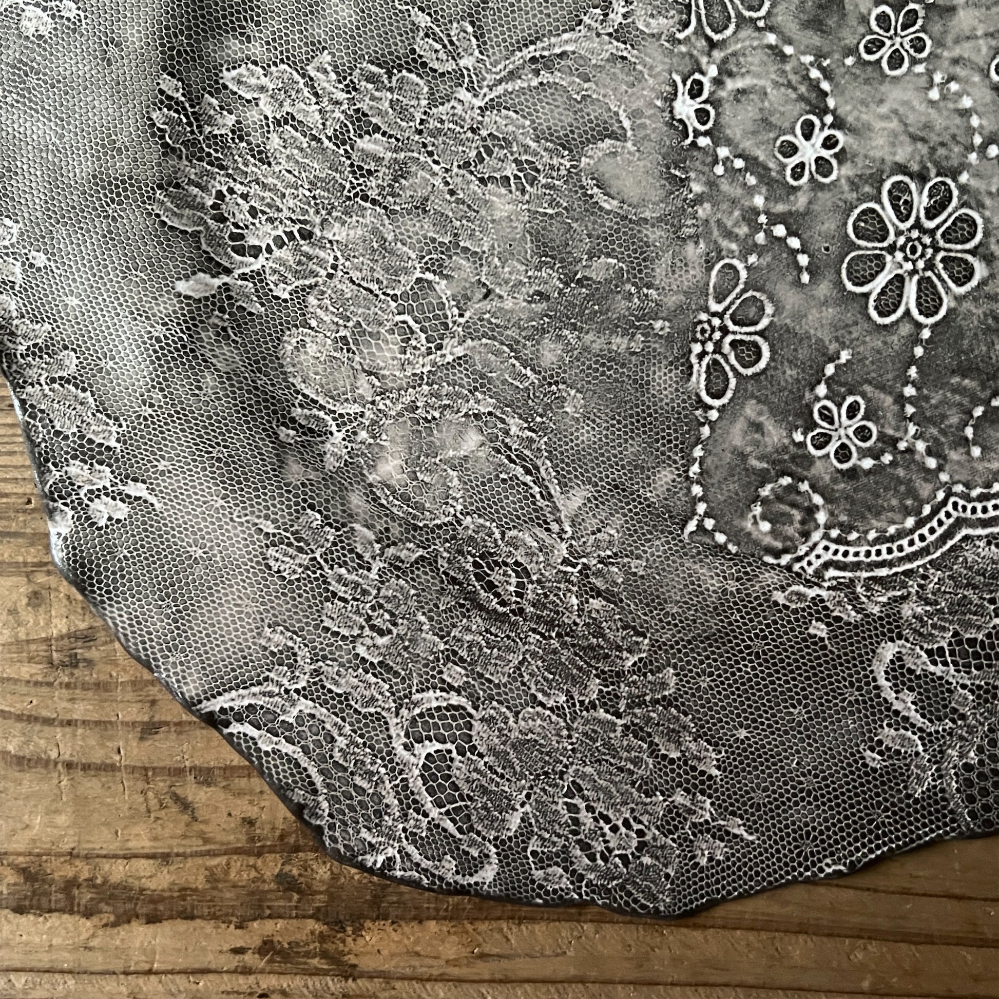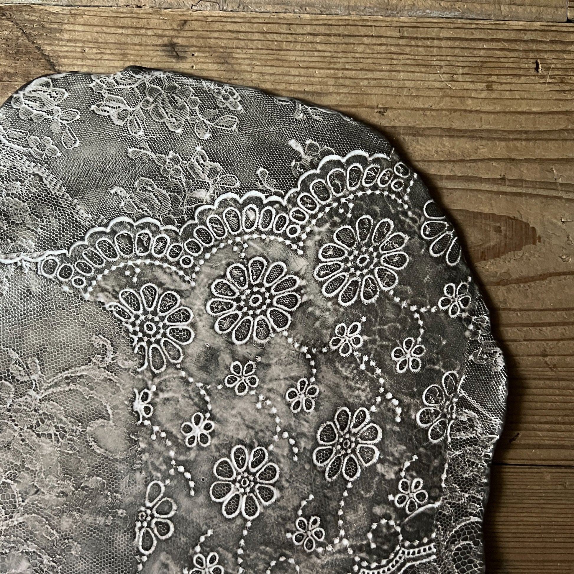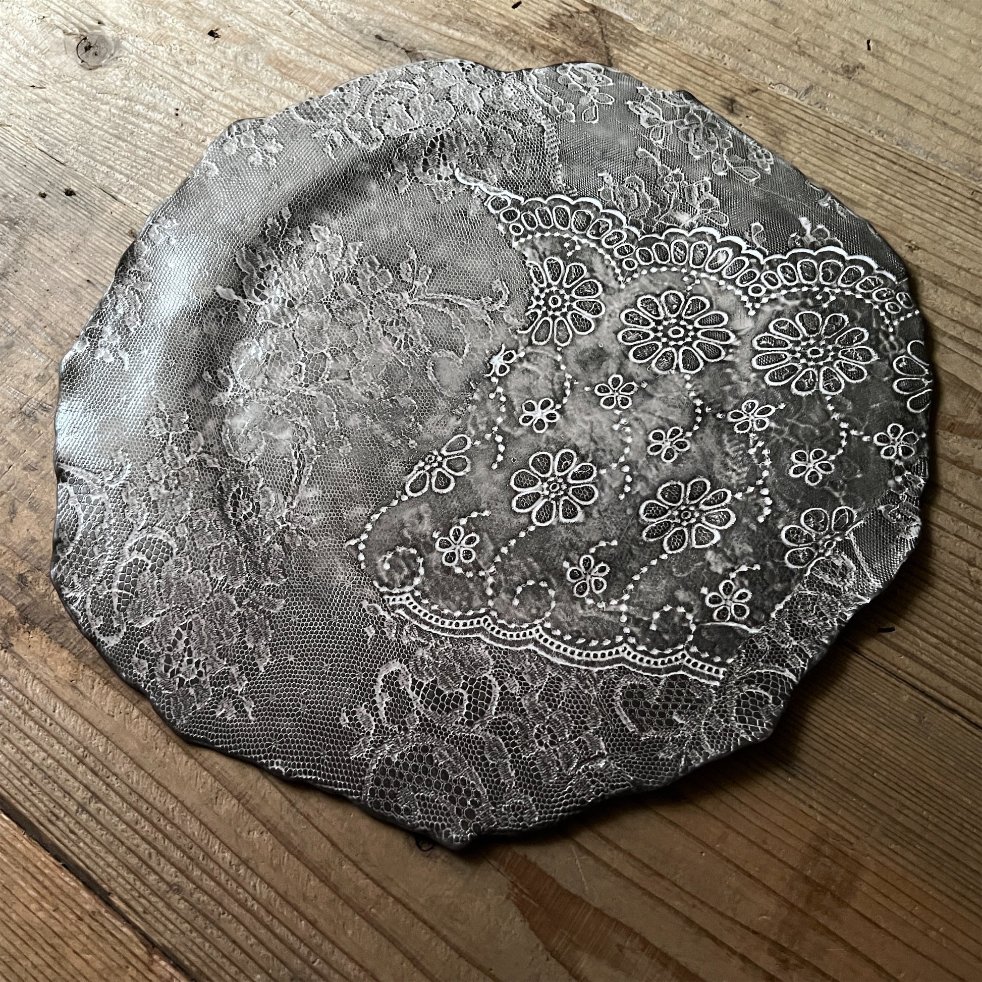 フランス人アーティストのヴァレリー・カサドが独自の手法で制作するセラミック作品。南仏ソルグ島のヴォクリューズに工房を構え、感性の赴くままに手を動かして造形しています。布地のように薄く柔らかなフォルムで、粉砂糖をまとったお菓子のような表情があります。古いものに関心の深い彼女が集めたアンティークのレースやボタンで表現された美しいレリーフが魅力。作家の優しさが伝わってくるような、ひとつとして同じものがない作品です。*手作りのため、形や風合いには個体差があります。