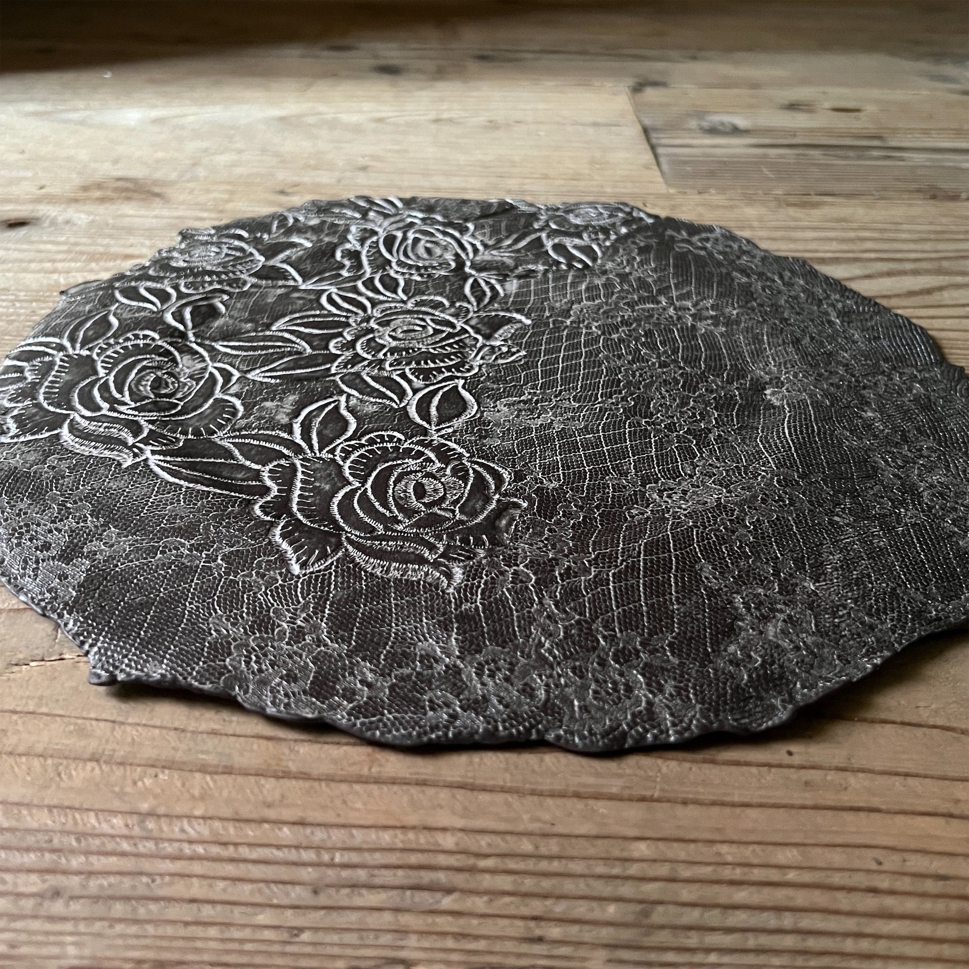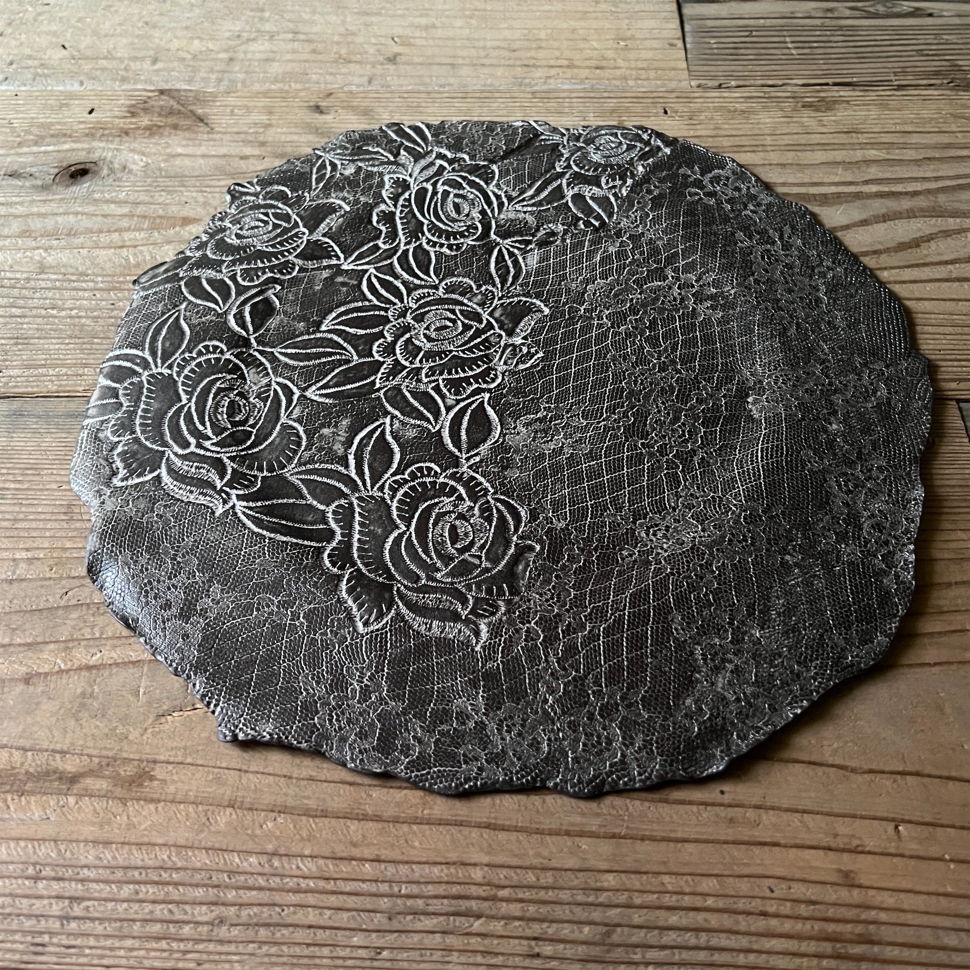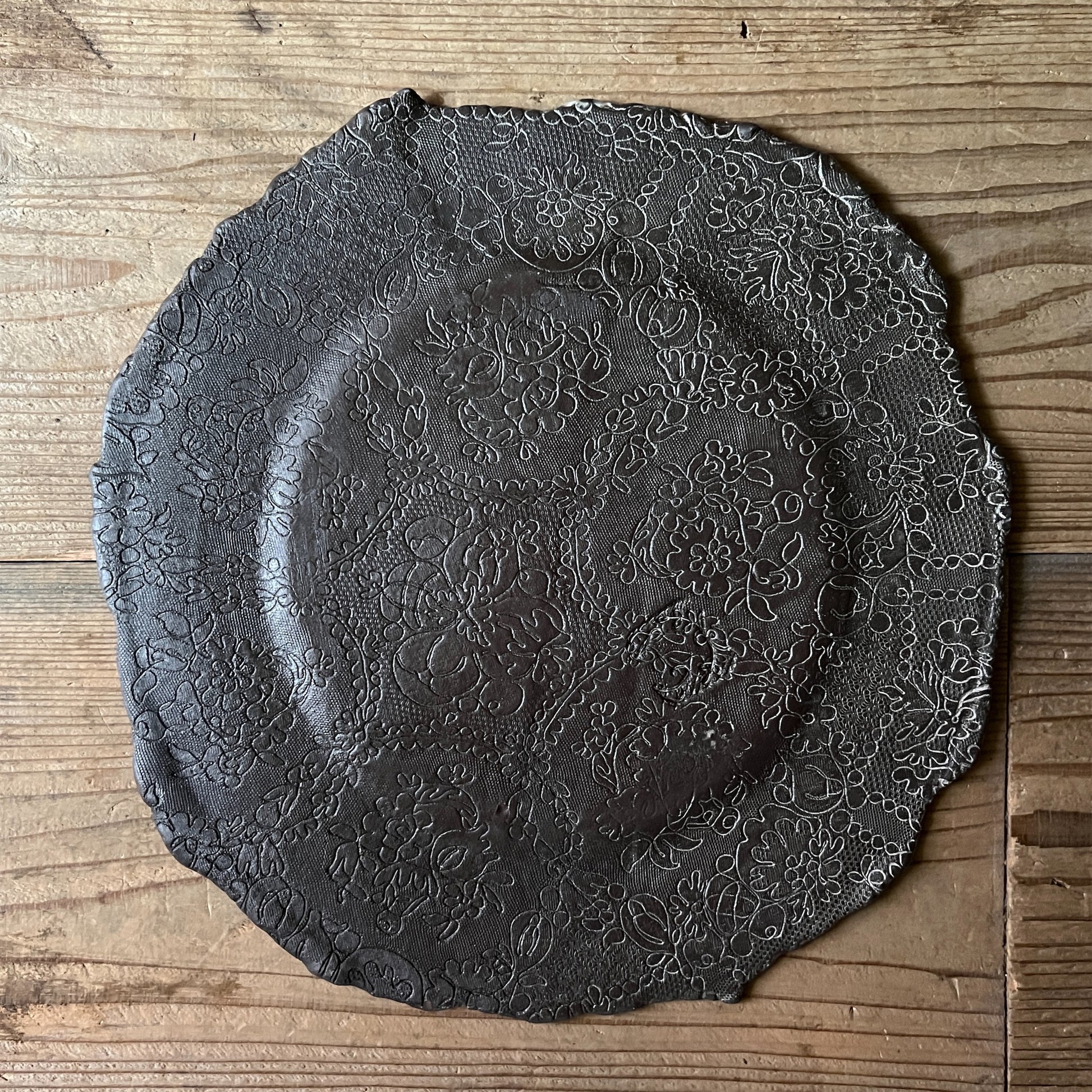 フランス人アーティストのヴァレリー・カサドが独自の手法で制作するセラミック作品。南仏ソルグ島のヴォクリューズに工房を構え、感性の赴くままに手を動かして造形しています。布地のように薄く柔らかなフォルムで、粉砂糖をまとったお菓子のような表情があります。古いものに関心の深い彼女が集めたアンティークのレースやボタンで表現された美しいレリーフが魅力。作家の優しさが伝わってくるような、ひとつとして同じものがない作品です。*手作りのため、形や風合いには個体差があります。