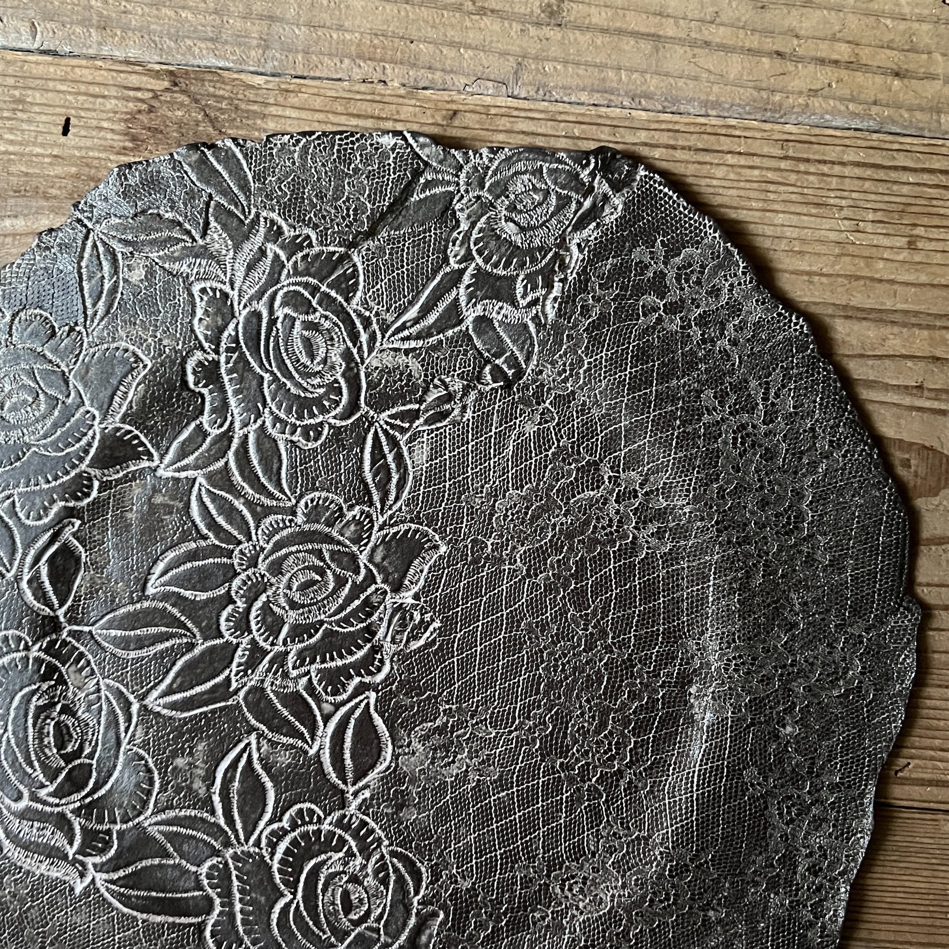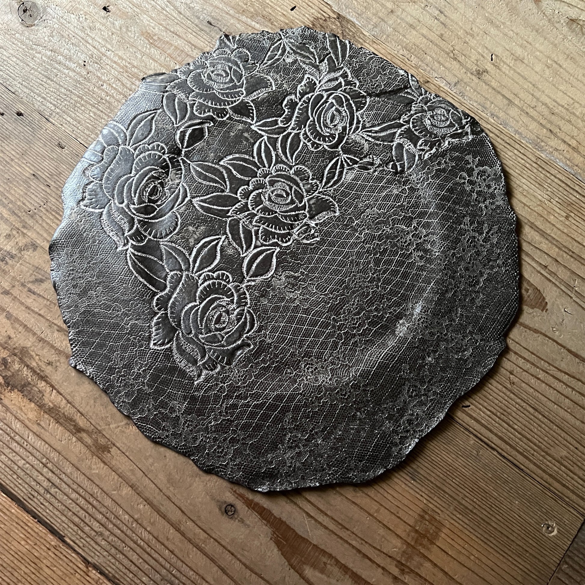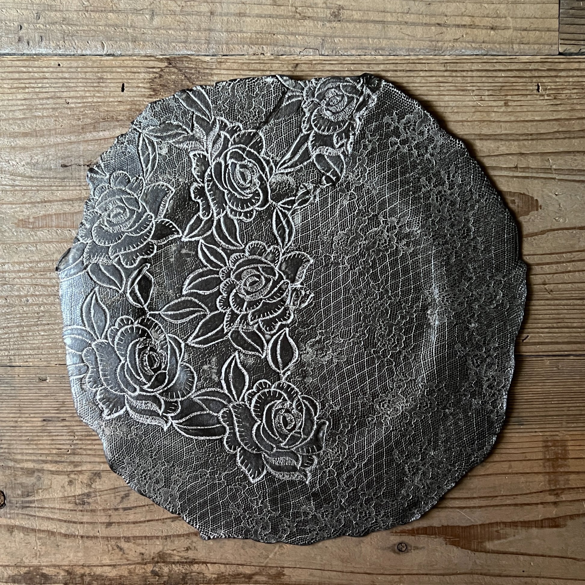フランス人アーティストのヴァレリー・カサドが独自の手法で制作するセラミック作品。南仏ソルグ島のヴォクリューズに工房を構え、感性の赴くままに手を動かして造形しています。布地のように薄く柔らかなフォルムで、粉砂糖をまとったお菓子のような表情があります。古いものに関心の深い彼女が集めたアンティークのレースやボタンで表現された美しいレリーフが魅力。作家の優しさが伝わってくるような、ひとつとして同じものがない作品です。*手作りのため、形や風合いには個体差があります。