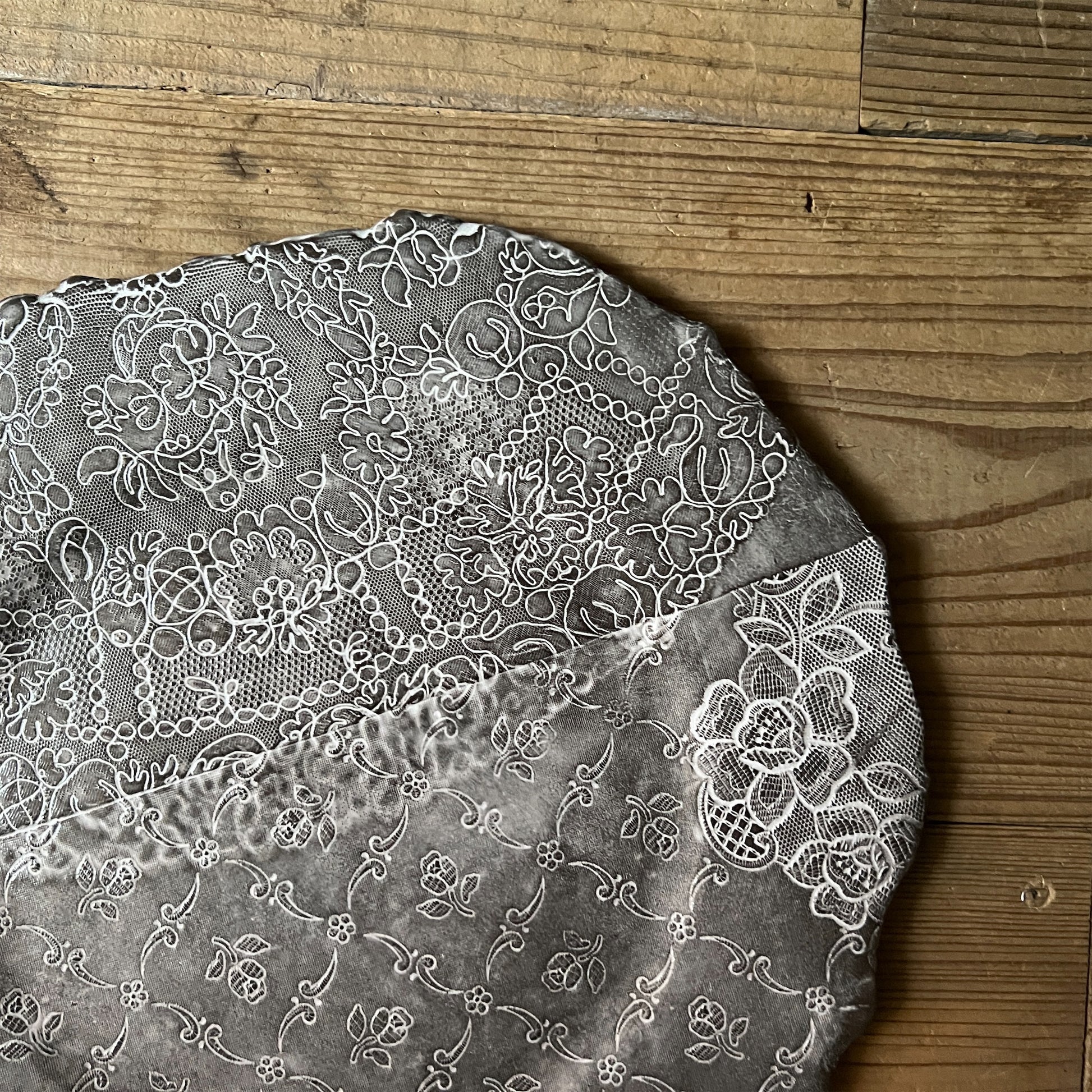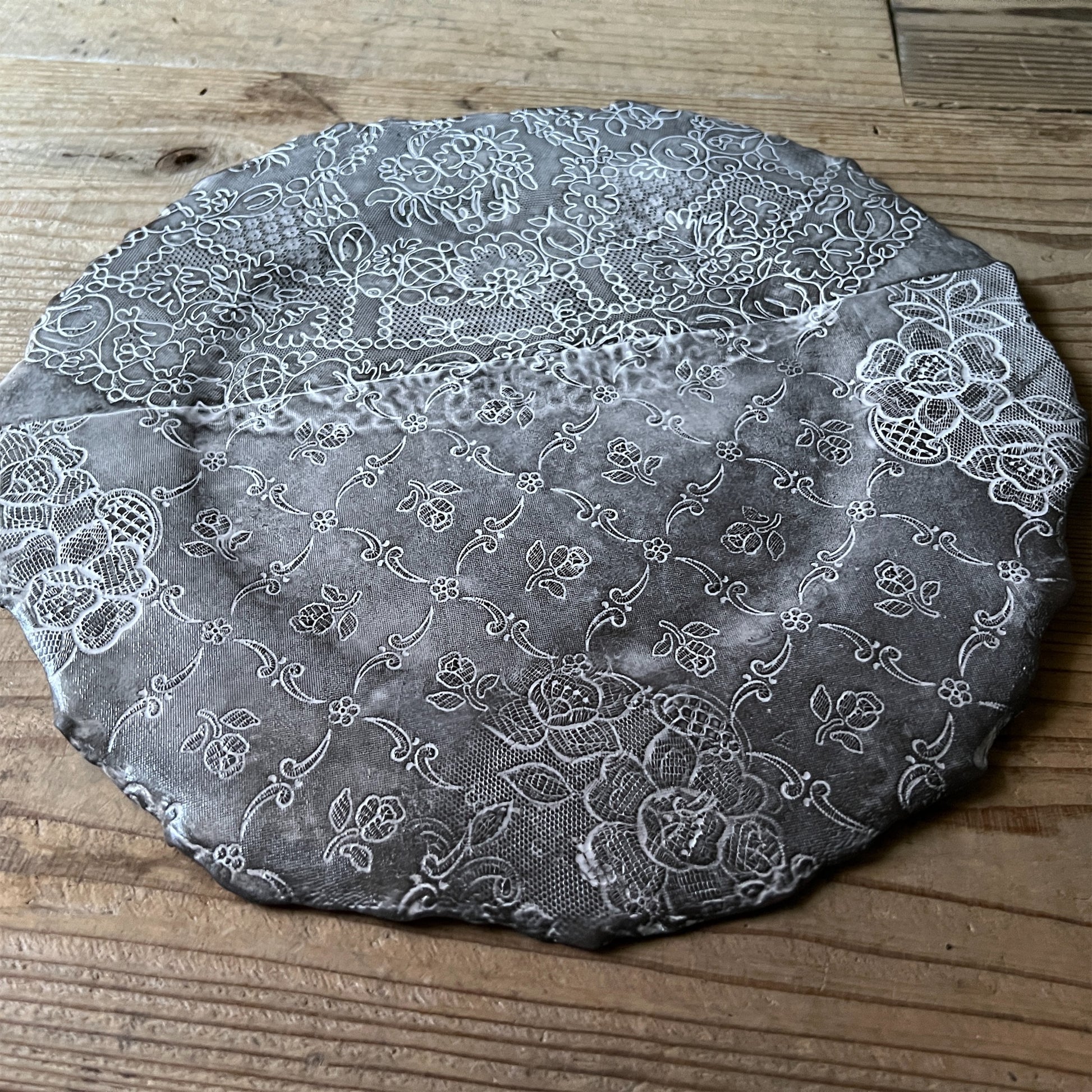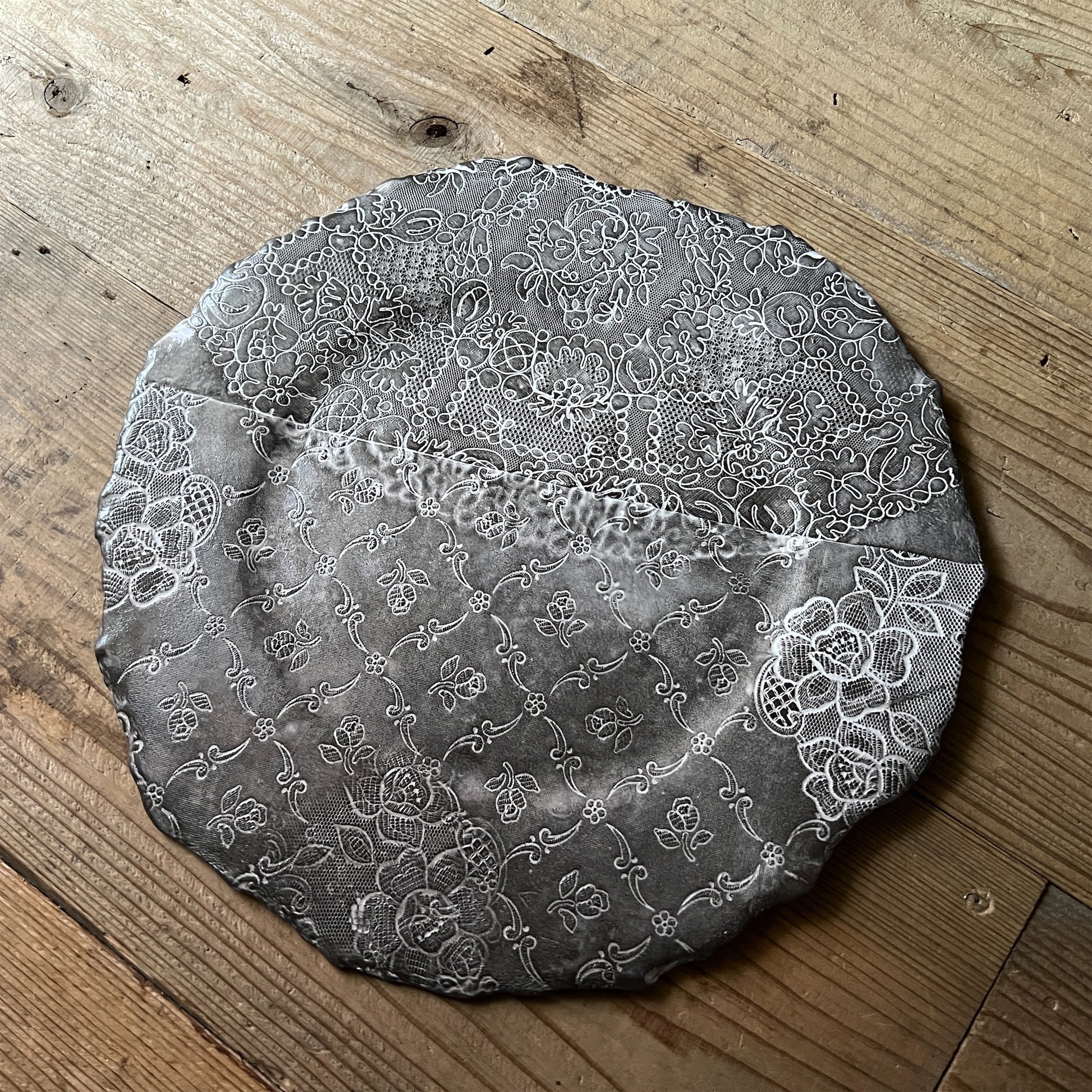 フランス人アーティストのヴァレリー・カサドが独自の手法で制作するセラミック作品。南仏ソルグ島のヴォクリューズに工房を構え、感性の赴くままに手を動かして造形しています。布地のように薄く柔らかなフォルムで、粉砂糖をまとったお菓子のような表情があります。古いものに関心の深い彼女が集めたアンティークのレースやボタンで表現された美しいレリーフが魅力。作家の優しさが伝わってくるような、ひとつとして同じものがない作品です。*手作りのため、形や風合いには個体差があります。