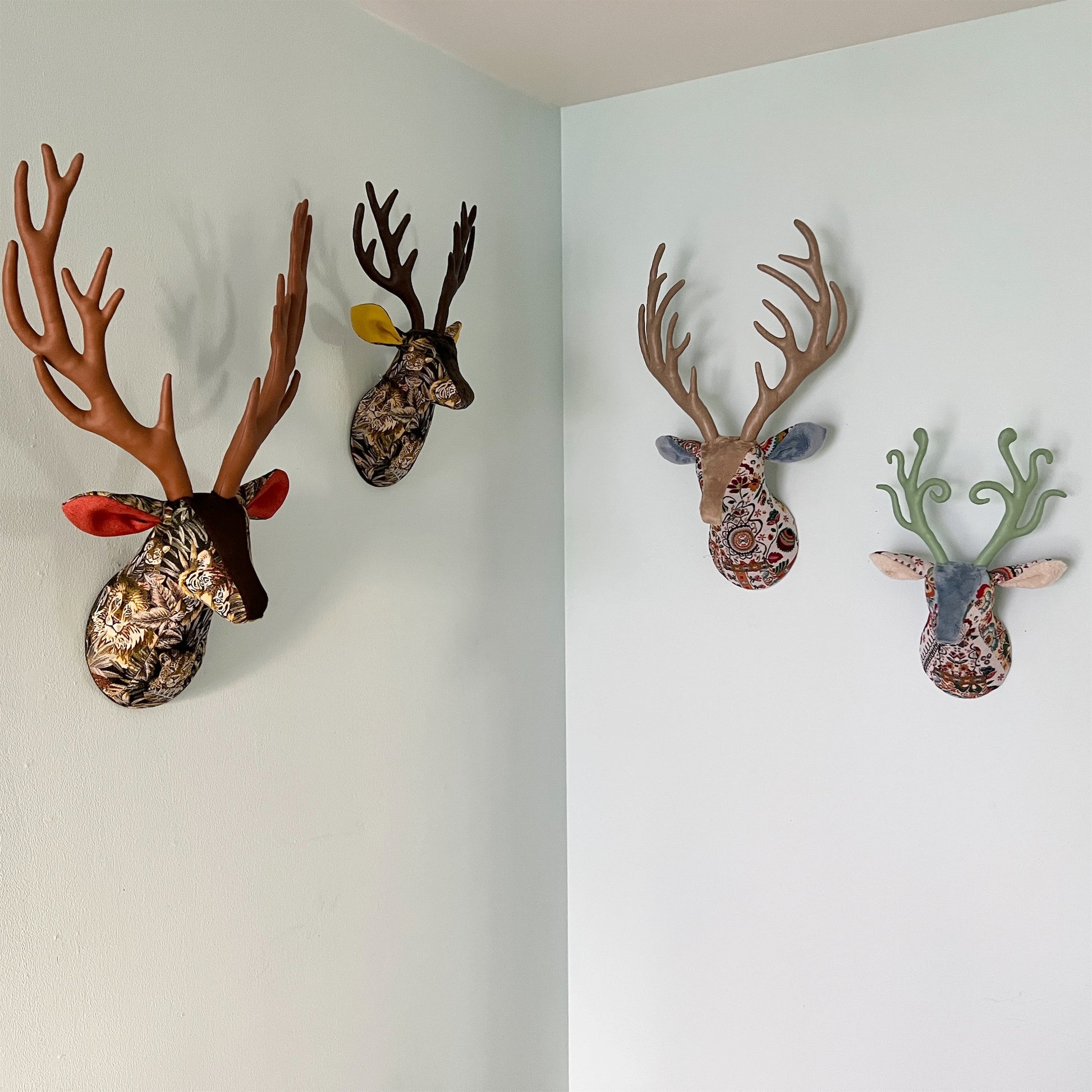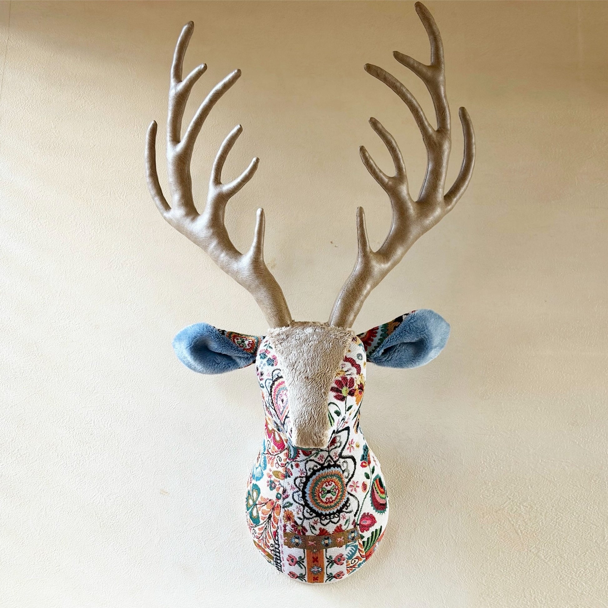 ファブリック・トロフィーは動物の剥製 ”ハンティング・トロフィー”を模した布製の壁掛けオブジェです。ひとつひとつ丁寧に縫製し、中にワタだけをぎっしりと詰めてあるので軽く、安心して飾ることができます。