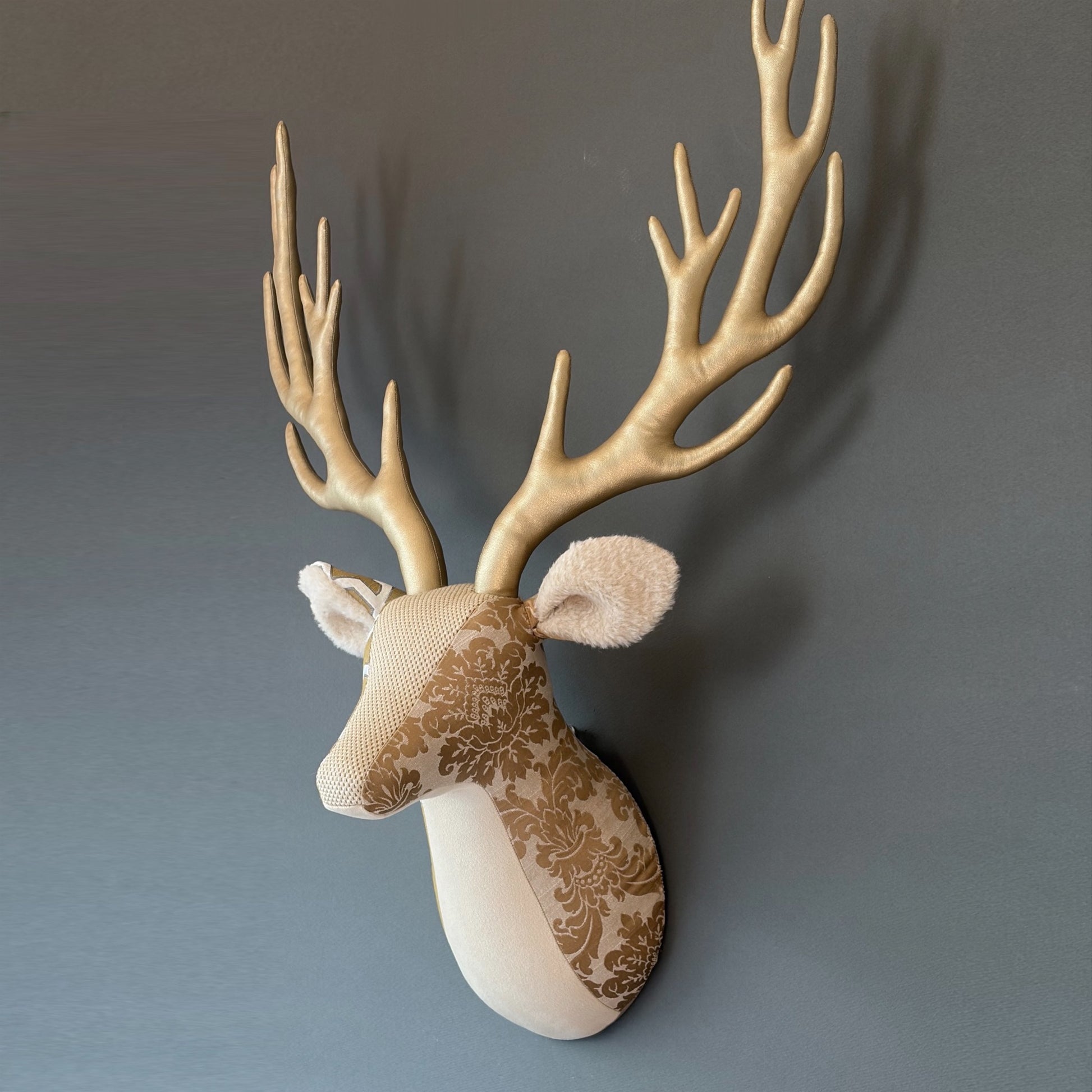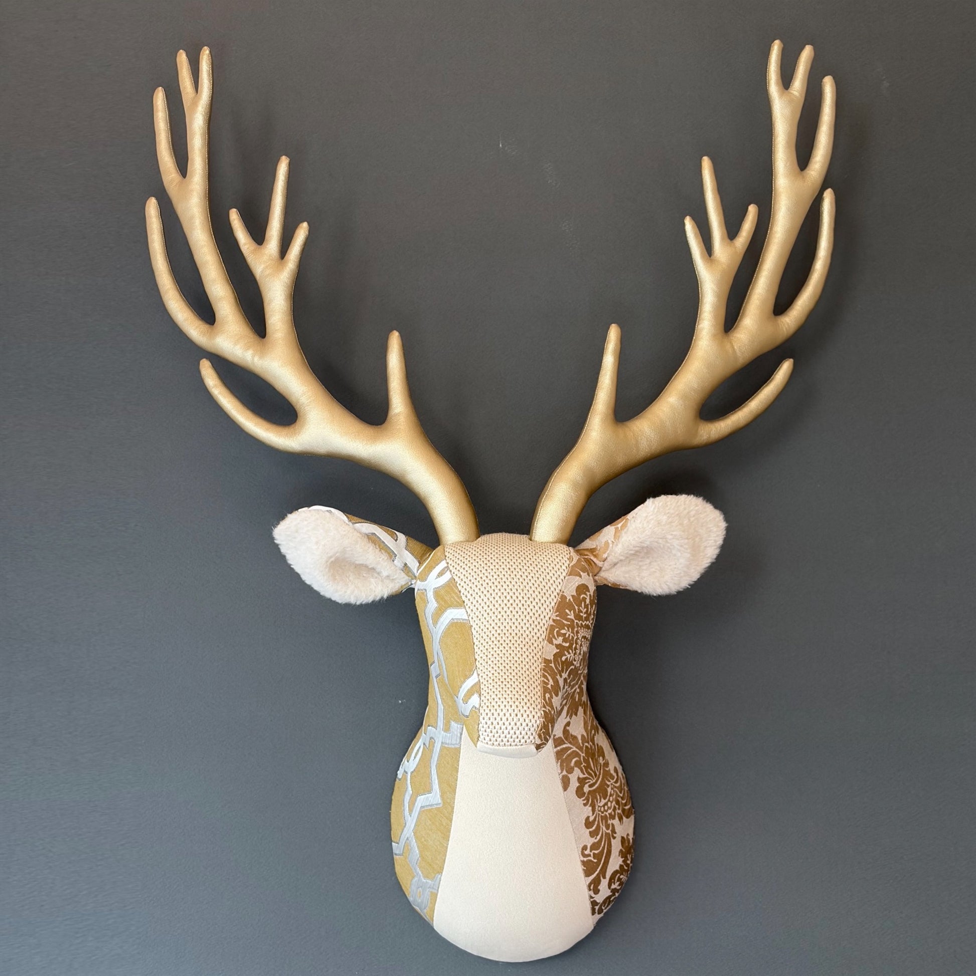 ファブリック・トロフィーは動物の剥製 ”ハンティング・トロフィー”を模した布製の壁掛けオブジェです。ひとつひとつ丁寧に縫製し、中にワタだけをぎっしりと詰めてあるので軽く、安心して飾ることができます。【都築まゆ美】1966年東京生まれ。1988年武蔵野美術大学工芸工業デザイン学科(インテリアデザイン専攻)卒業。油彩画とリソグラフによる版画作品を制作し、個展やアートフェアへの出展をメインとしながらクライアントワークを行う。また、布による動物の壁掛けオブジェFabric trophyの制作など、様々な創作活動をしている。日常の何気ない風景や人物を描きながら、記憶の曖昧さや感情の残像を表現。光と影、安らかでいて不穏、親密さと距離感といった二面性の共存を探求し、鑑賞者それぞれの記憶と重なり合うような作品を目指している。梱包や配送の際に角や耳の形が崩れてしまうことがありますが、壁に掛ける際に手で角や耳を整えていただければその形を維持します。こちらの商品は実店舗でも取り扱っております。オンラインショップ上でご注文いただいても、現品が実店舗にて「売約済」となっておりご希望に添えない場合もございます。その際はメールにてご連絡いたしますので、予めご了承ください。