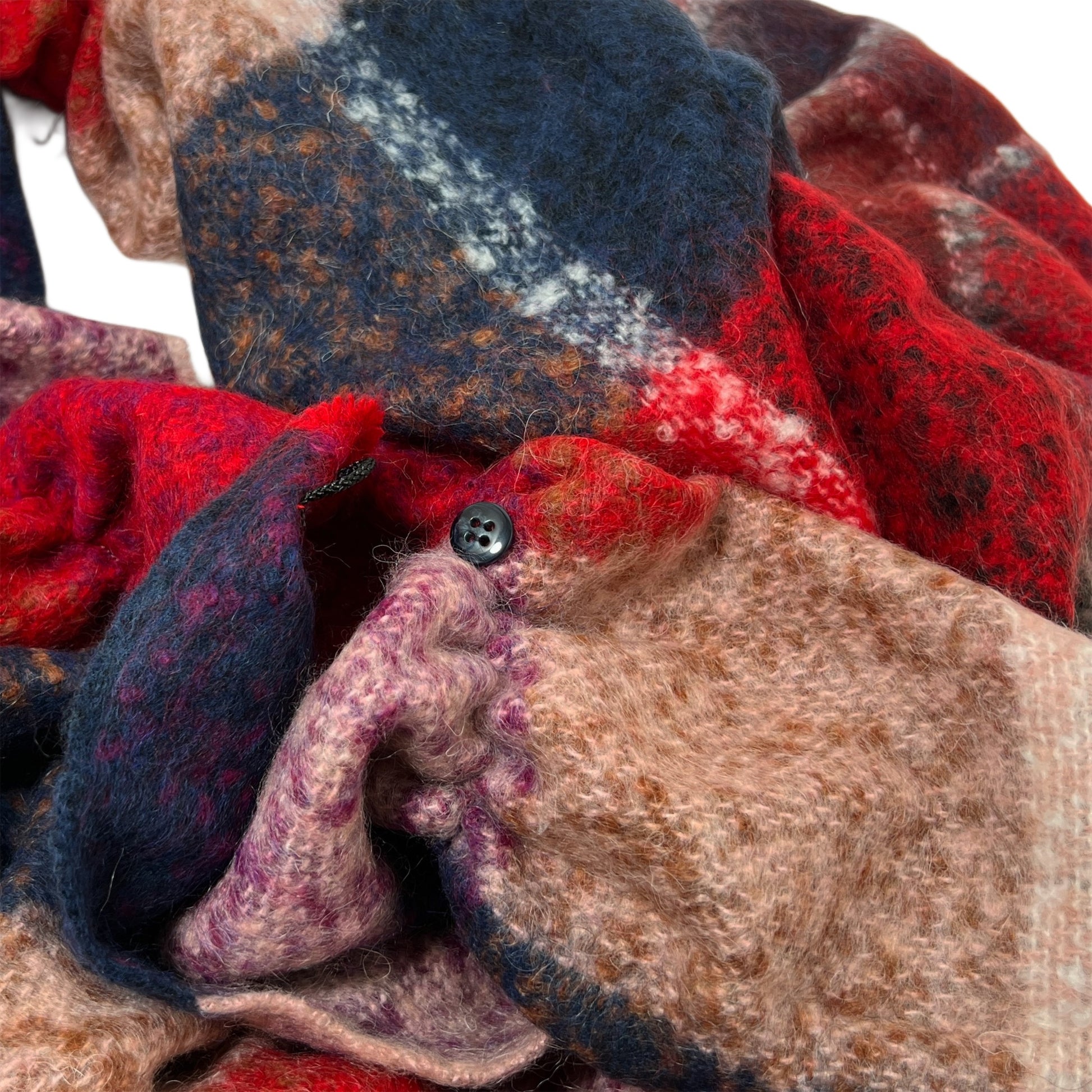 フランスの織物をパッチワークして作られた、ストールにもなるケープ風羽織です。シャーリング加工により立体感があり、ボタンが2つついていて自由にスタイリングできます。モヘヤを使用した三者混の生地は軽量ながら空気を含んで暖かいです。【Sayoko.M】ファブリックに拘り、相反する要素を一つの作品に込める事を意識しています。独特の光沢きしみ感はこの繊維の特徴です。使用を繰り返す事により毛羽立ちが生じたり風合いが徐々に変化します。着用の際は引っかかりに注意下さい。雨は水に濡れた場合は早めにふき取り、通期の良い所で形を整えて陰干しして下さい。こちらの商品は実店舗でも取り扱っております。オンラインショップ上でご注文いただいても、現品が実店舗にて「売約済」となっておりご希望に添えない場合もございます。その際はメールにてご連絡いたしますので、予めご了承ください。