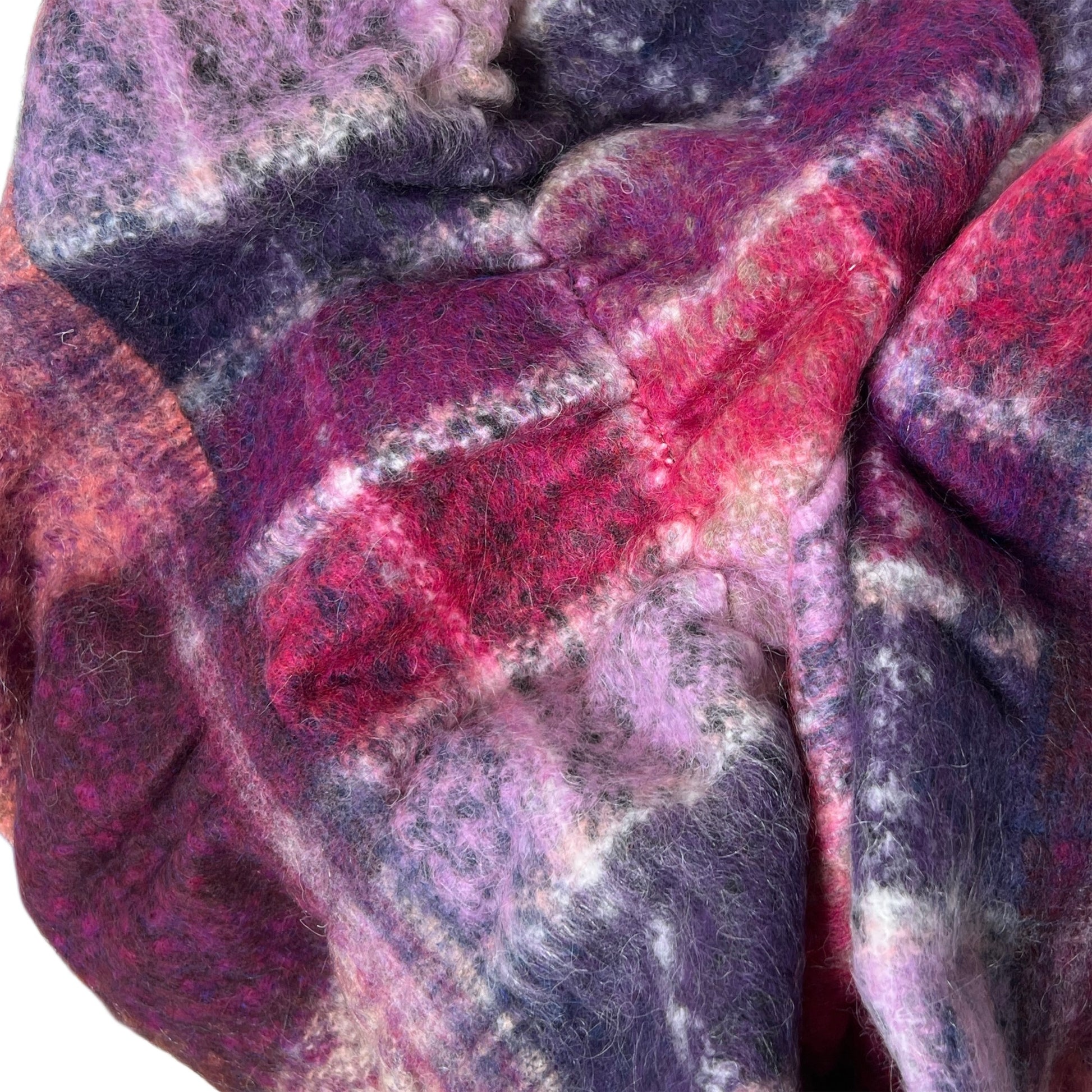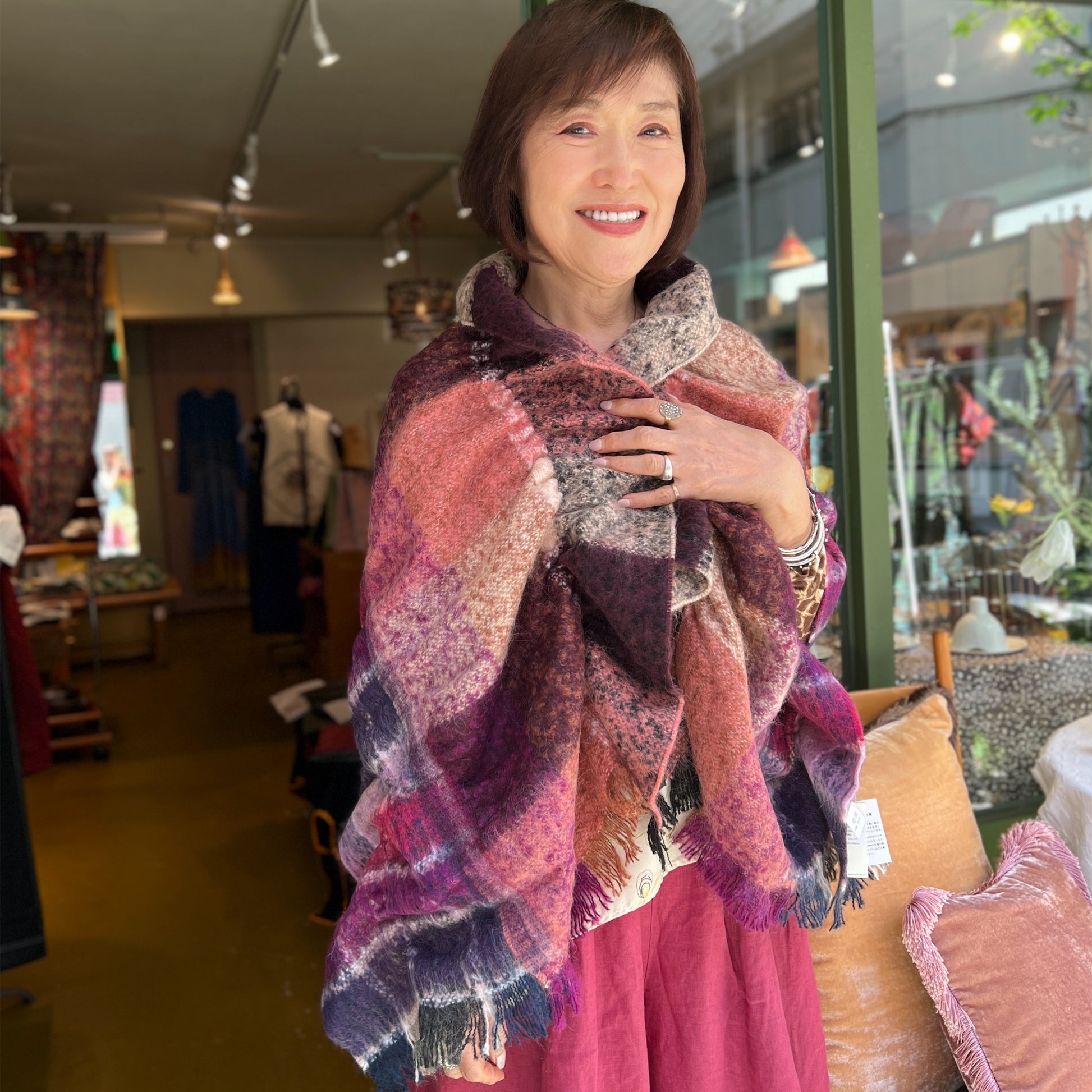 フランスの織物をパッチワークして作られた、ストールにもなるケープ風羽織です。シャーリング加工により立体感があり、ボタンが2つついていて自由にスタイリングできます。モヘヤを使用した三者混の生地は軽量ながら空気を含んで暖かいです。【Sayoko.M】ファブリックに拘り、相反する要素を一つの作品に込める事を意識しています。独特の光沢きしみ感はこの繊維の特徴です。使用を繰り返す事により毛羽立ちが生じたり風合いが徐々に変化します。着用の際は引っかかりに注意下さい。雨は水に濡れた場合は早めにふき取り、通期の良い所で形を整えて陰干しして下さい。こちらの商品は実店舗でも取り扱っております。オンラインショップ上でご注文いただいても、現品が実店舗にて「売約済」となっておりご希望に添えない場合もございます。その際はメールにてご連絡いたしますので、予めご了承ください。
