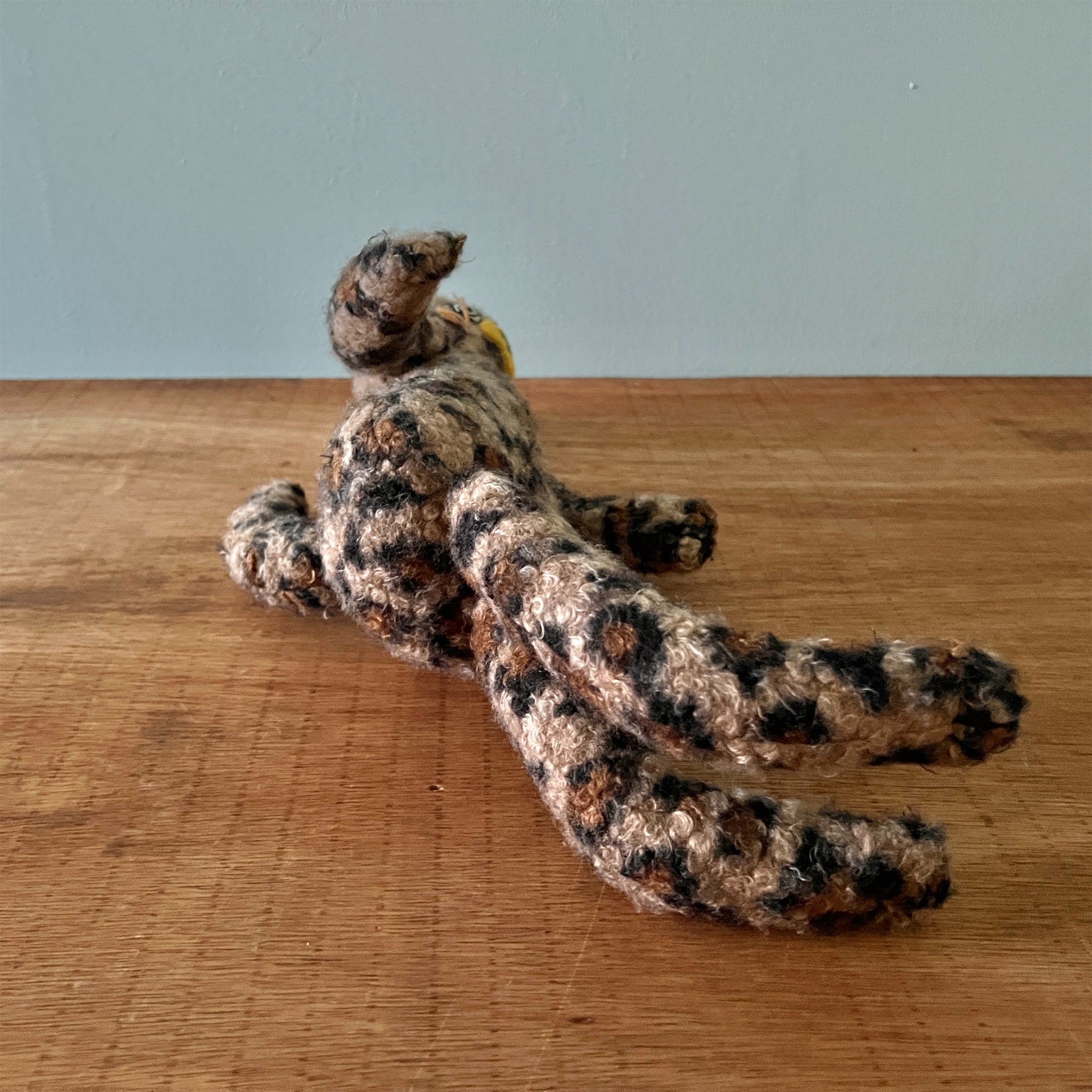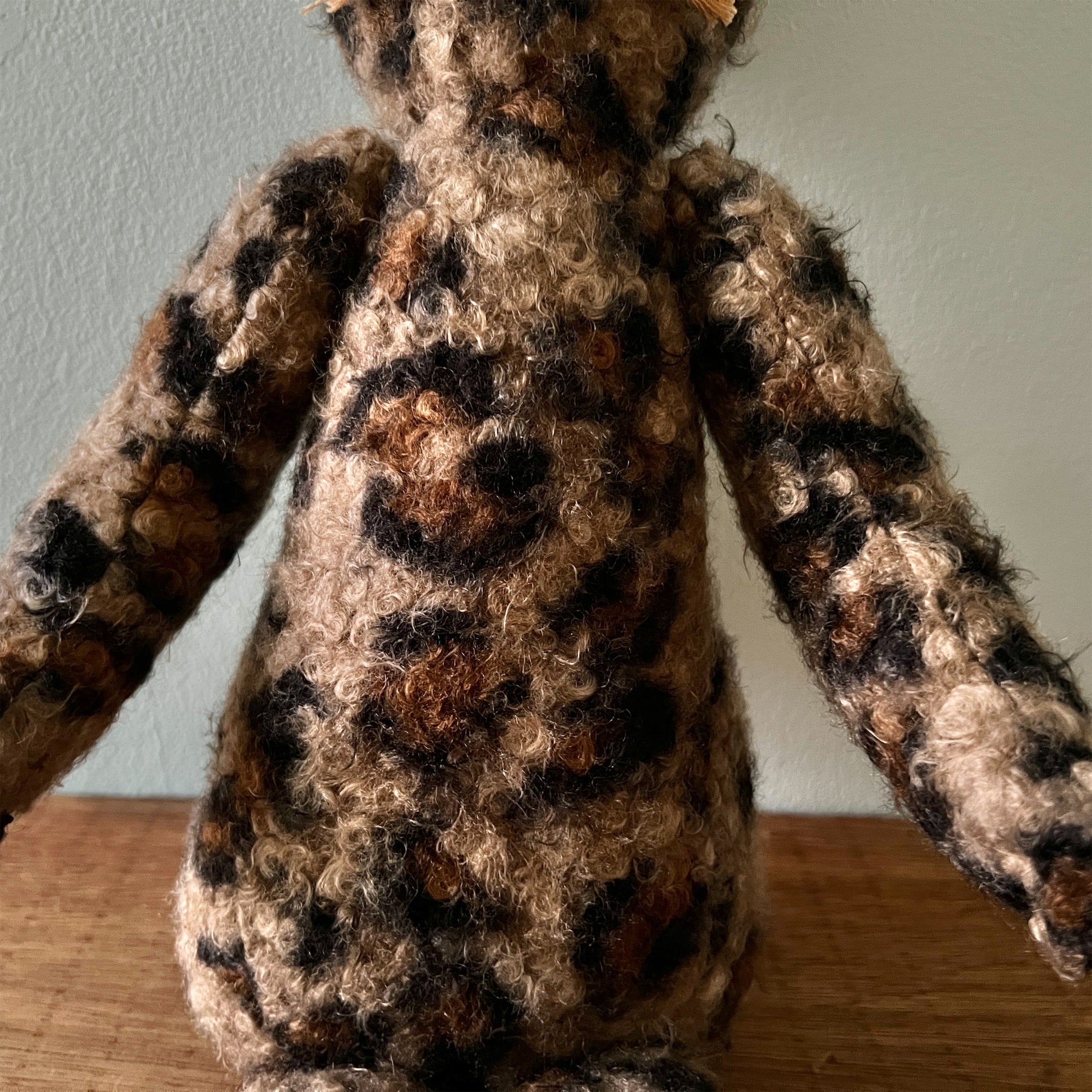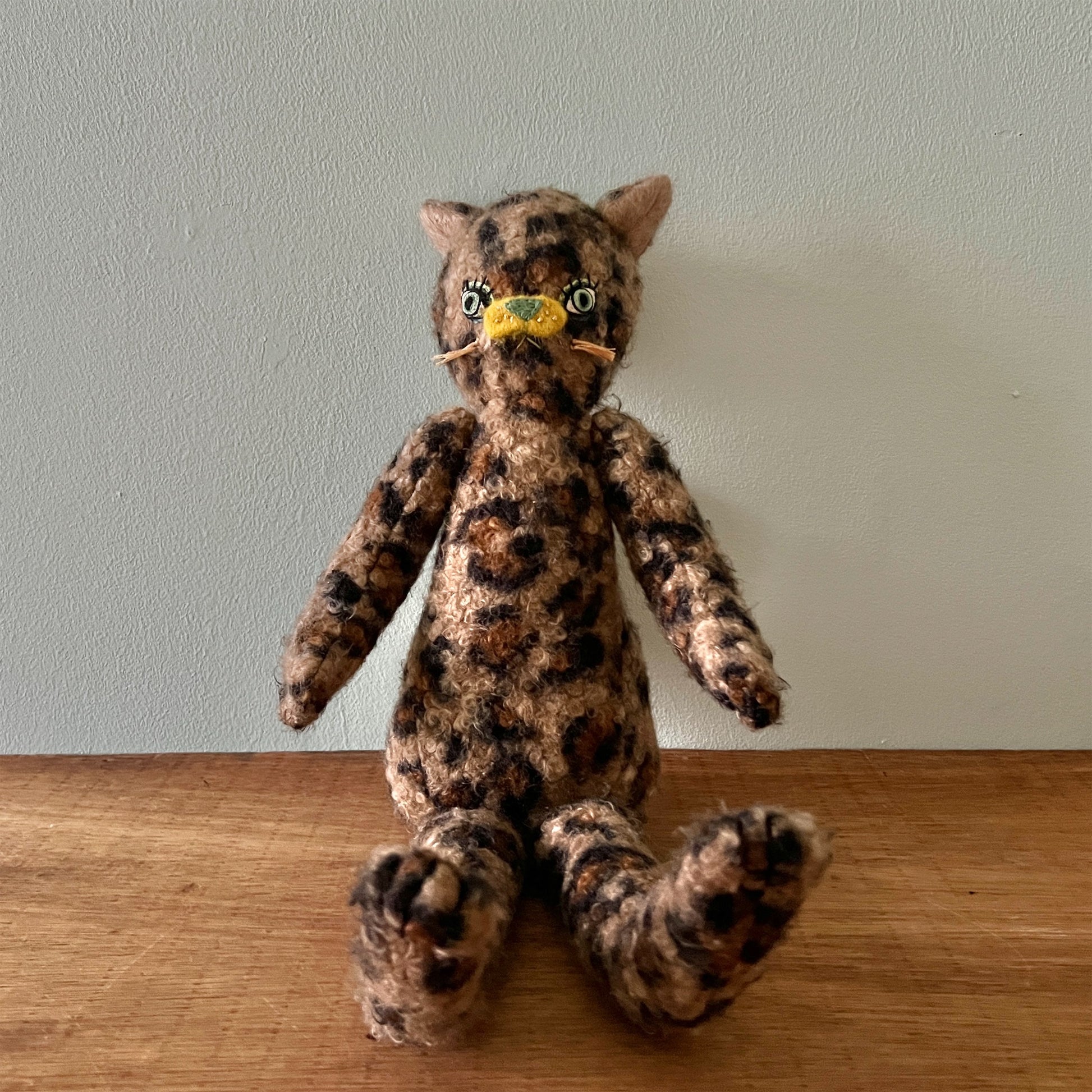 全て一点ものです。ヴィンテージの布地なども用いています。布地の組み合わせを考え、ぬいぐるみのボディを製作後、一つ一つ刺繍糸の配色にこだわって製作しております。