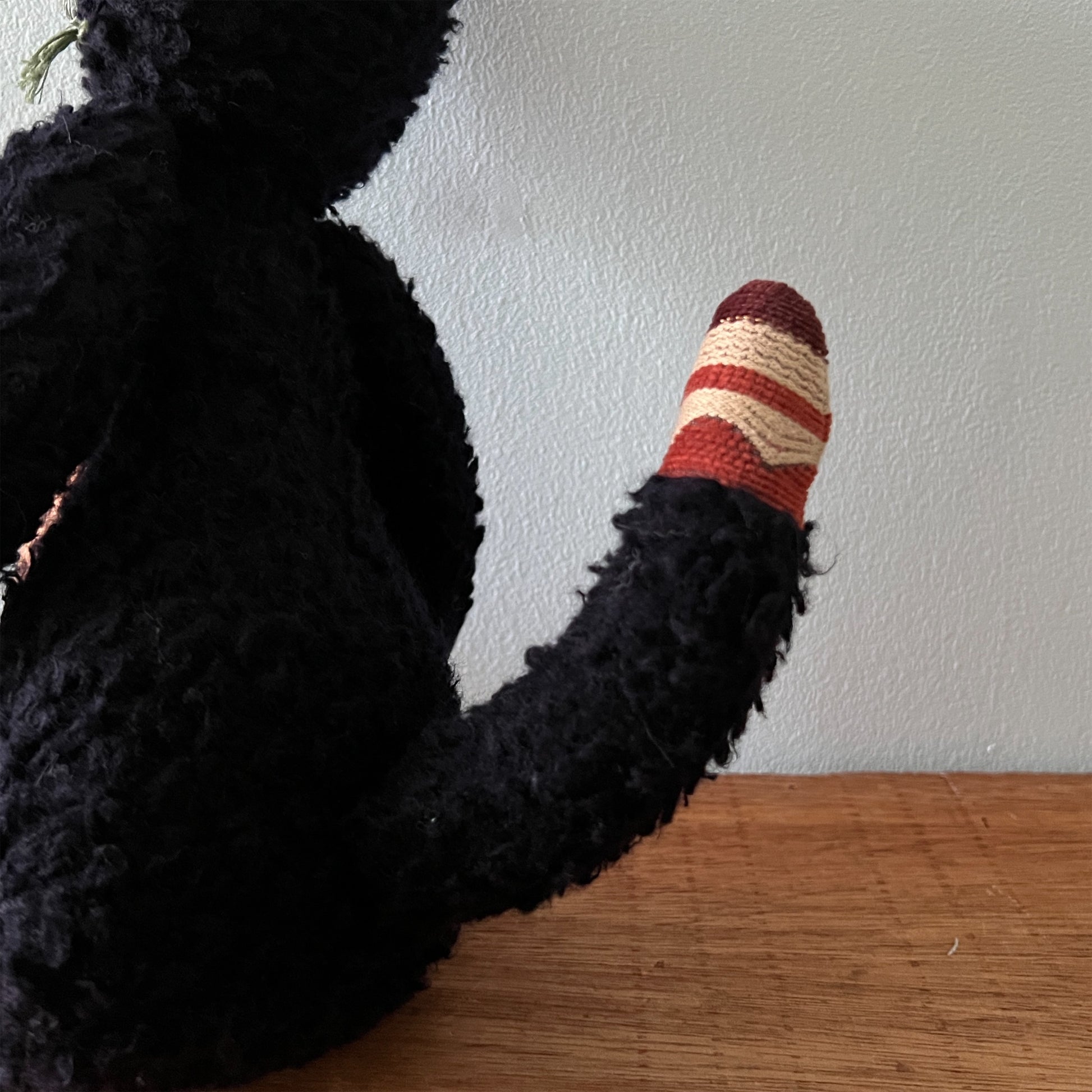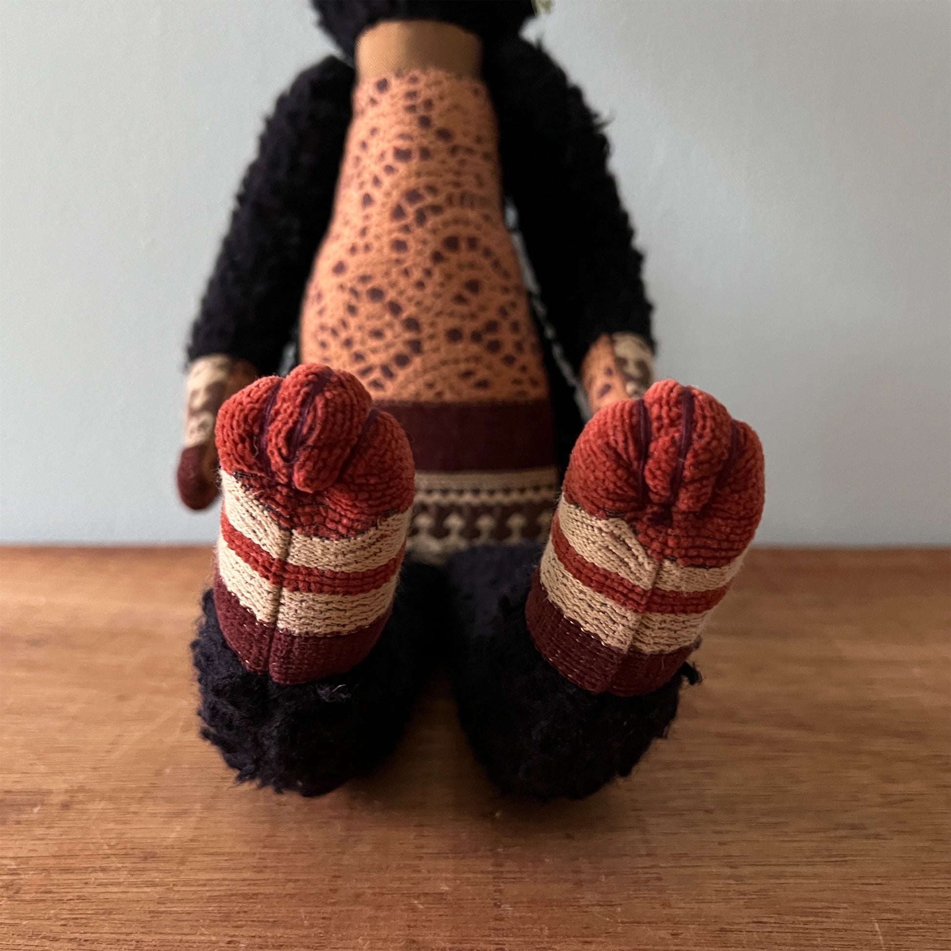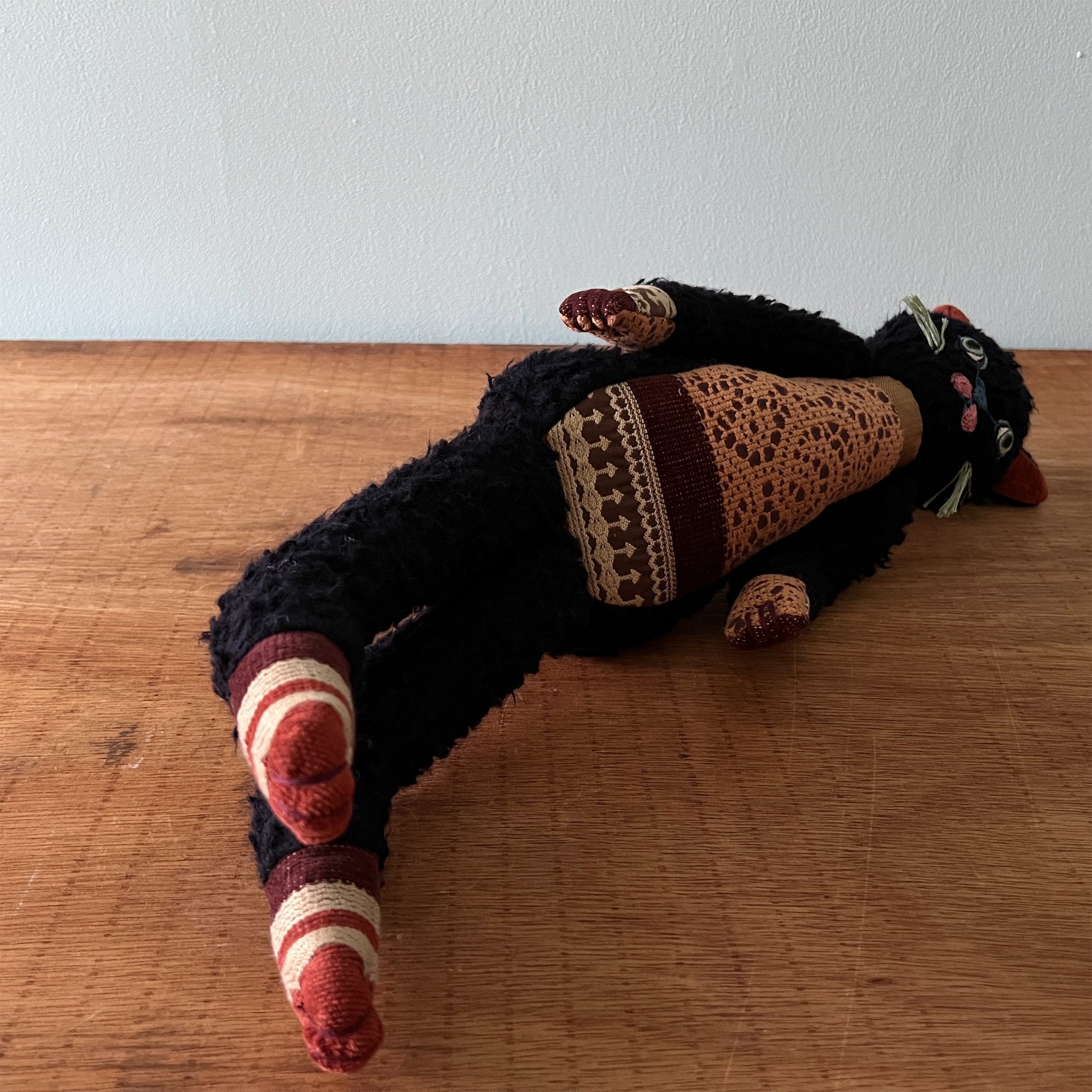 全て一点ものです。ヴィンテージの布地なども用いています。布地の組み合わせを考え、ぬいぐるみのボディを製作後、一つ一つ刺繍糸の配色にこだわって製作しております。