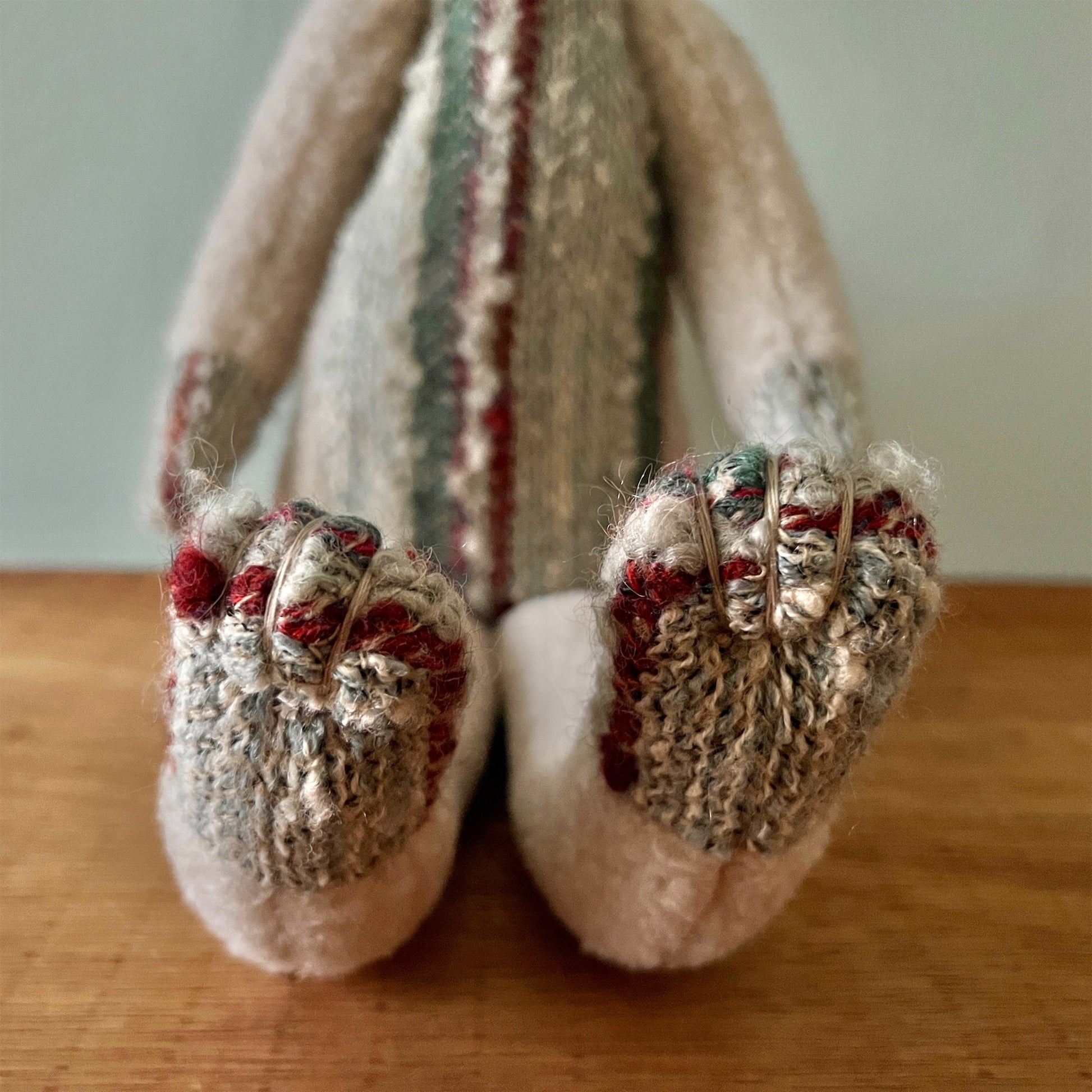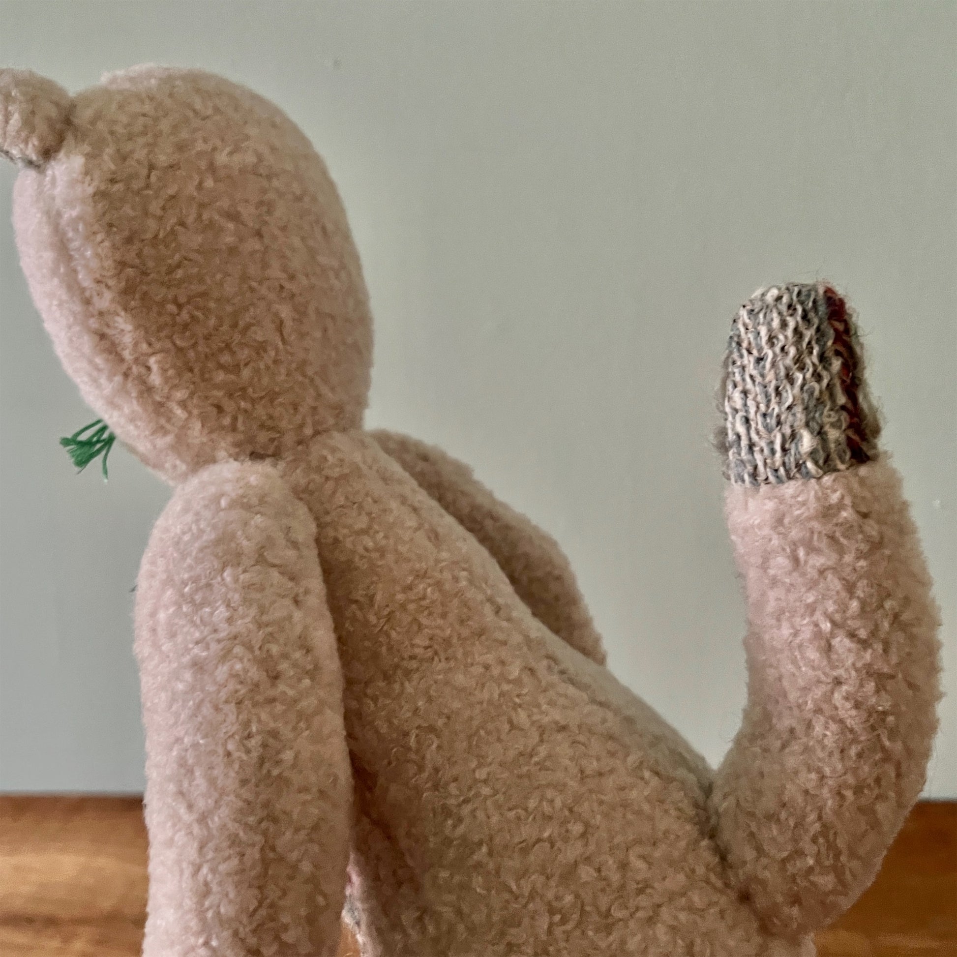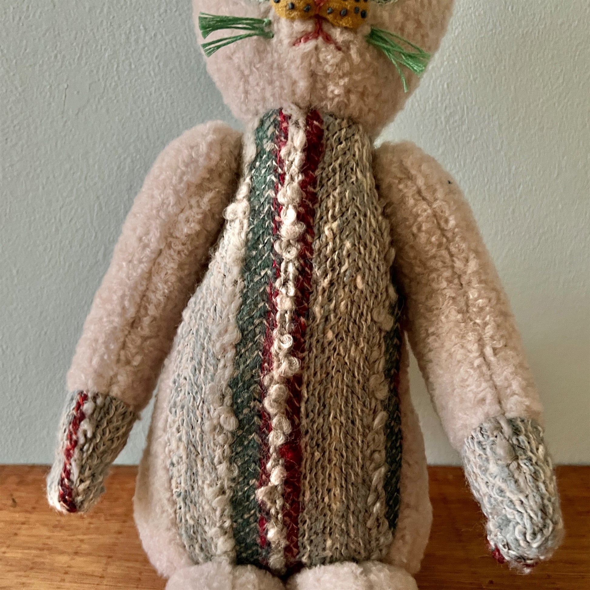 全て一点ものです。ヴィンテージの布地なども用いています。布地の組み合わせを考え、ぬいぐるみのボディを製作後、一つ一つ刺繍糸の配色にこだわって製作しております。