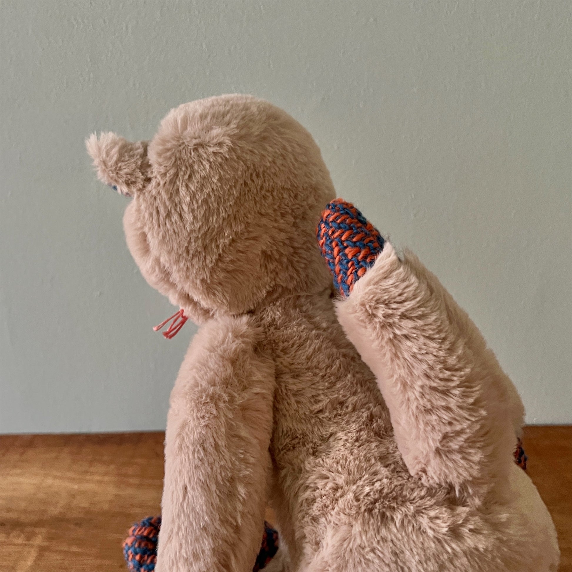 取扱注意事項:抱っこする、一緒に寝るくらいは大丈夫ですが、腕を持ってぶんぶん振り回すなどはお控えください。汚れた場合は、固く絞ったタオルで叩くように拭き取ってください。