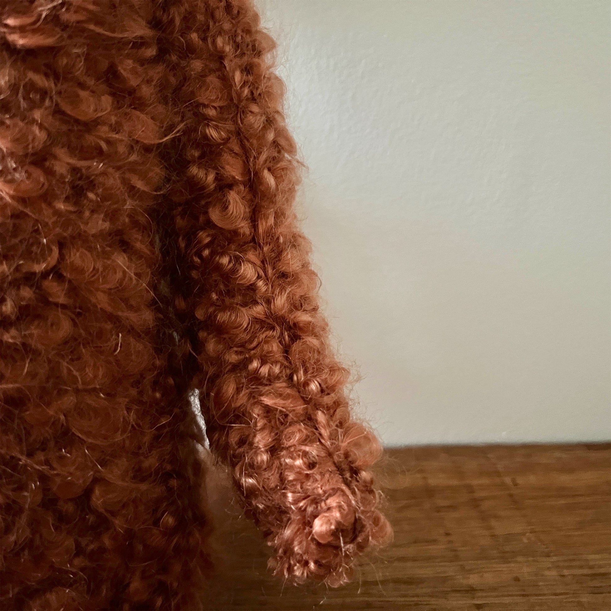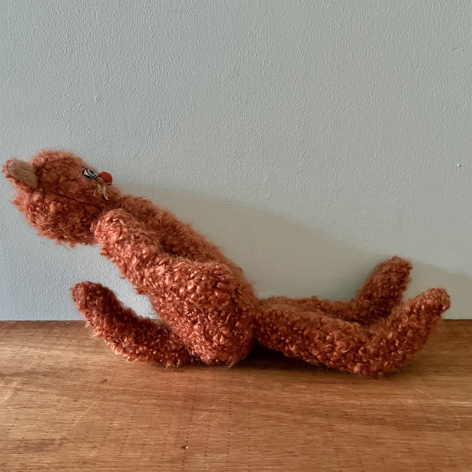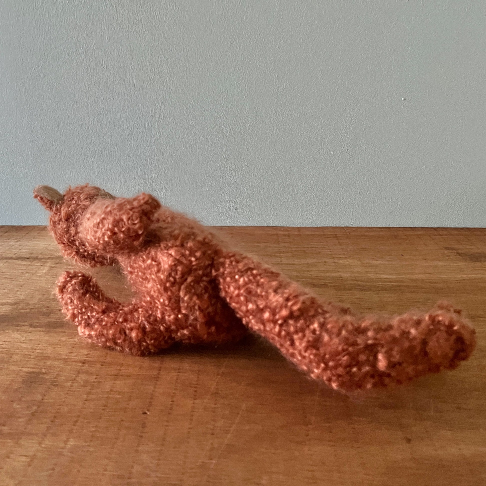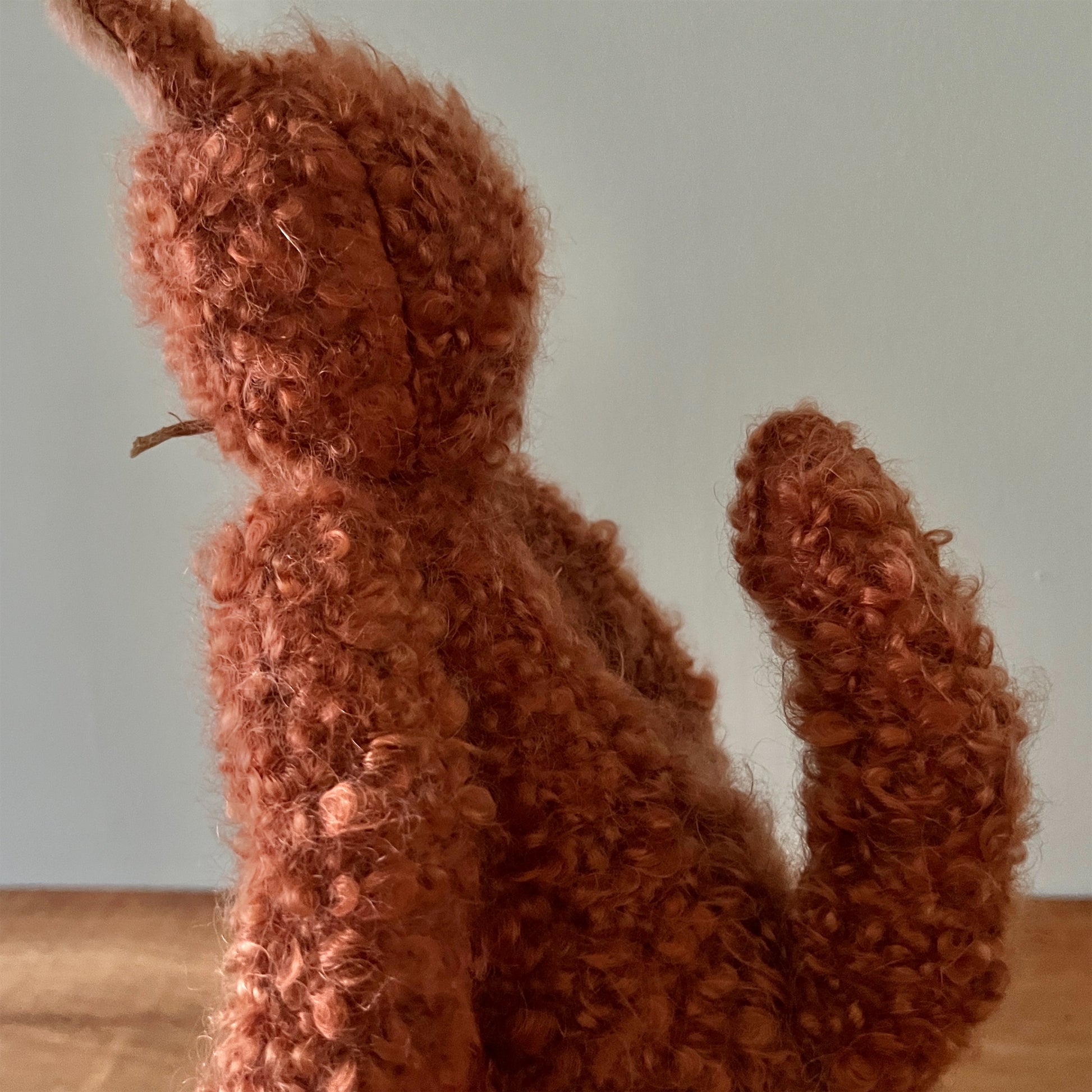 全て一点ものです。ヴィンテージの布地なども用いています。布地の組み合わせを考え、ぬいぐるみのボディを製作後、一つ一つ刺繍糸の配色にこだわって製作しております。