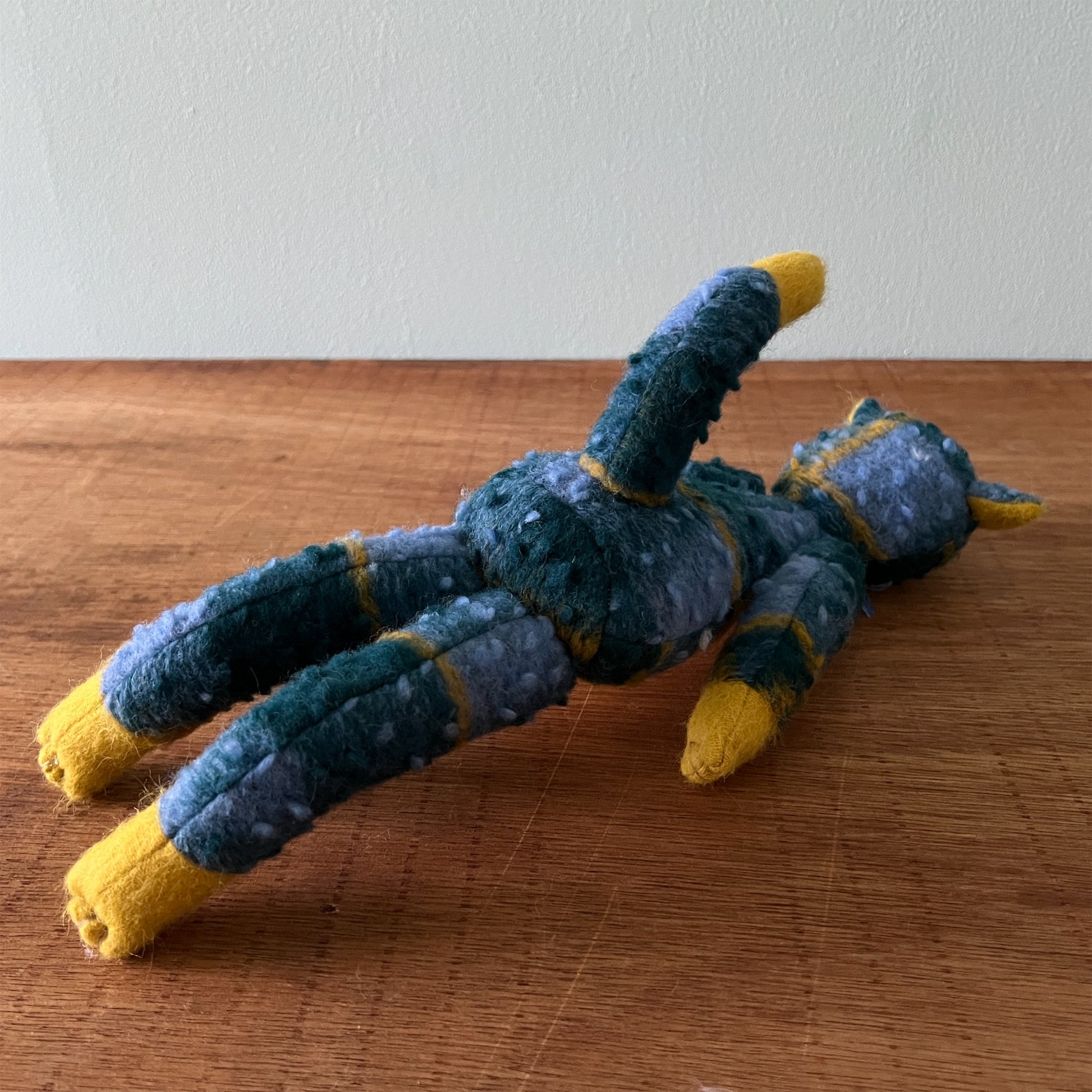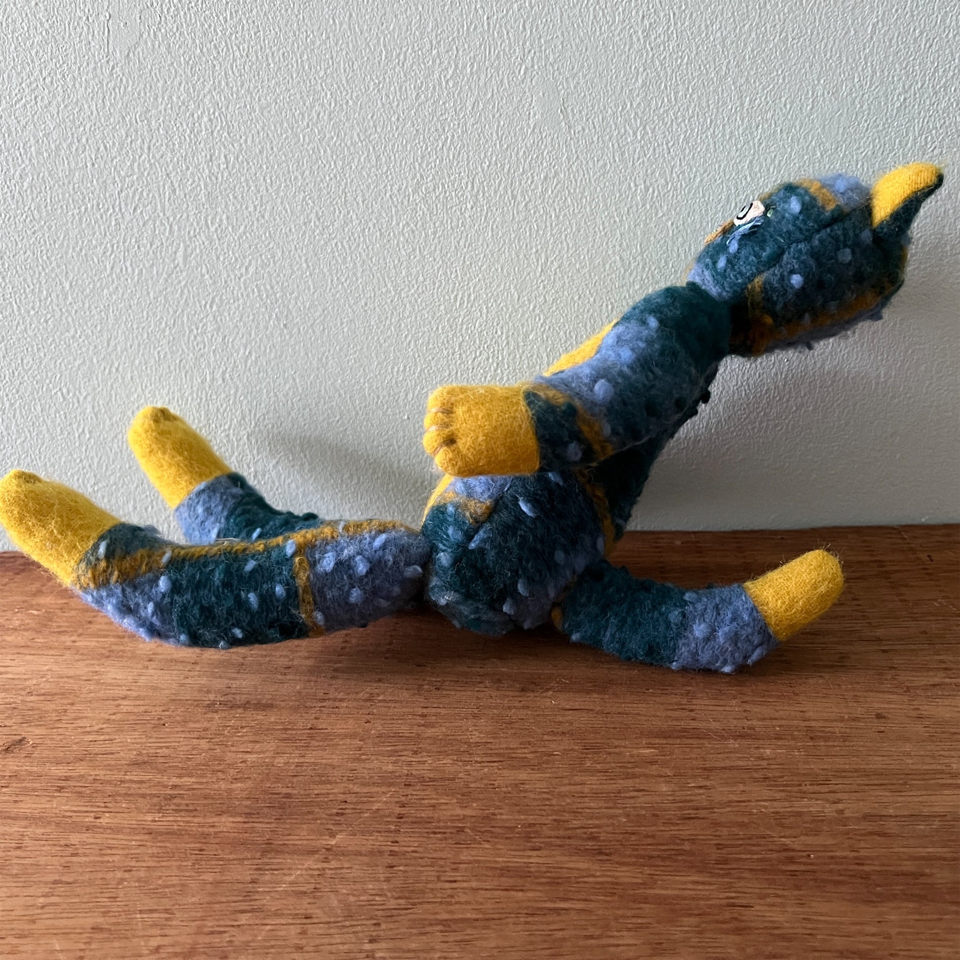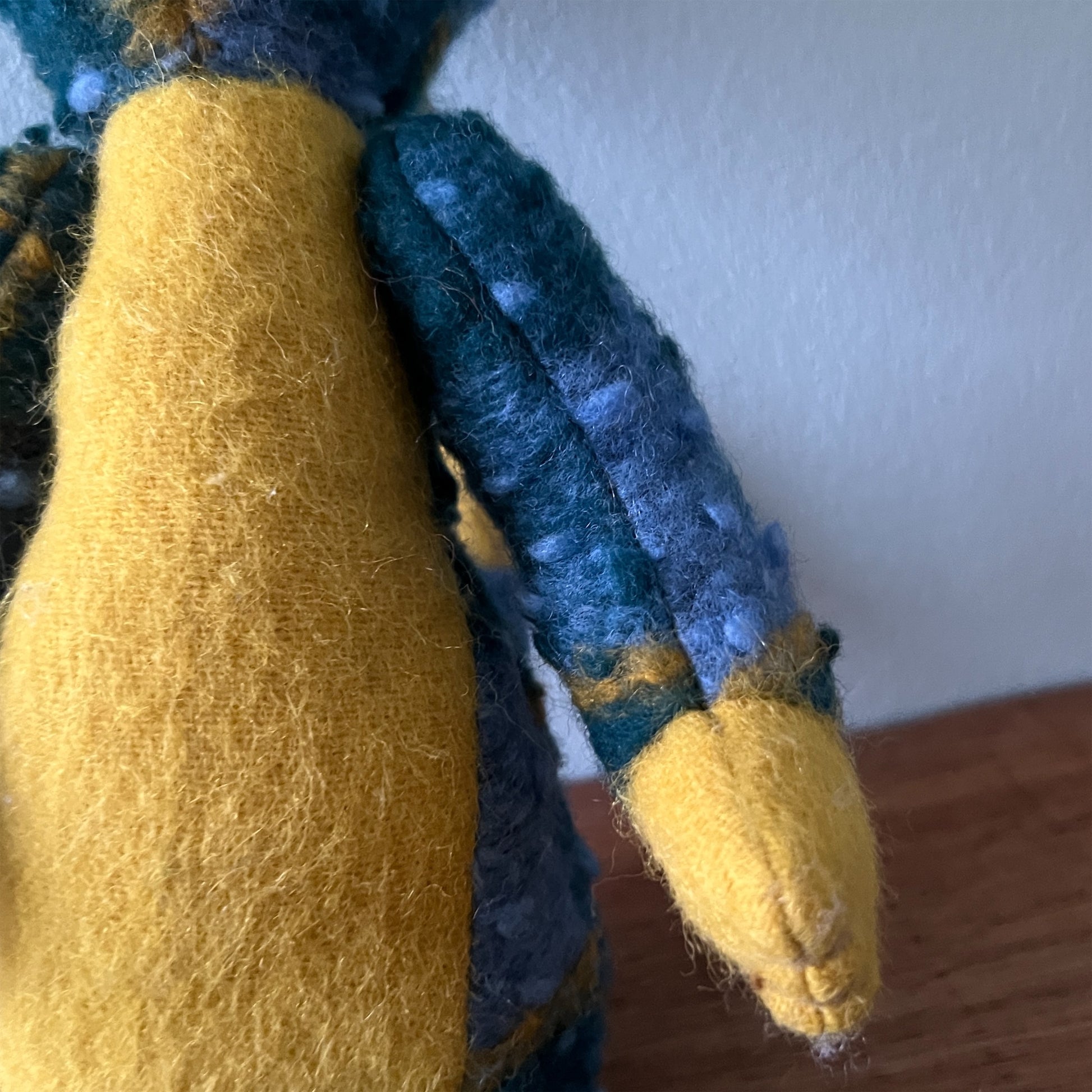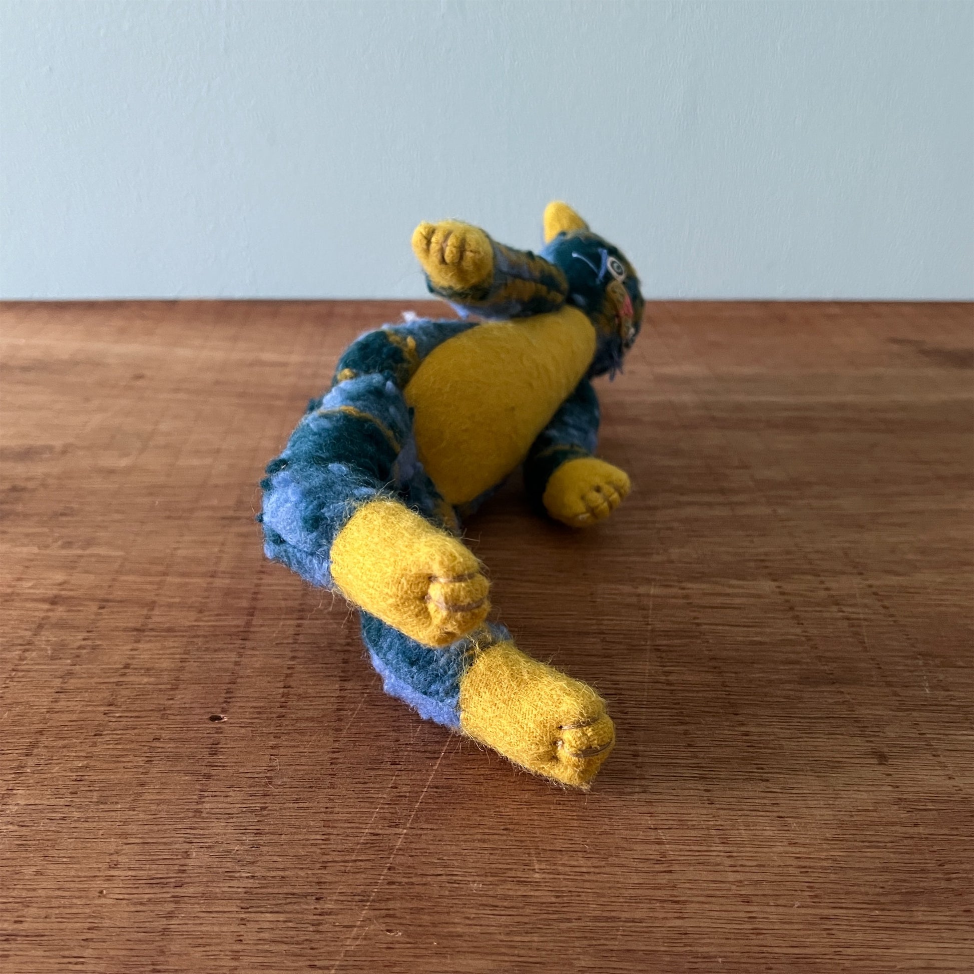 全て一点ものです。ヴィンテージの布地なども用いています。布地の組み合わせを考え、ぬいぐるみのボディを製作後、一つ一つ刺繍糸の配色にこだわって製作しております。