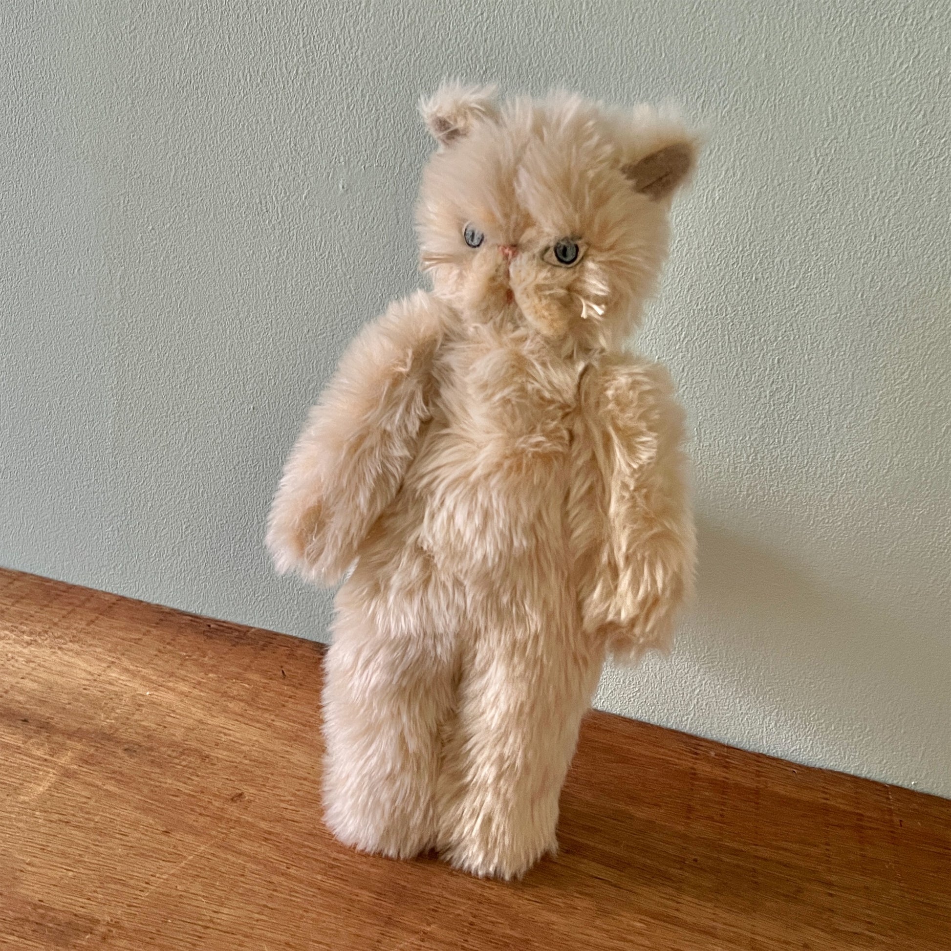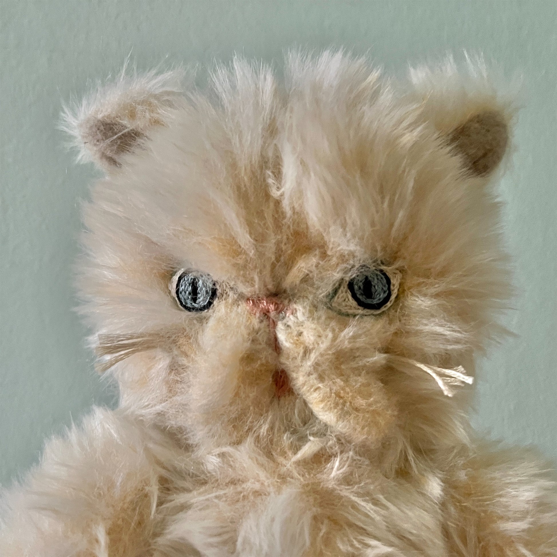 全て一点ものです。ヴィンテージの布地なども用いています。布地の組み合わせを考え、ぬいぐるみのボディを製作後、一つ一つ刺繍糸の配色にこだわって製作しております。