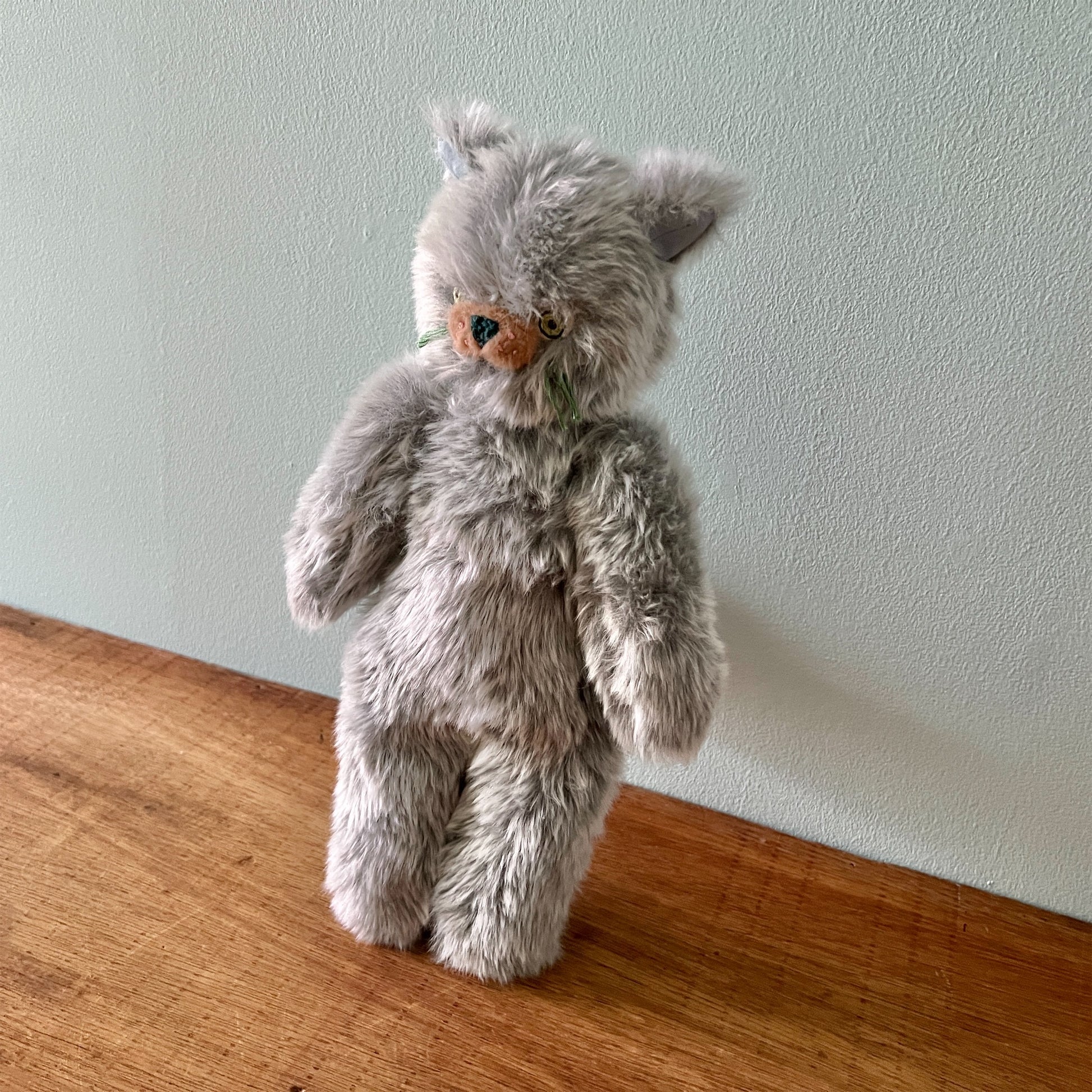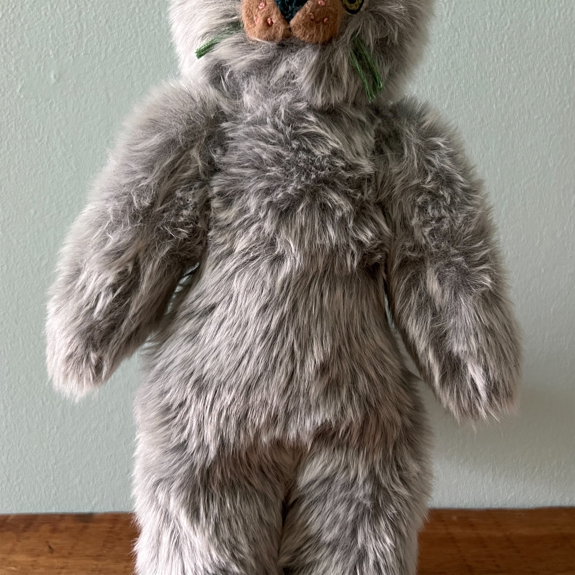 全て一点ものです。ヴィンテージの布地なども用いています。布地の組み合わせを考え、ぬいぐるみのボディを製作後、一つ一つ刺繍糸の配色にこだわって製作しております。