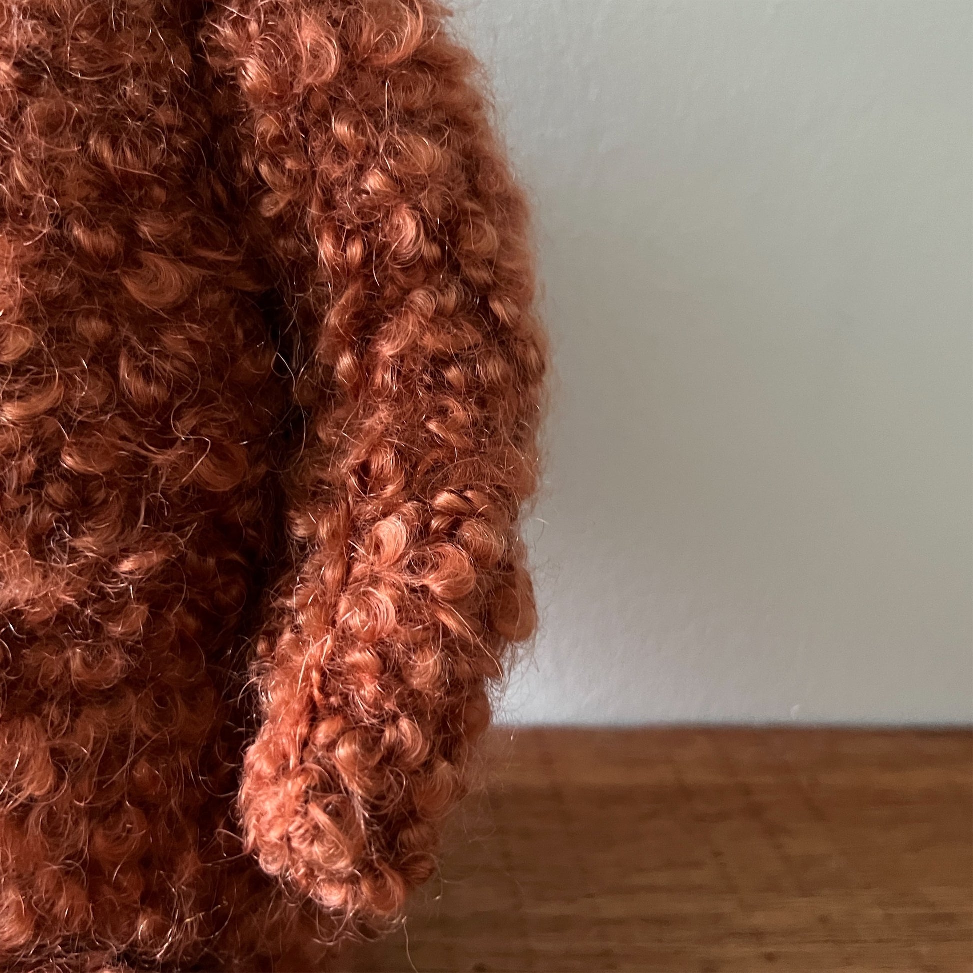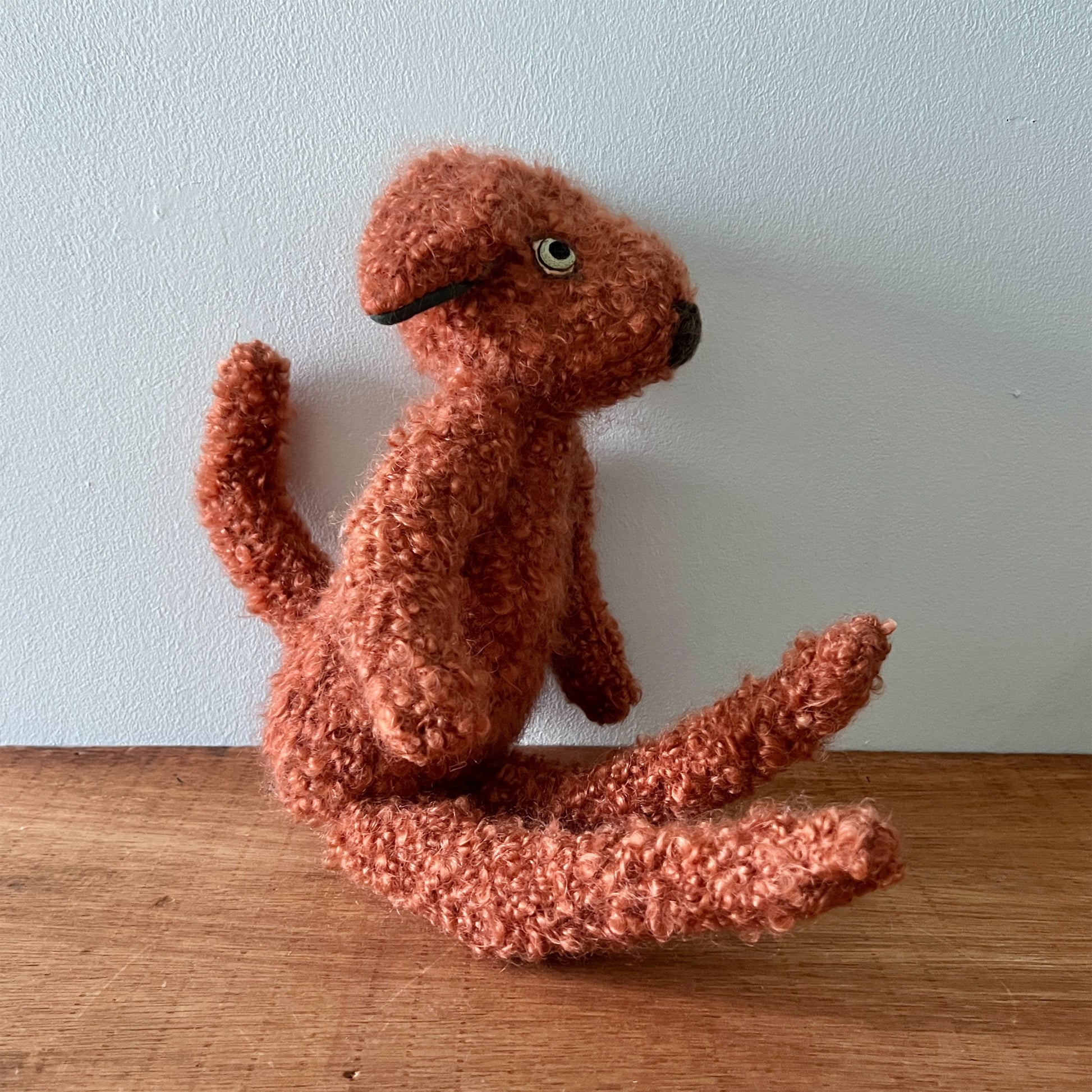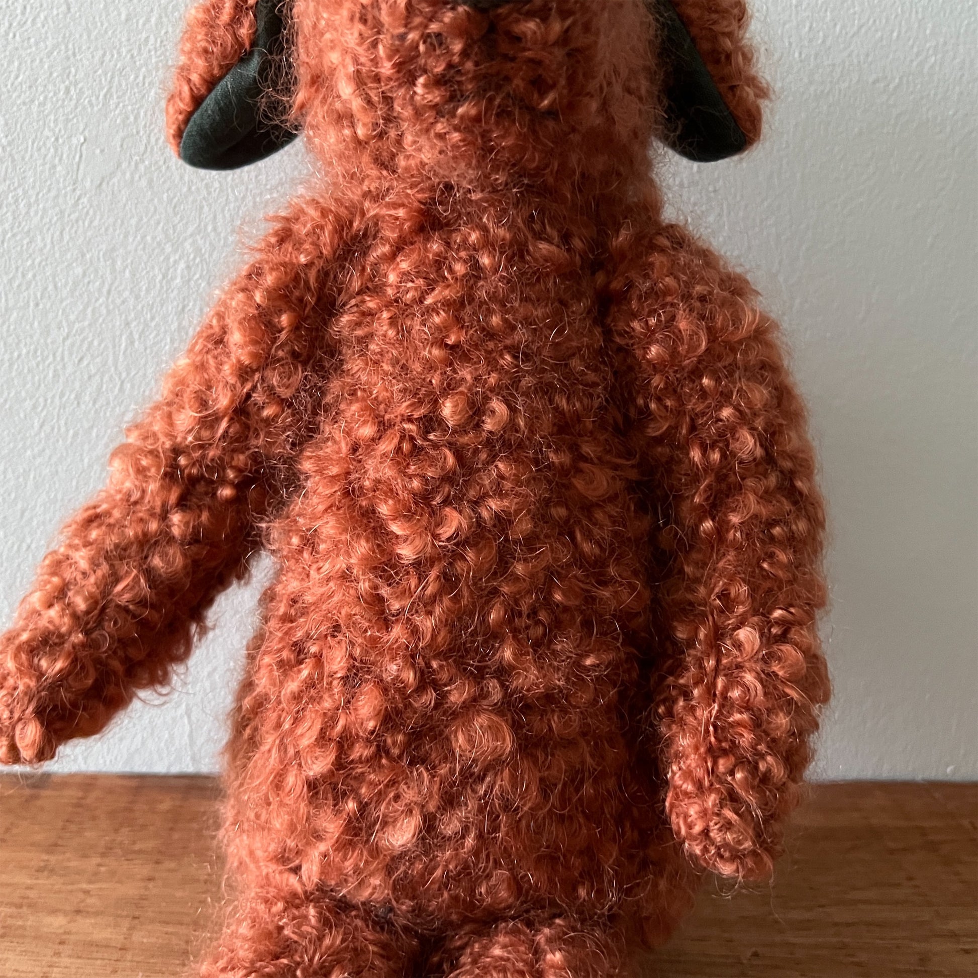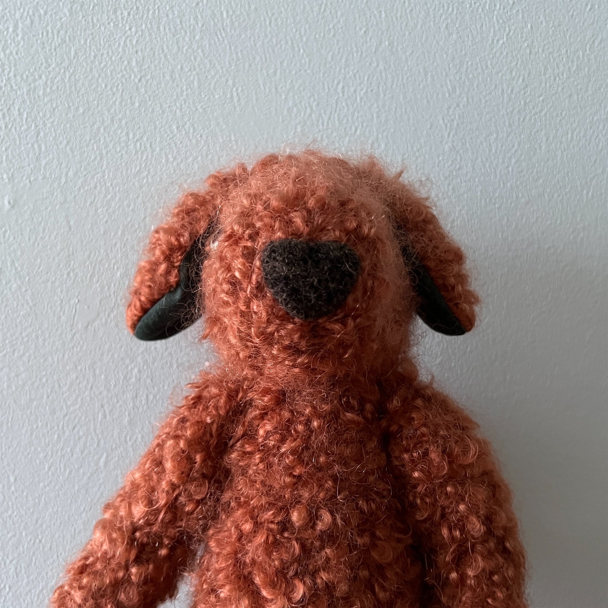 全て一点ものです。ヴィンテージの布地なども用いています。布地の組み合わせを考え、ぬいぐるみのボディを製作後、一つ一つ刺繍糸の配色にこだわって製作しております。