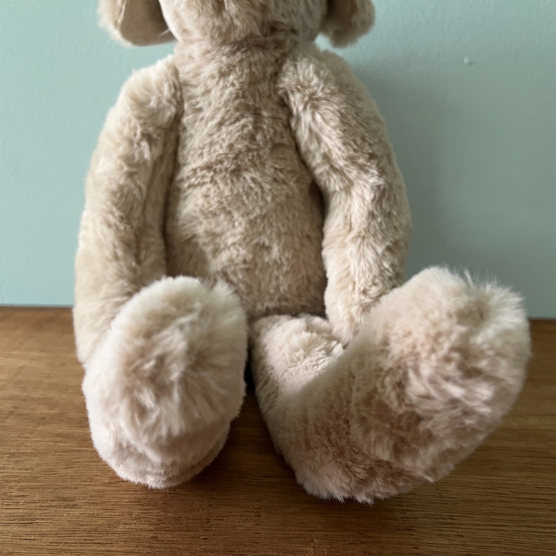 取扱注意事項:抱っこする、一緒に寝るくらいは大丈夫ですが、腕を持ってぶんぶん振り回すなどはお控えください。汚れた場合は、固く絞ったタオルで叩くように拭き取ってください。