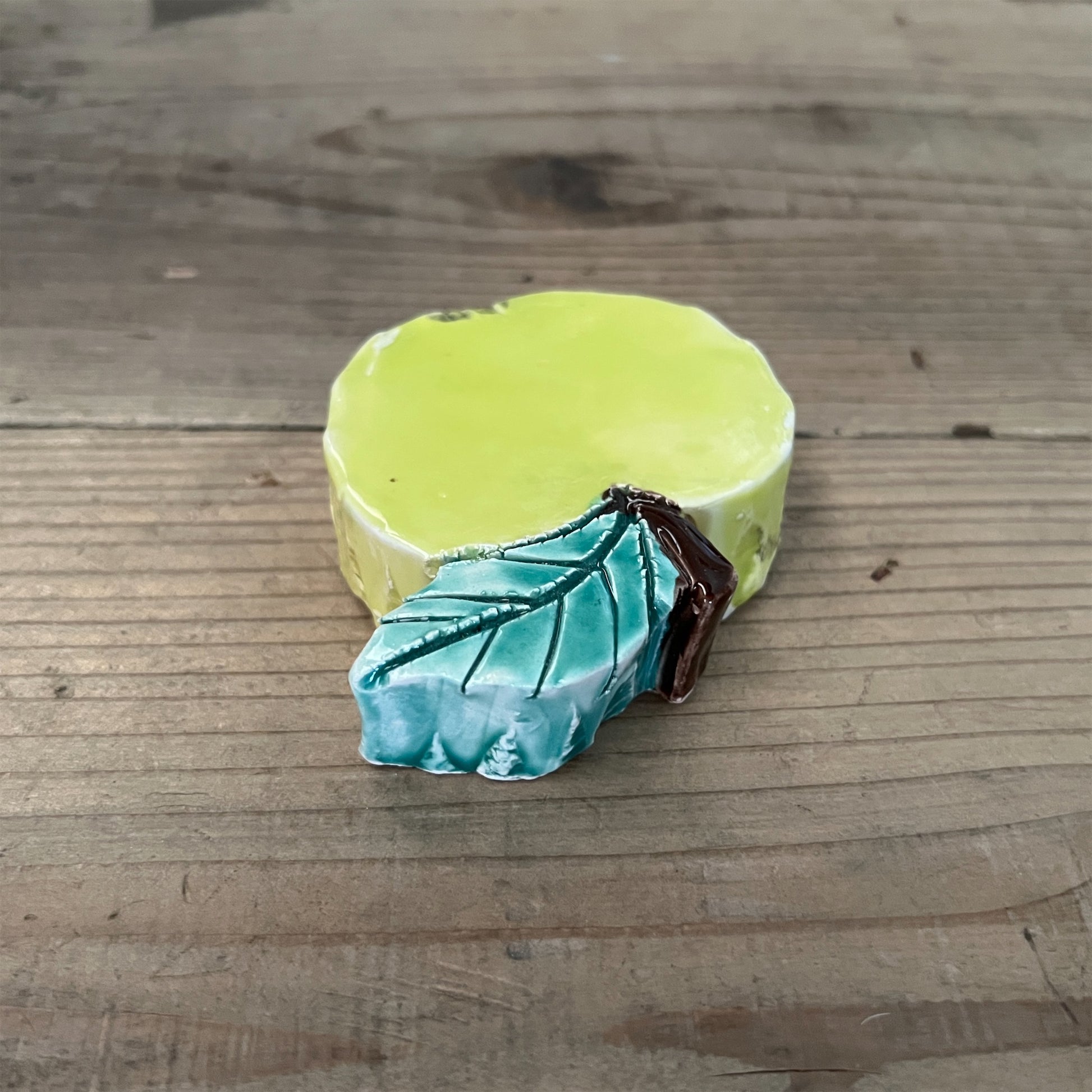 光沢があり、色鮮やかなハンドメイドの陶製のオブジェ。裏面に穴が開いており、壁に掛けたり、テーブルデコレーションとして、暮らしに彩りを添えてくれます。