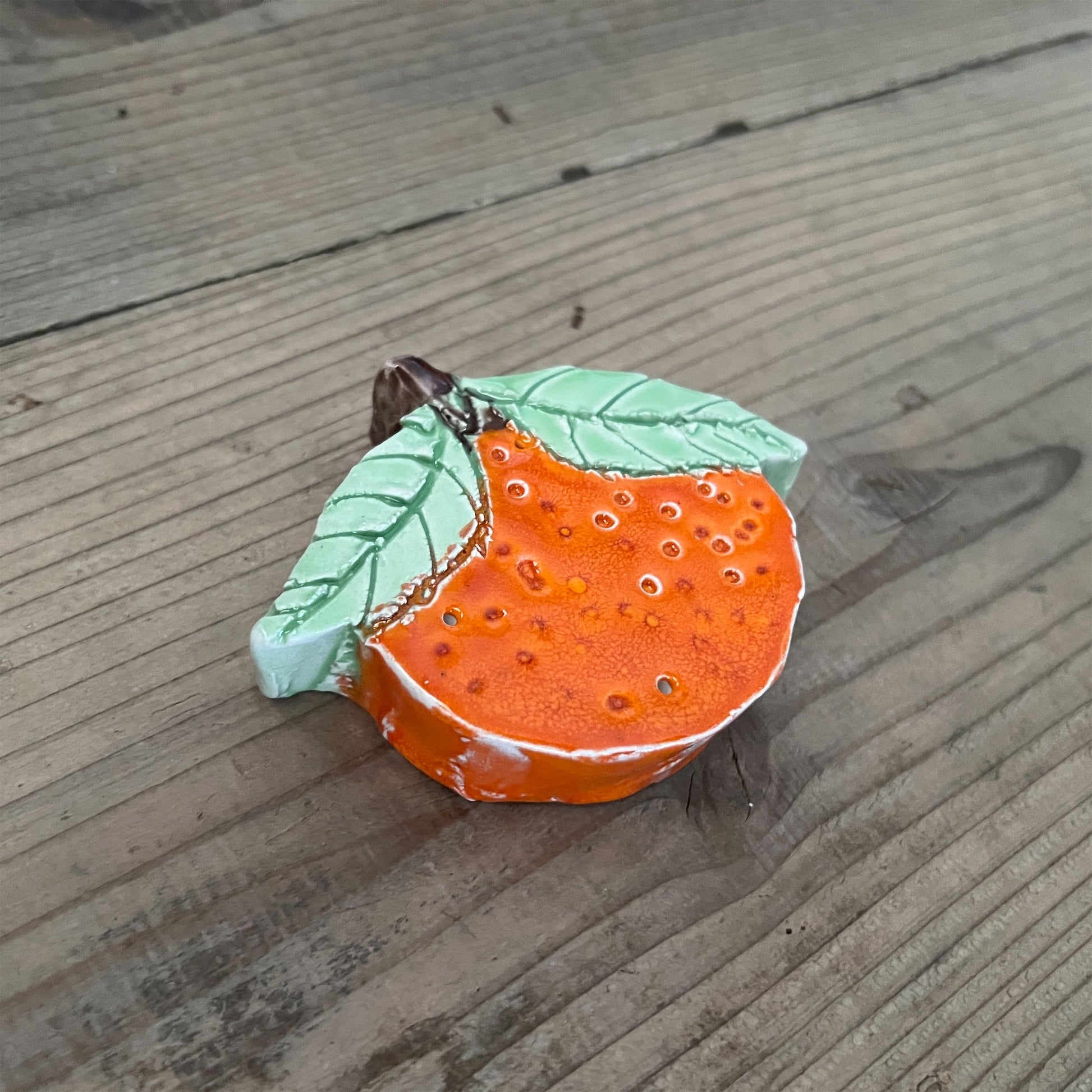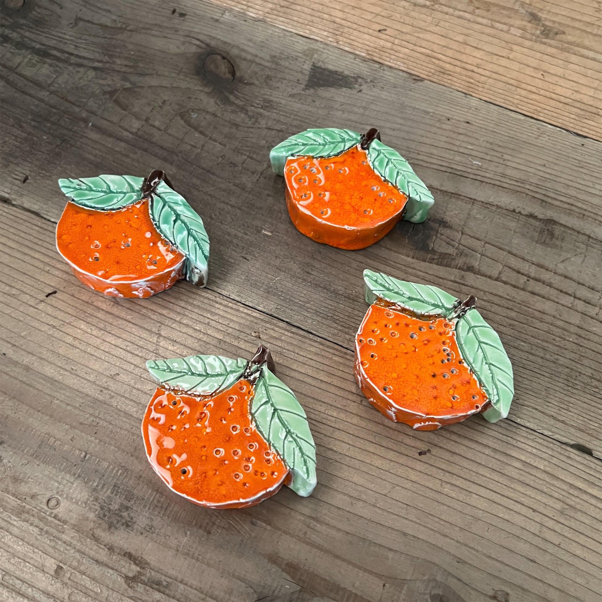 光沢があり、色鮮やかなハンドメイドの陶製のオブジェ。裏面に穴が開いており、壁に掛けたり、テーブルデコレーションとして、暮らしに彩りを添えてくれます。