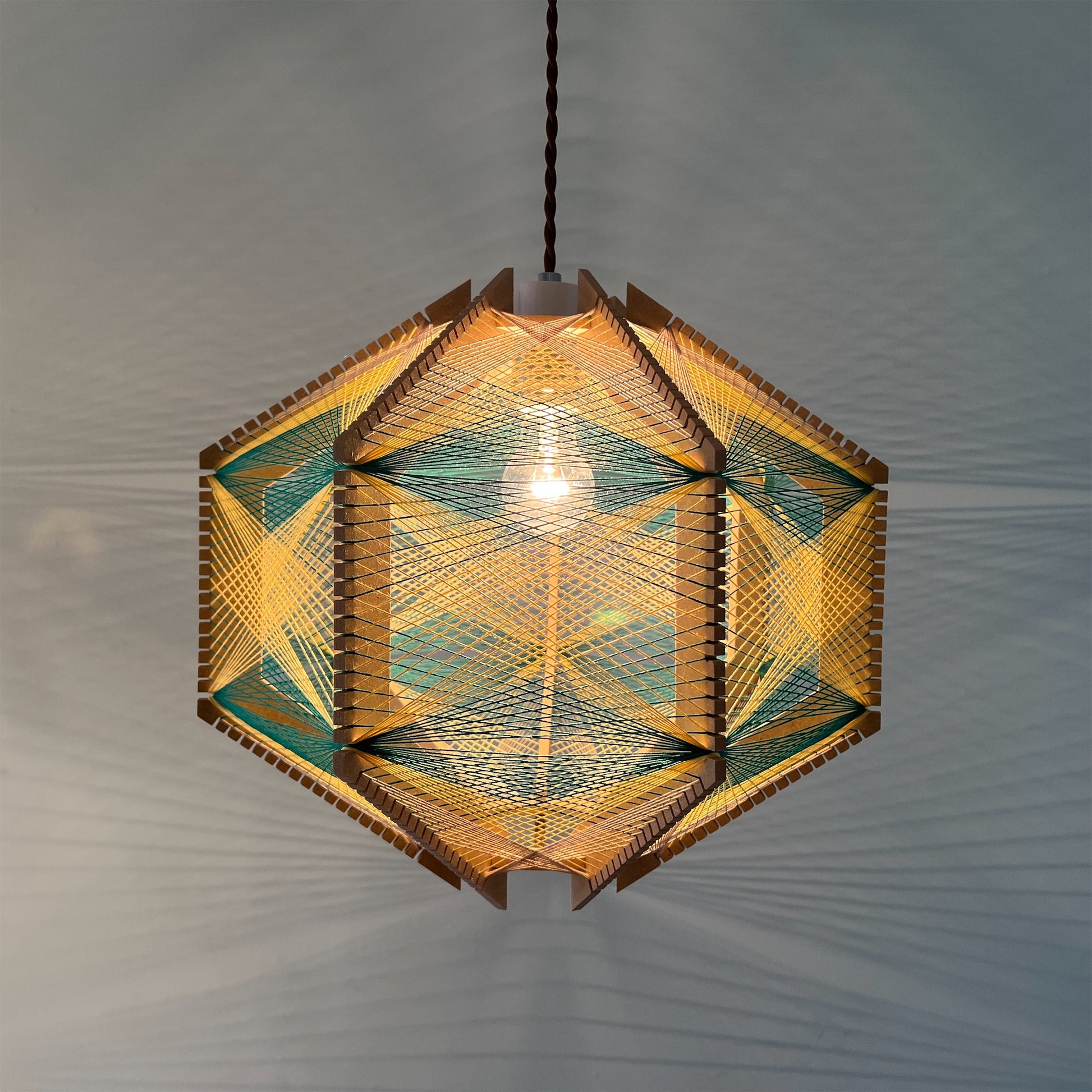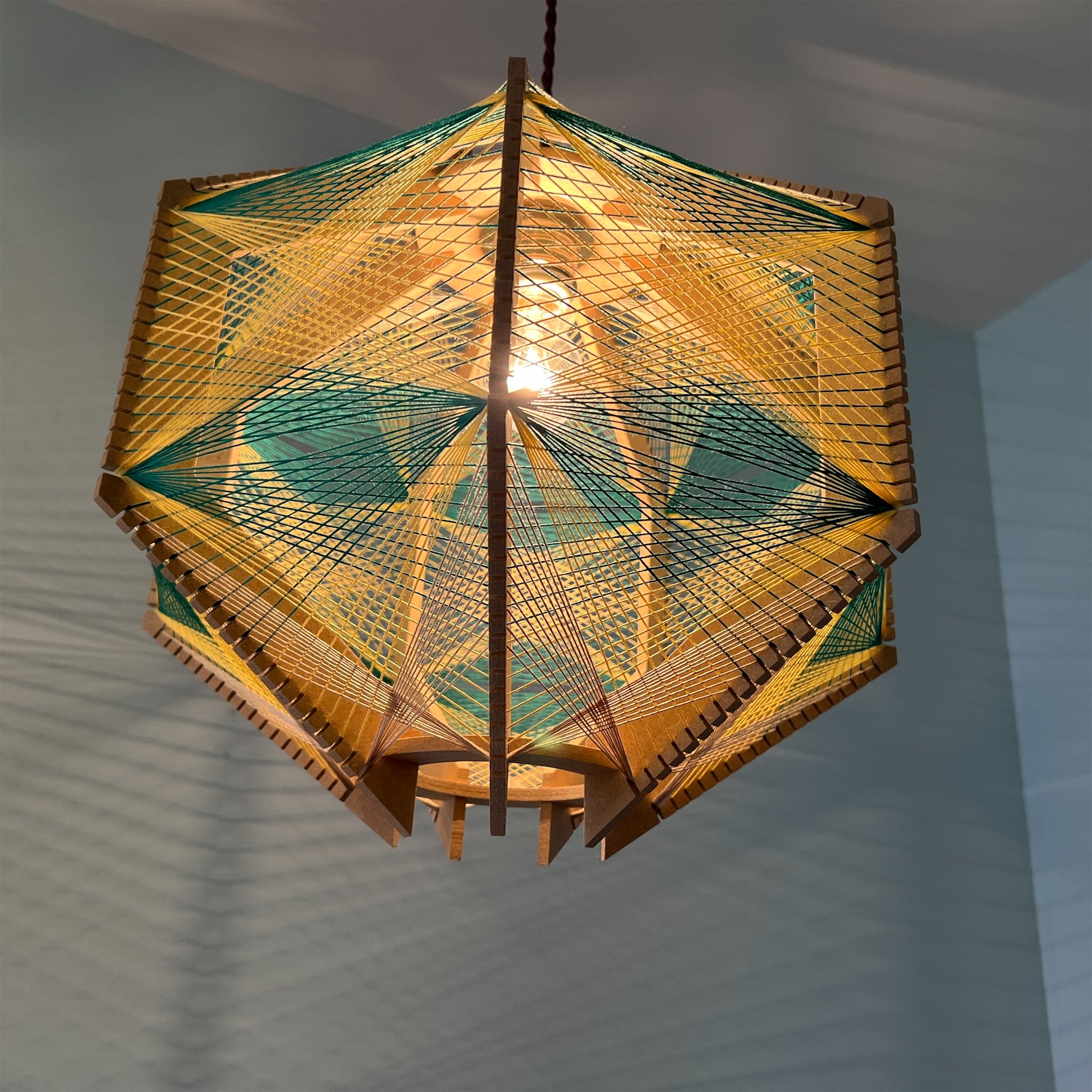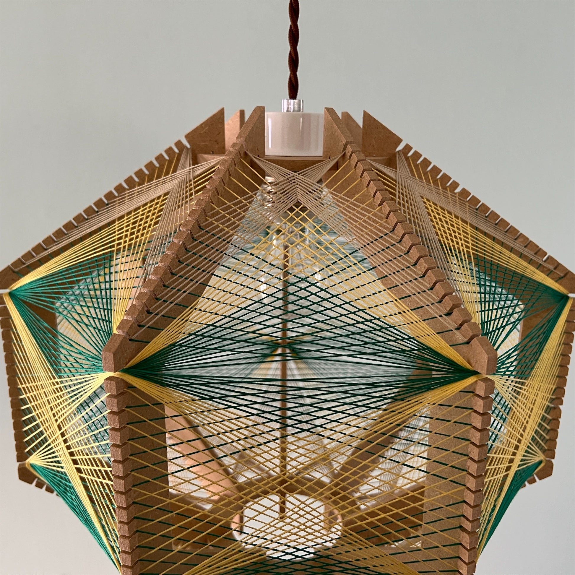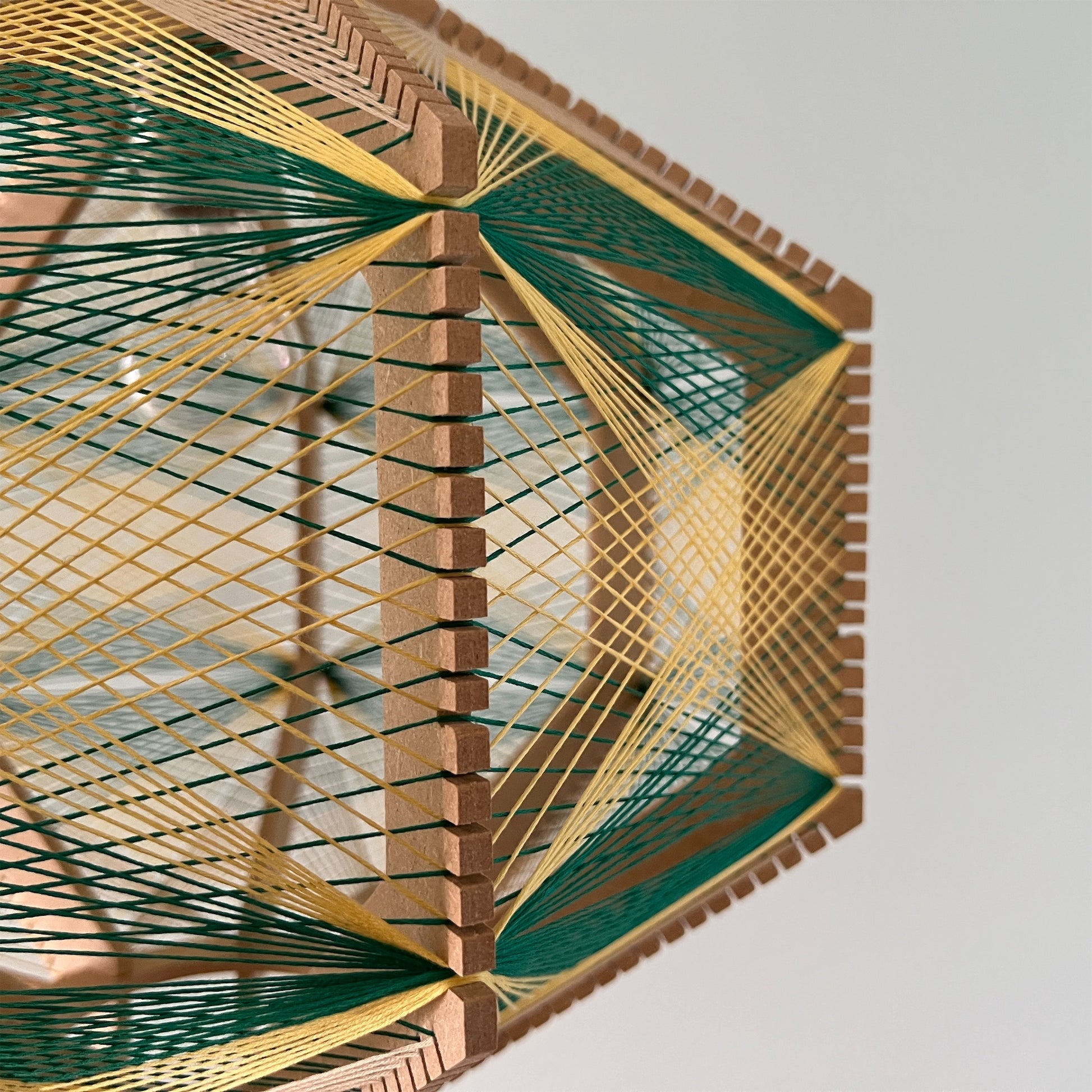 糸の交差が織りなす色彩のグラデーション、糸から溢れる光と影が空間を演出してくれる照明です。