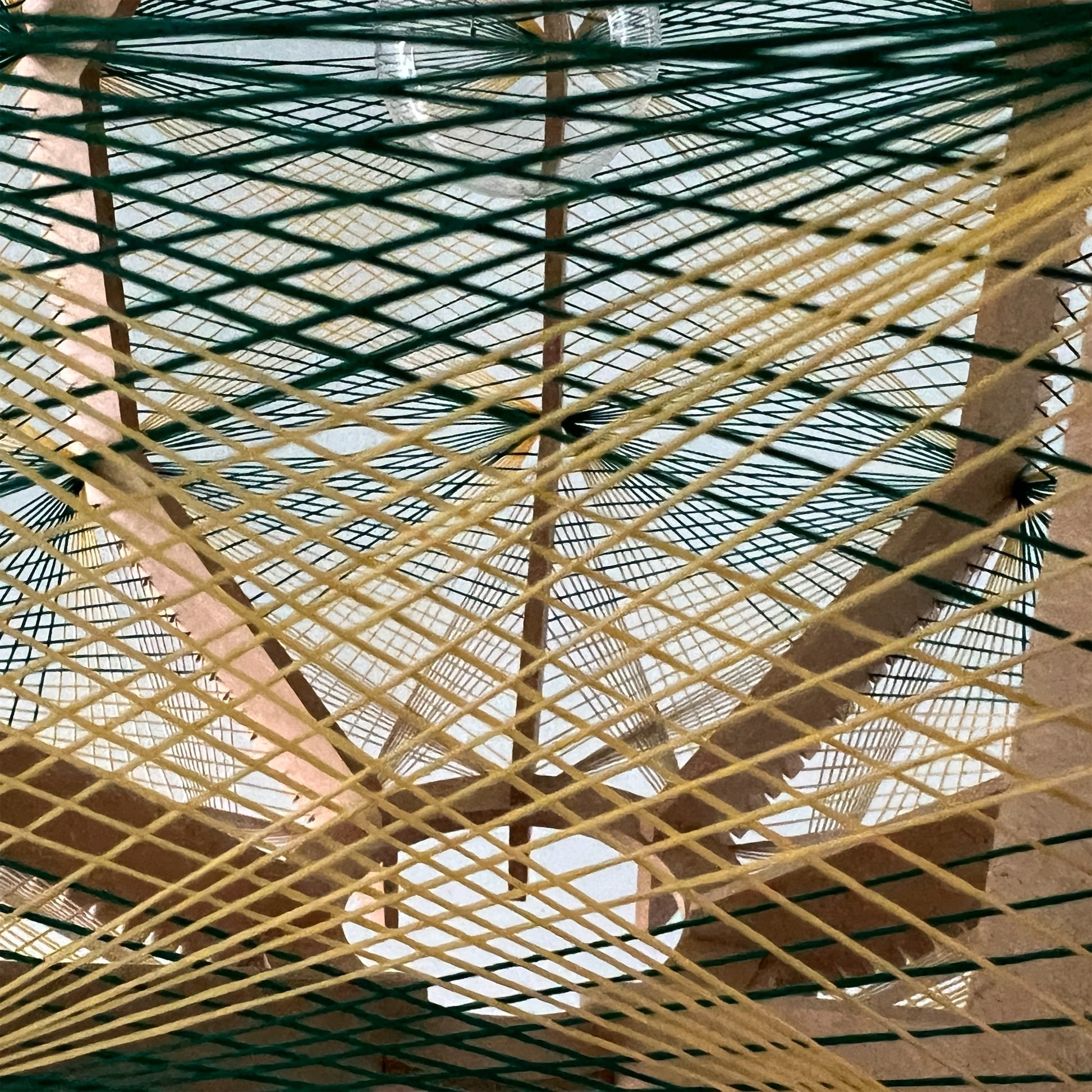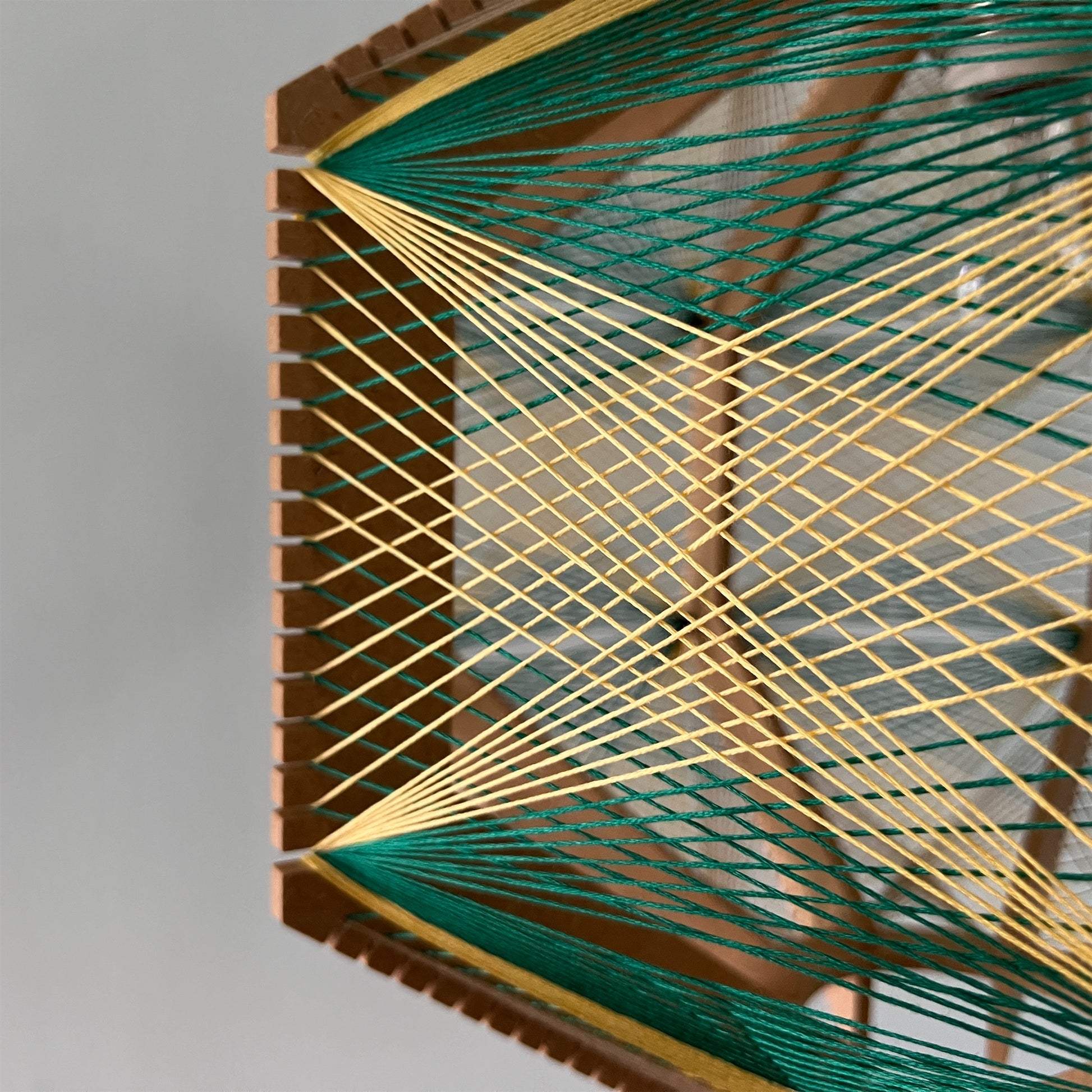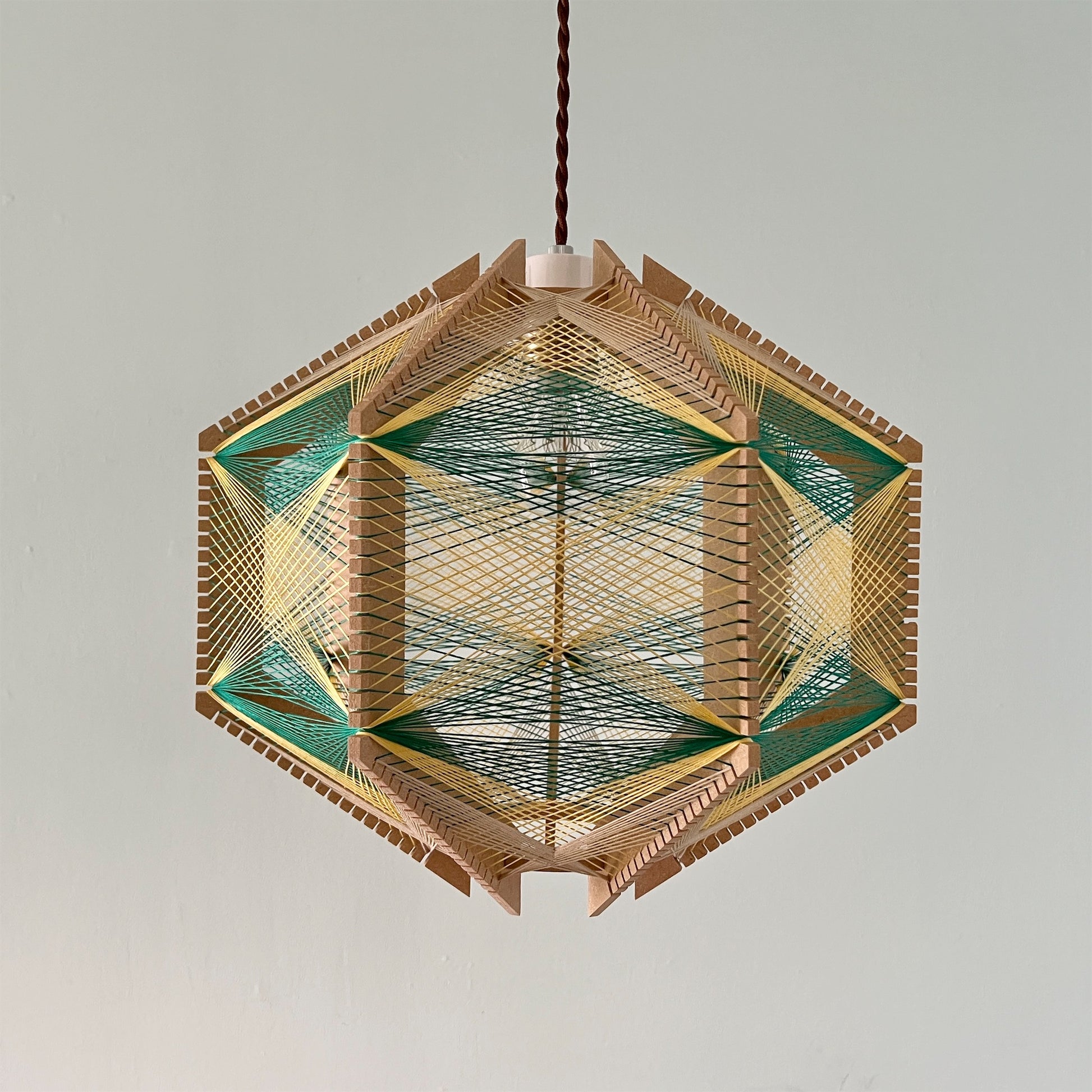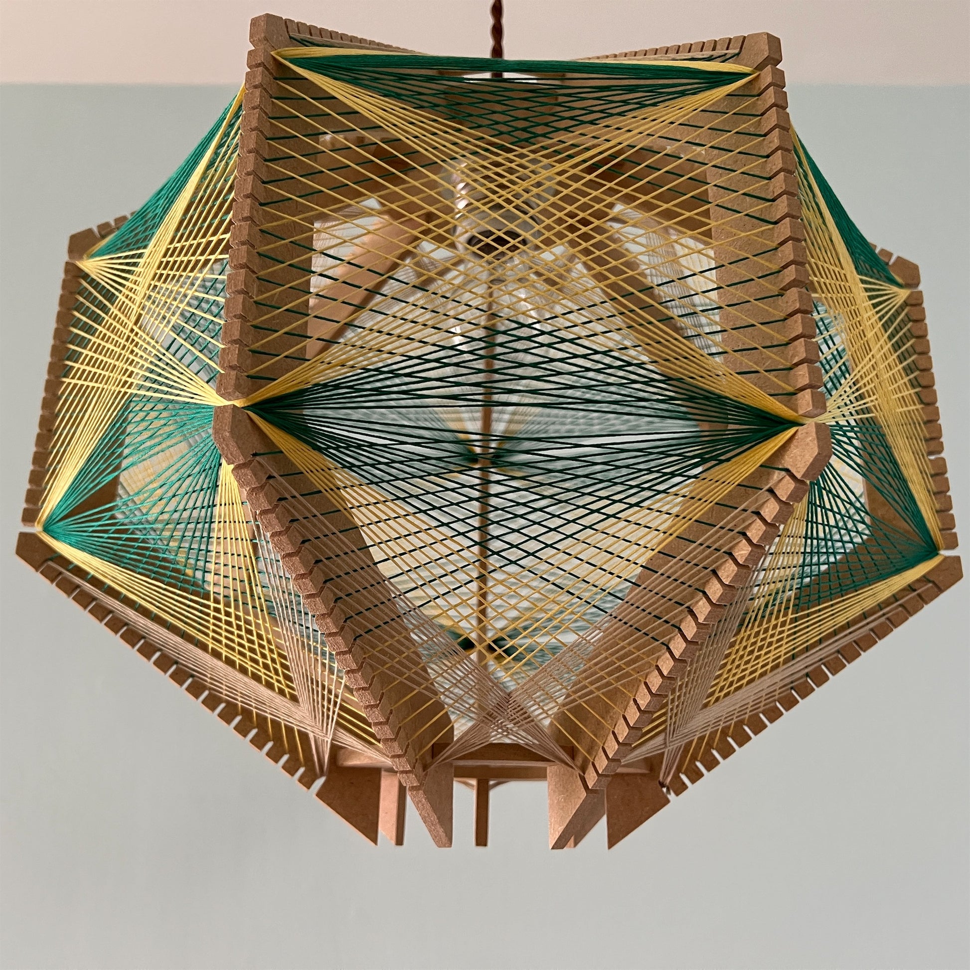 糸の交差が織りなす色彩のグラデーション、糸から溢れる光と影が空間を演出してくれる照明です。