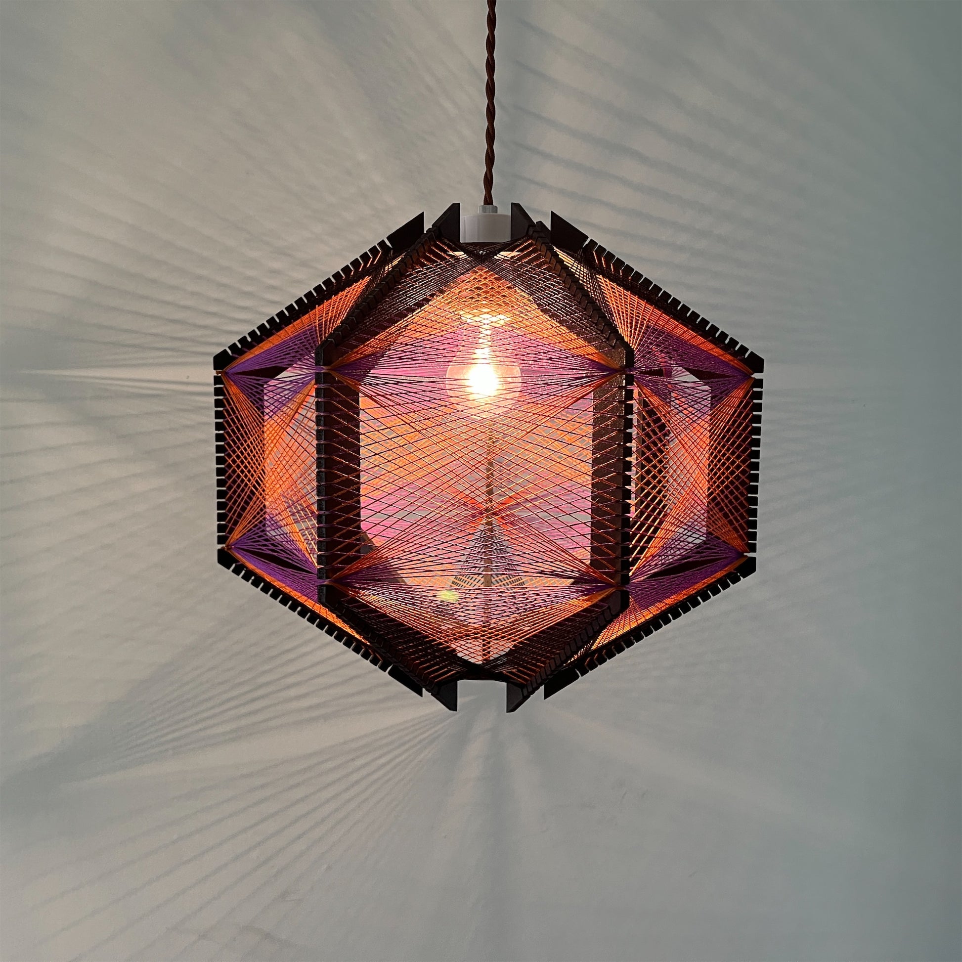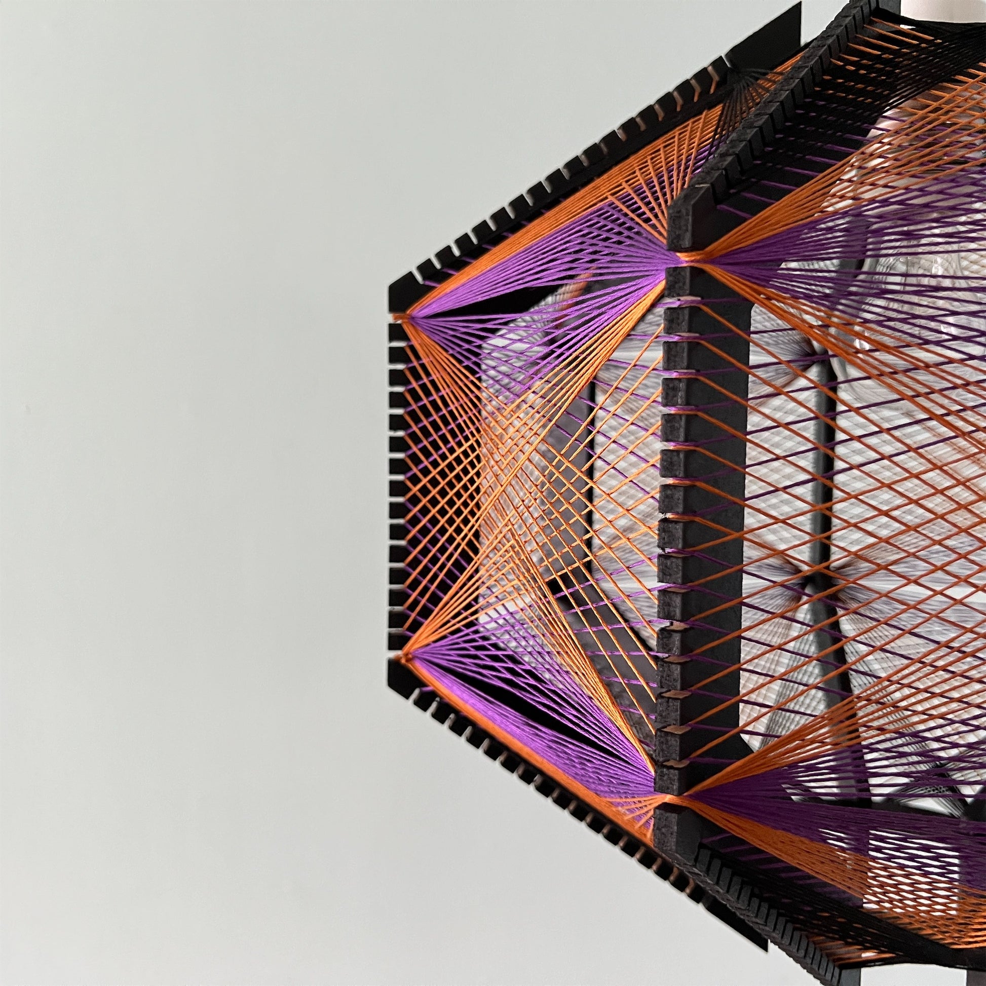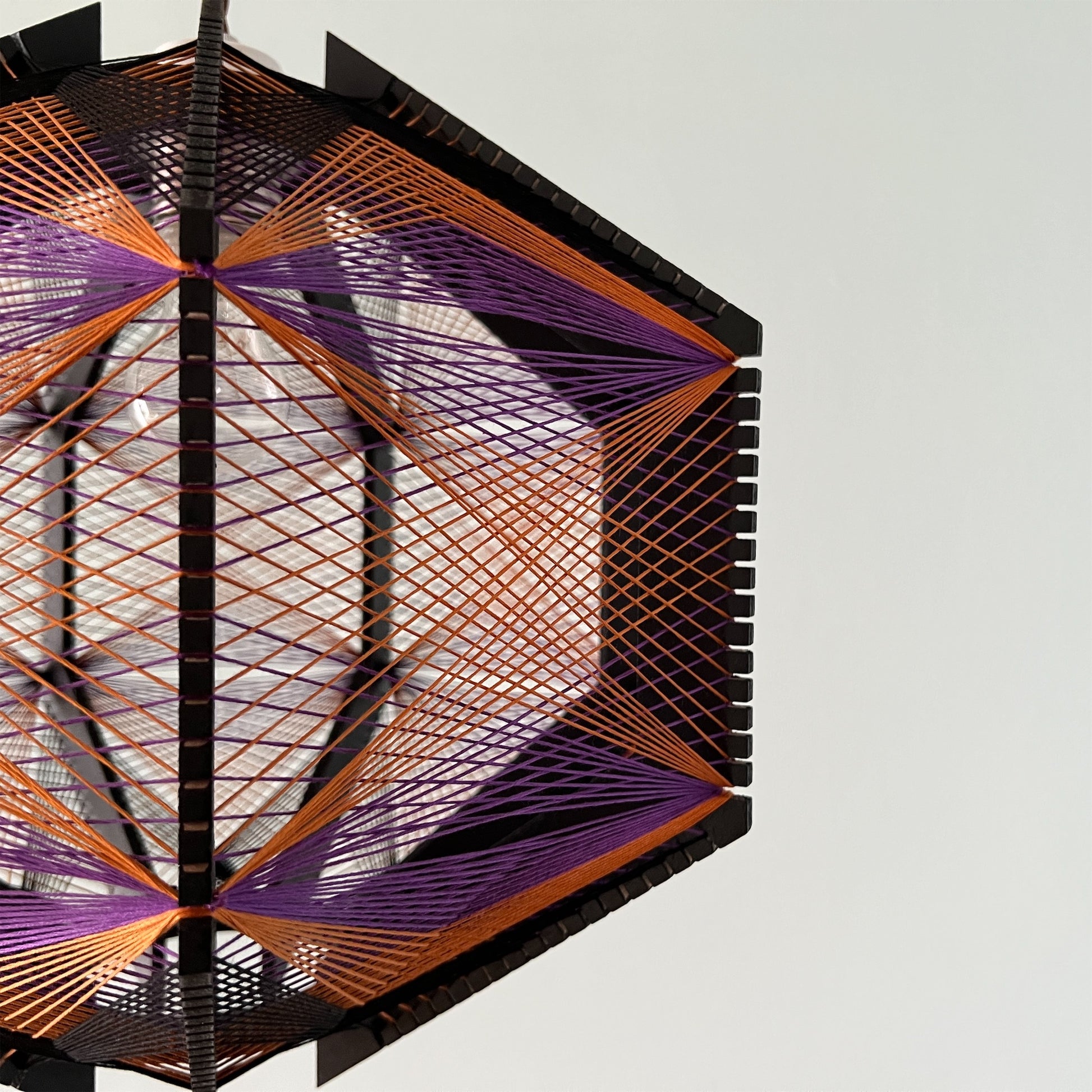 糸の交差が織りなす色彩のグラデーション、糸から溢れる光と影が空間を演出してくれる照明です。