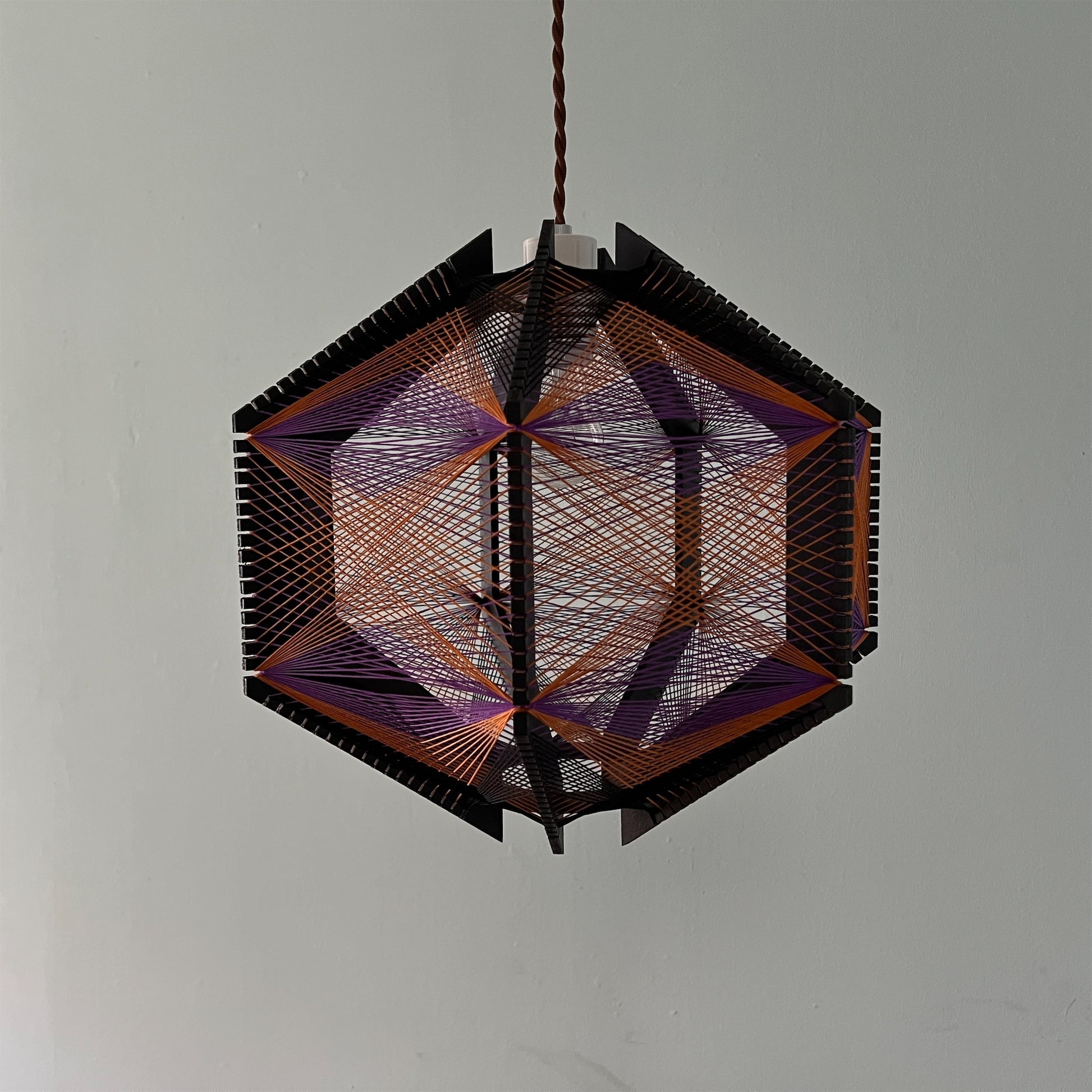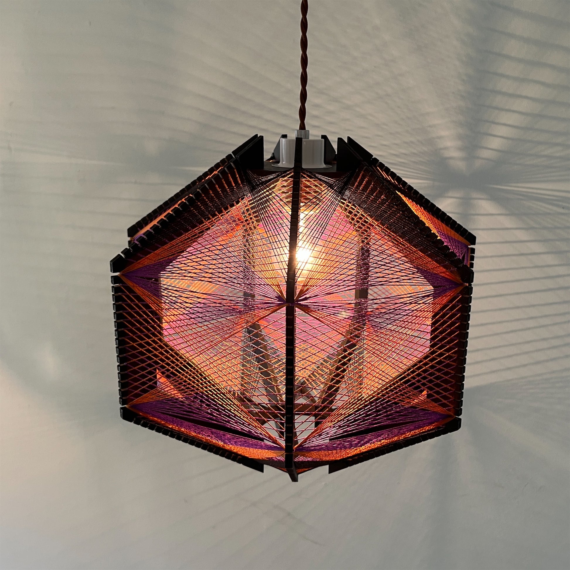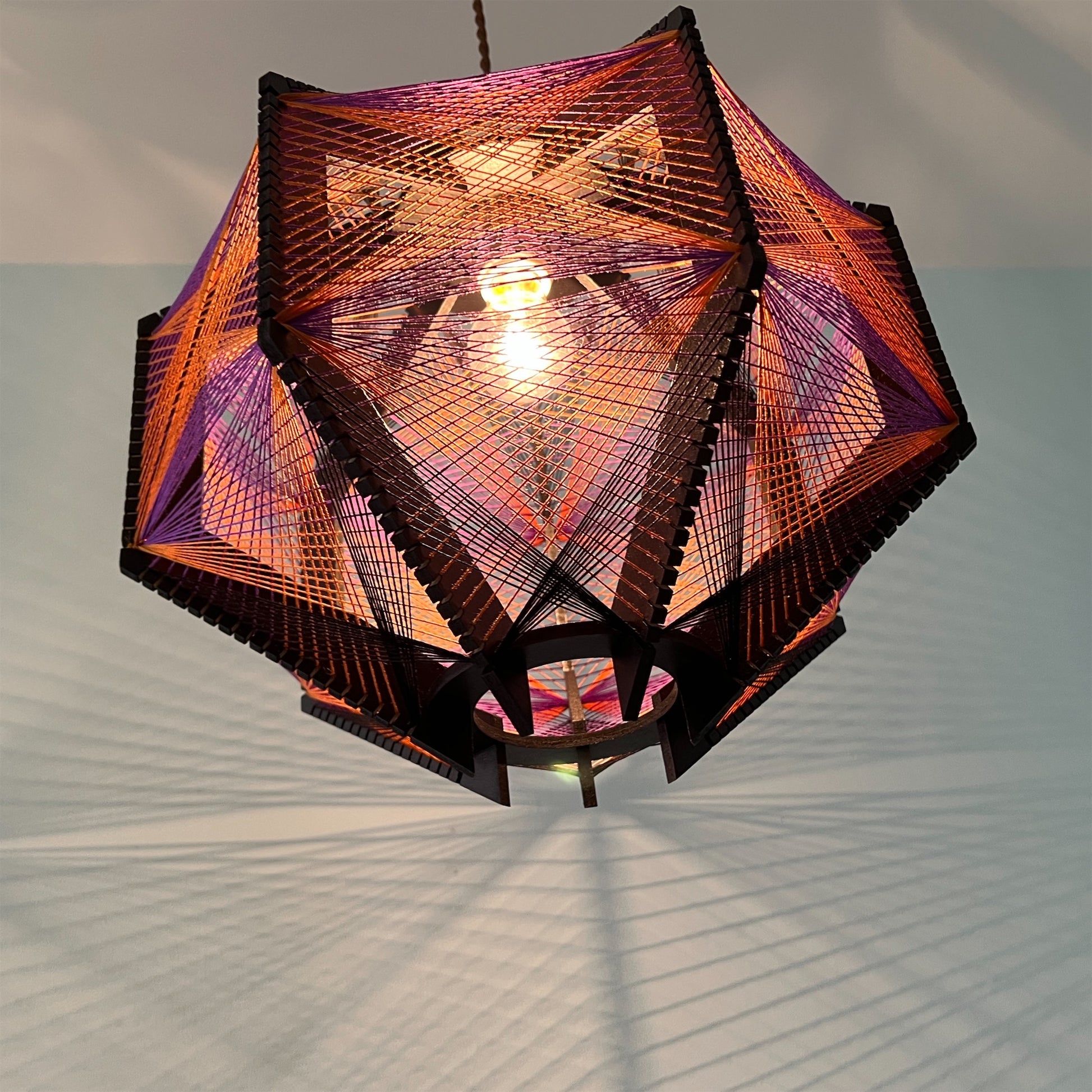 糸の交差が織りなす色彩のグラデーション、糸から溢れる光と影が空間を演出してくれる照明です。