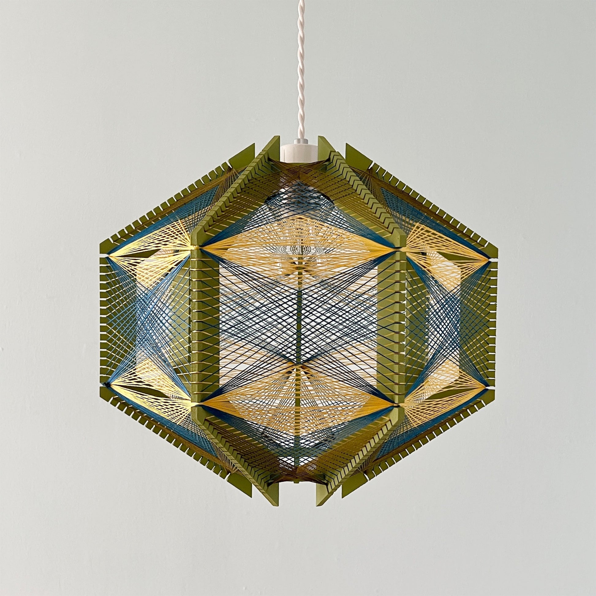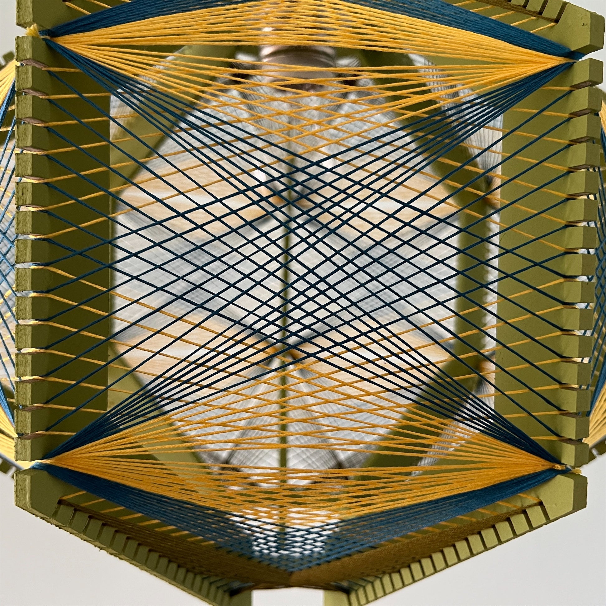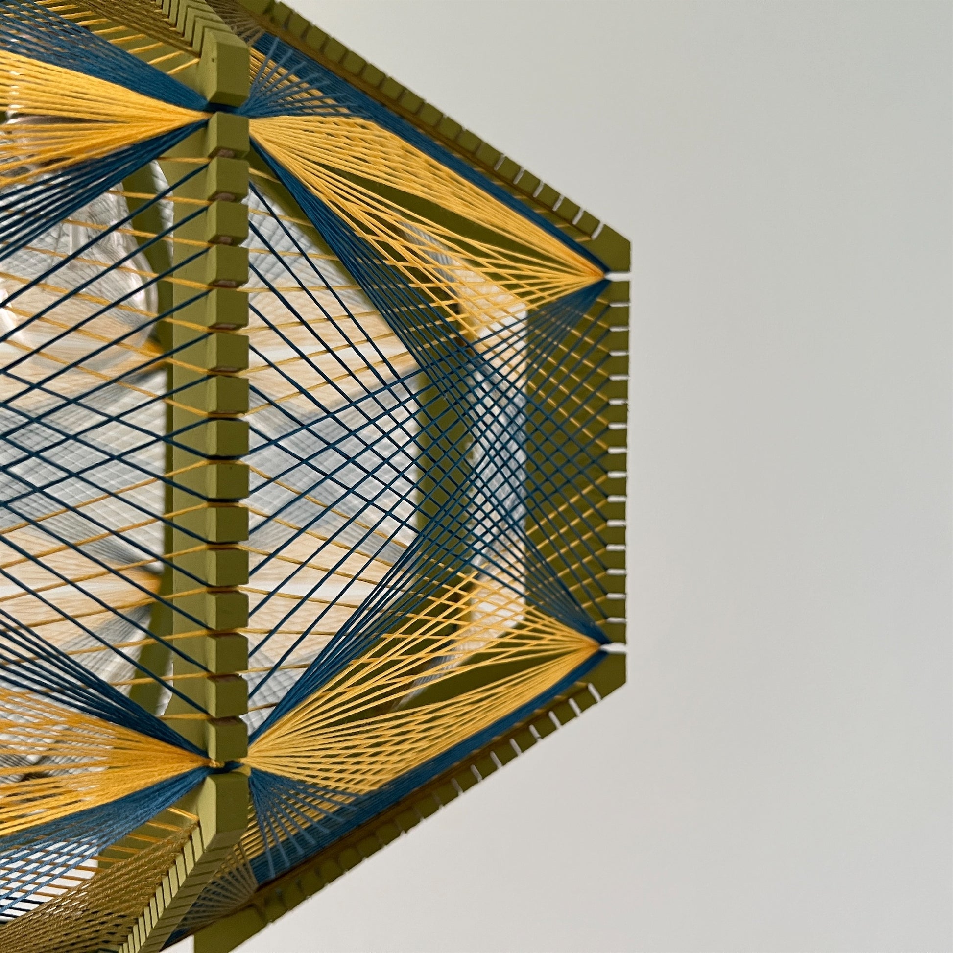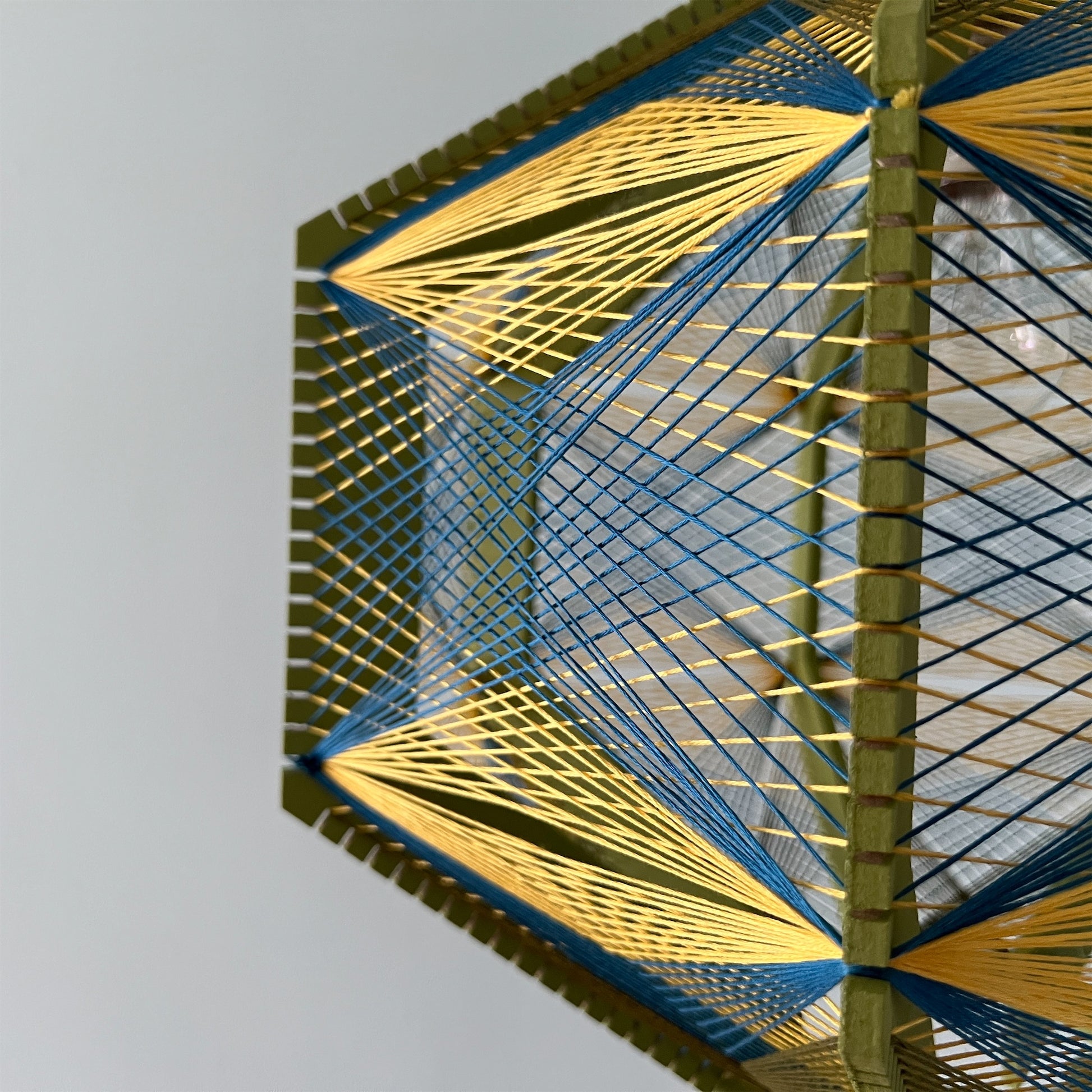 糸の交差が織りなす色彩のグラデーション、糸から溢れる光と影が空間を演出してくれる照明です。