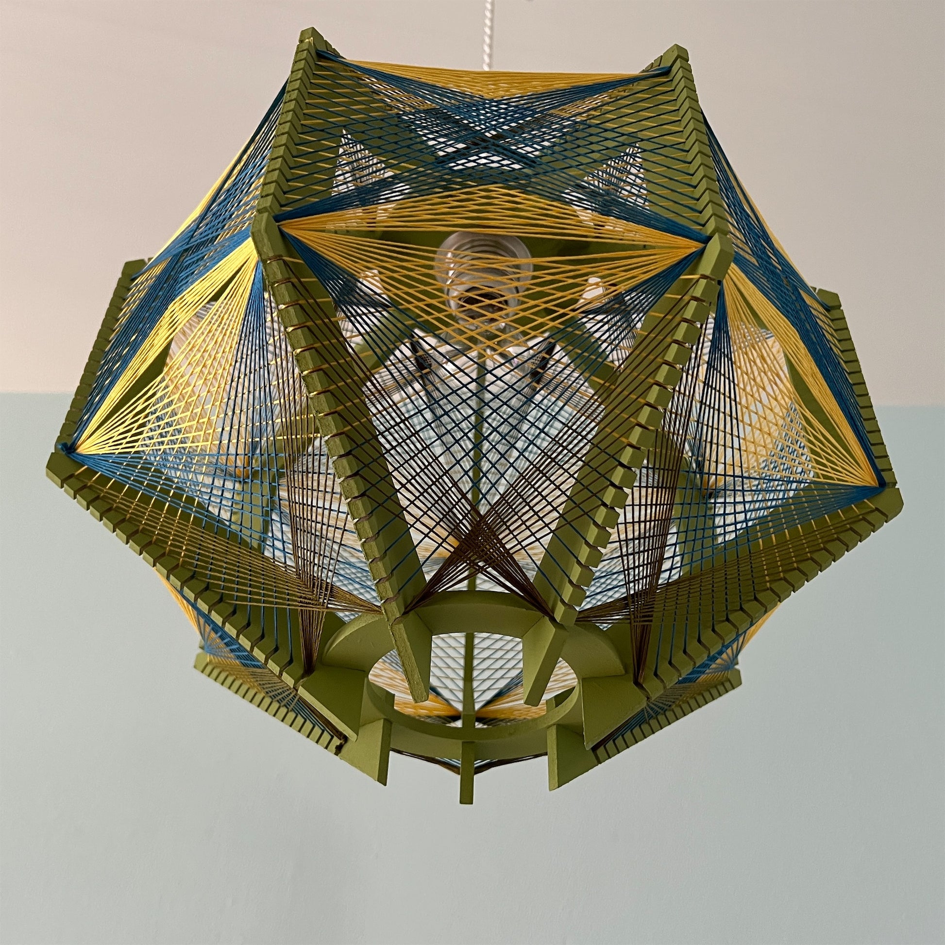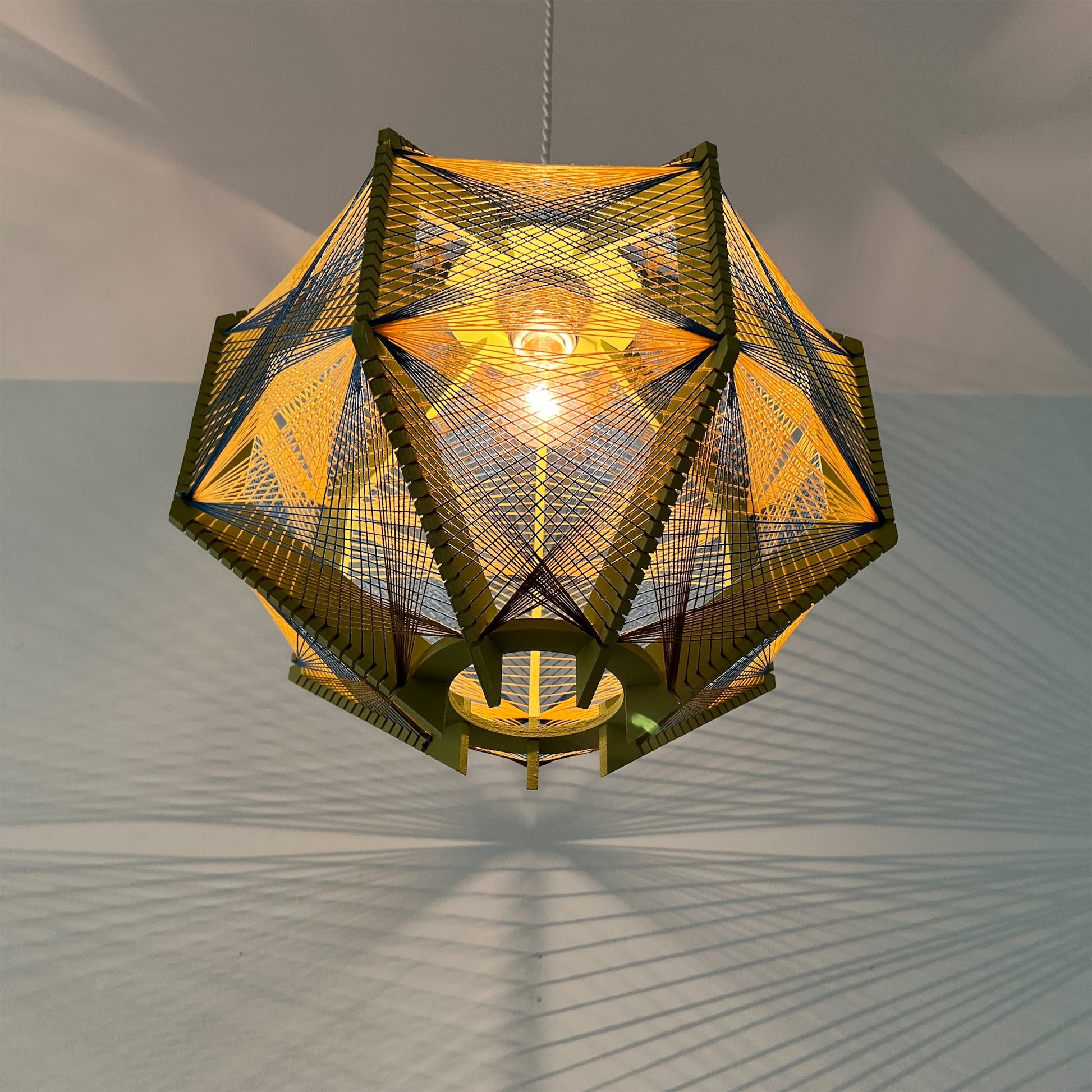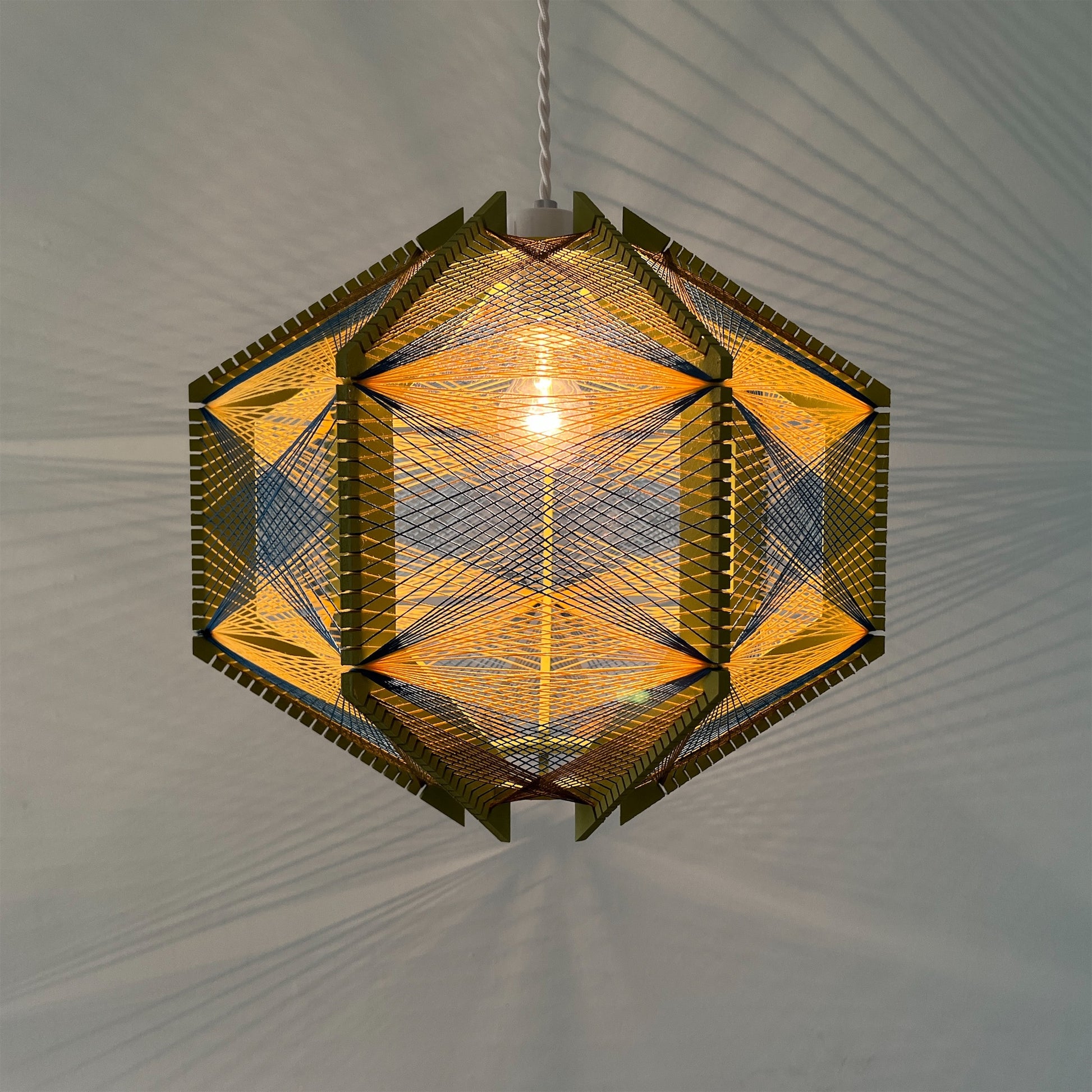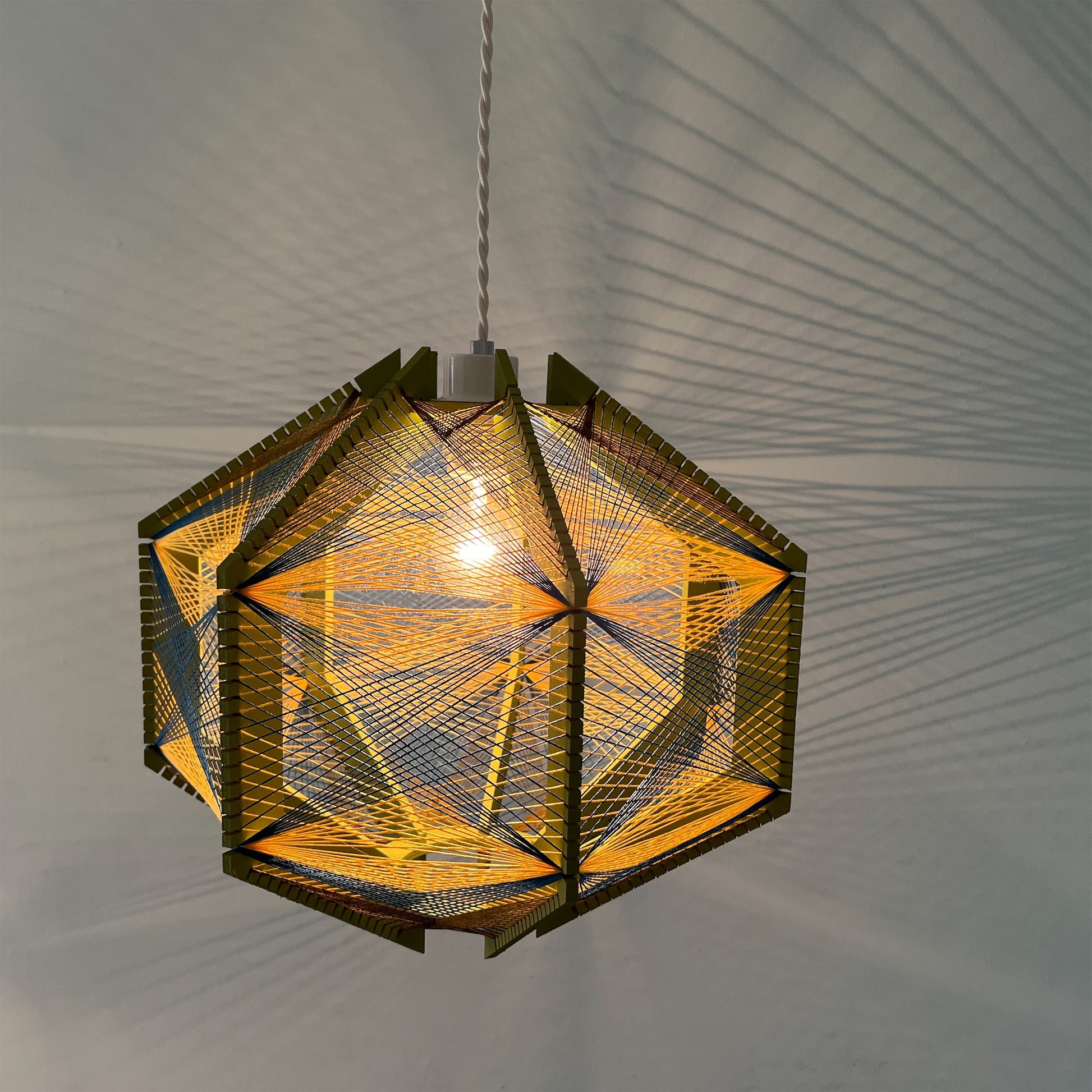 糸の交差が織りなす色彩のグラデーション、糸から溢れる光と影が空間を演出してくれる照明です。
