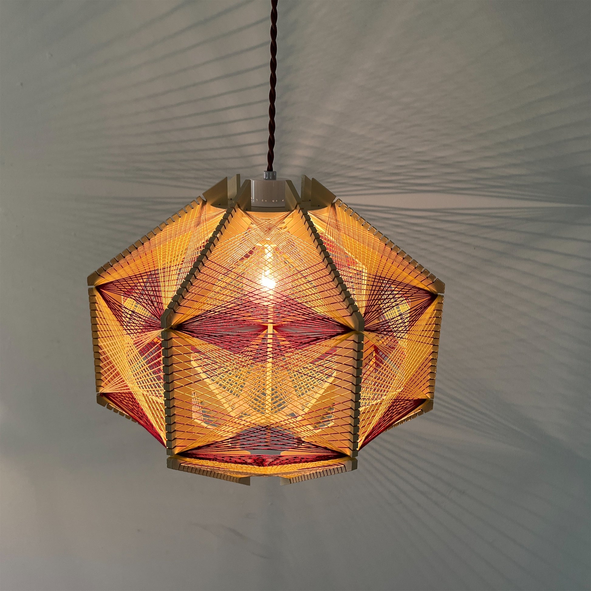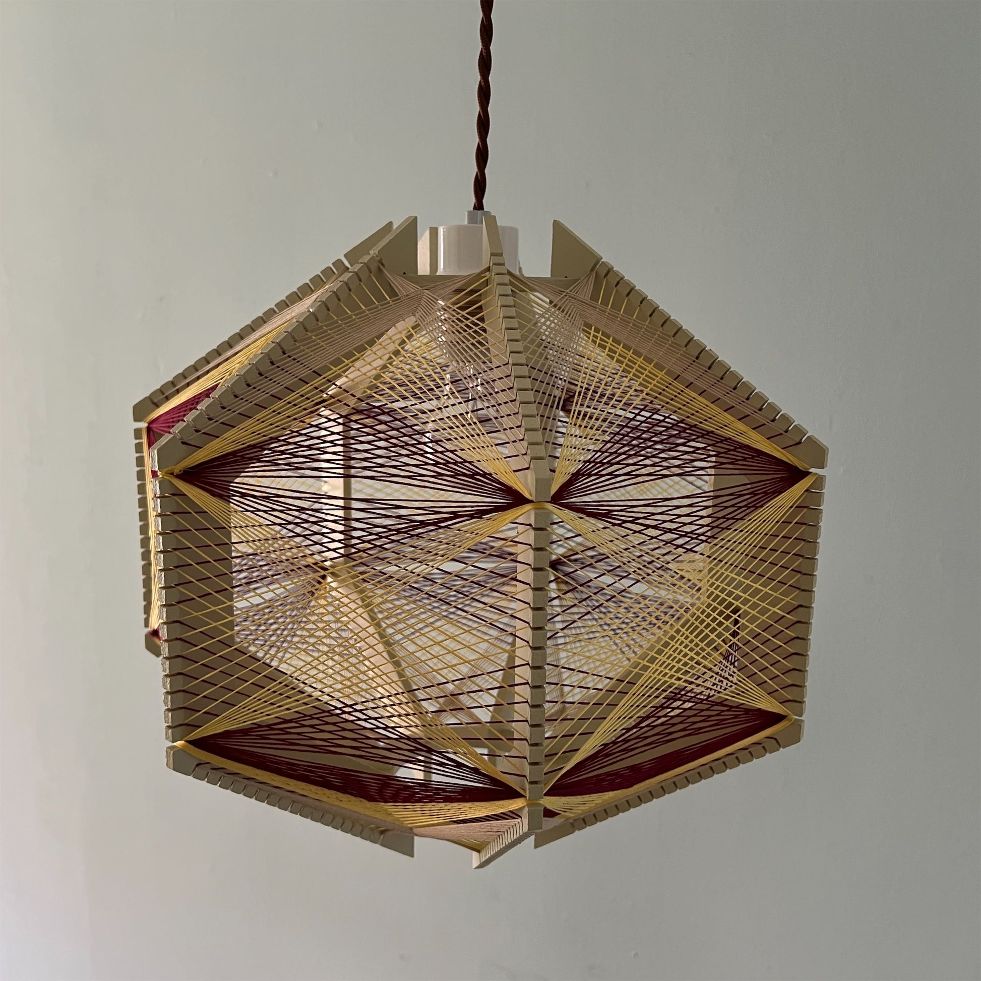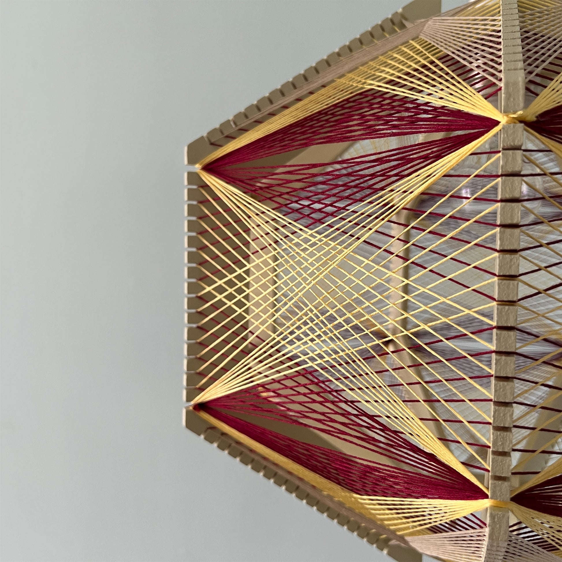 糸の交差が織りなす色彩のグラデーション、糸から溢れる光と影が空間を演出してくれる照明です。
