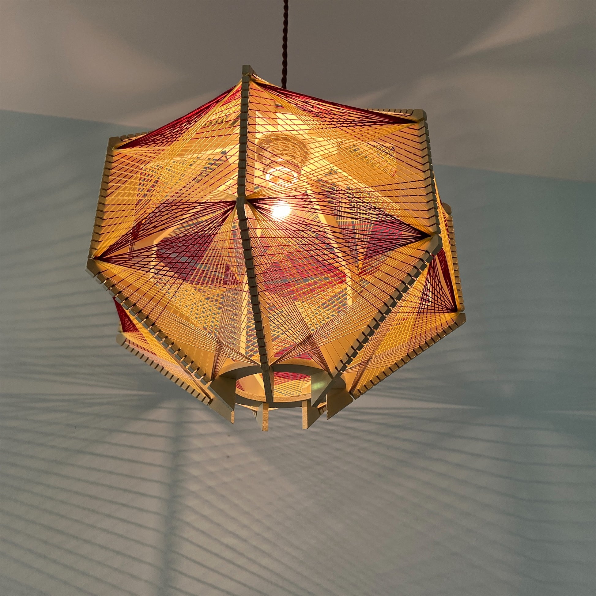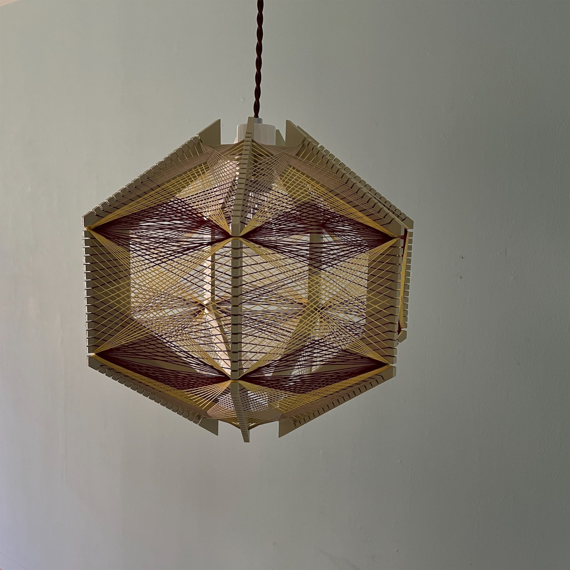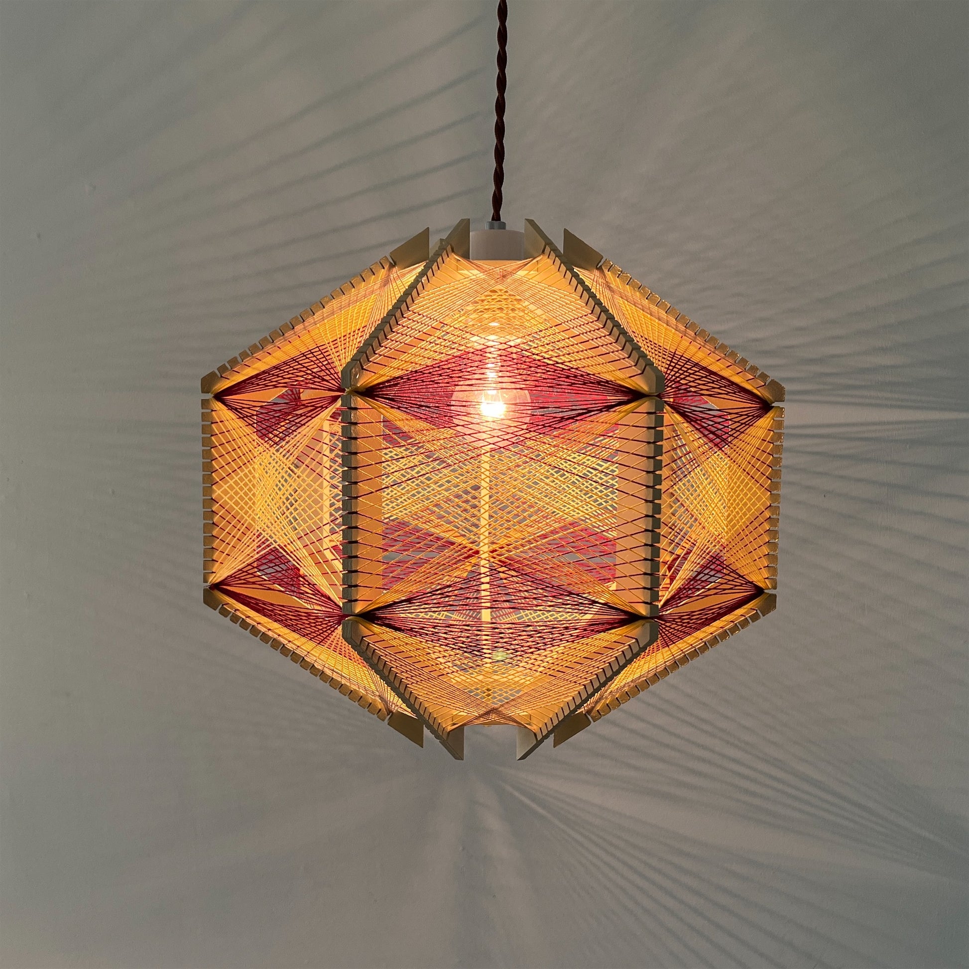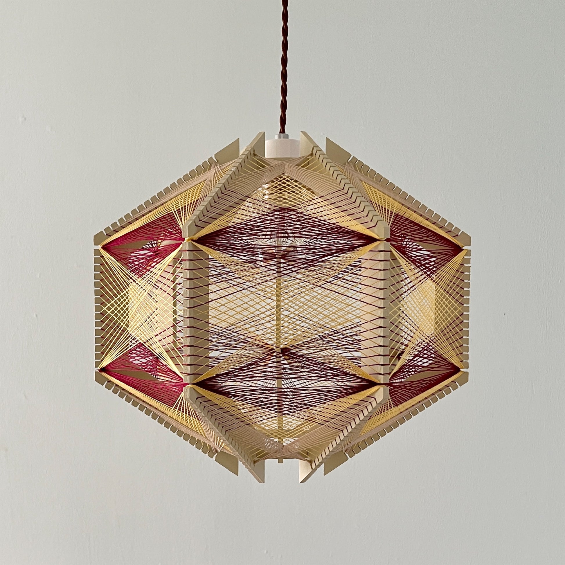 糸の交差が織りなす色彩のグラデーション、糸から溢れる光と影が空間を演出してくれる照明です。