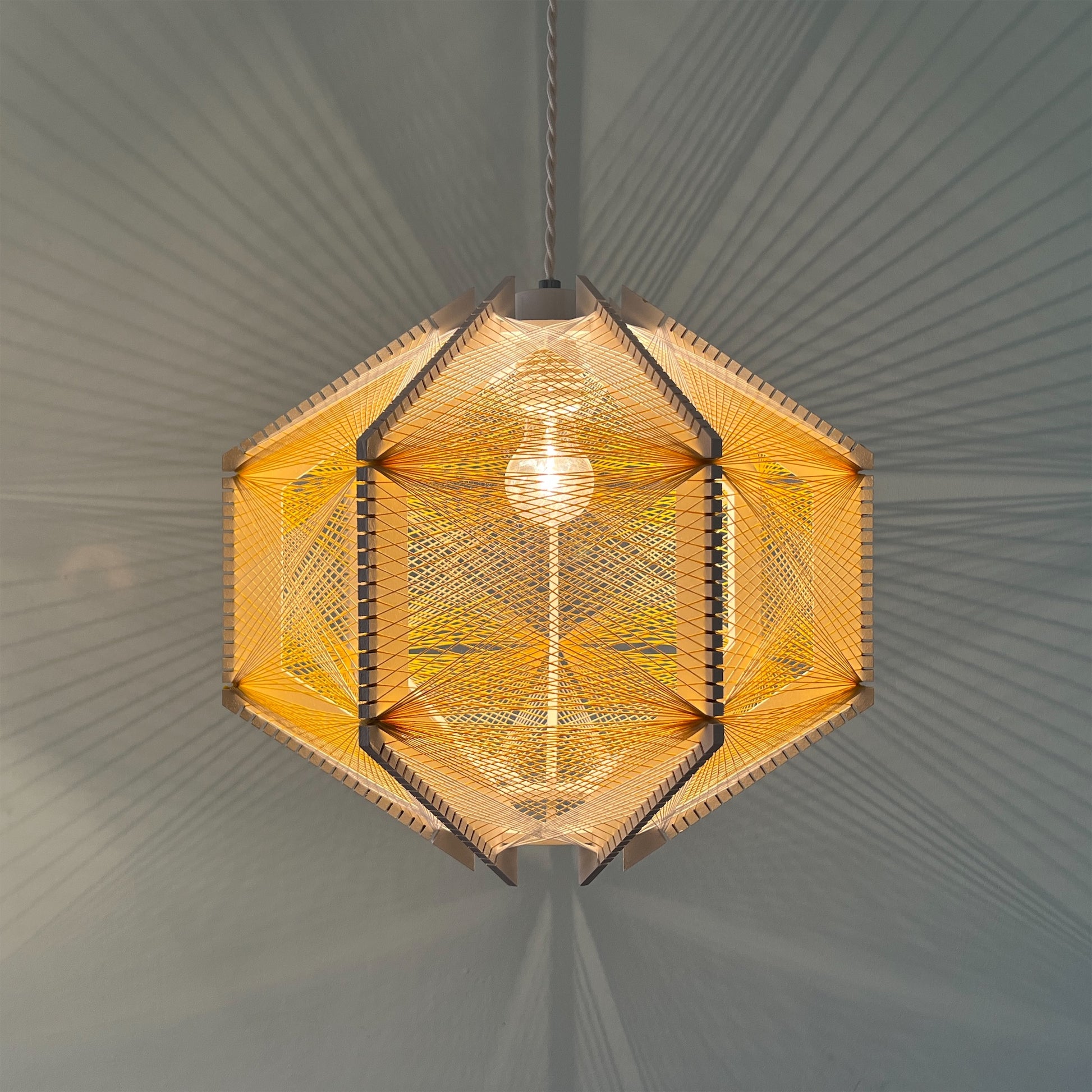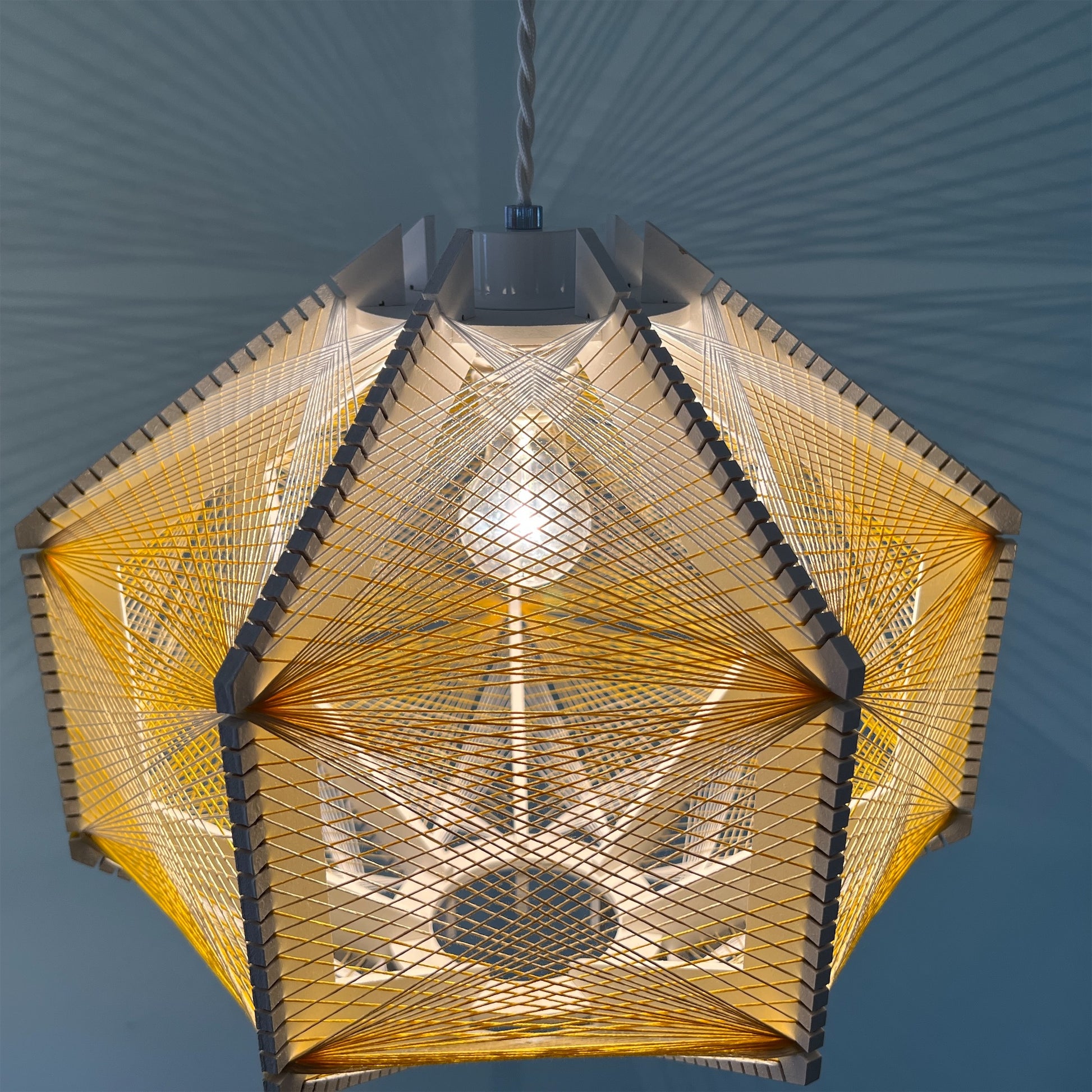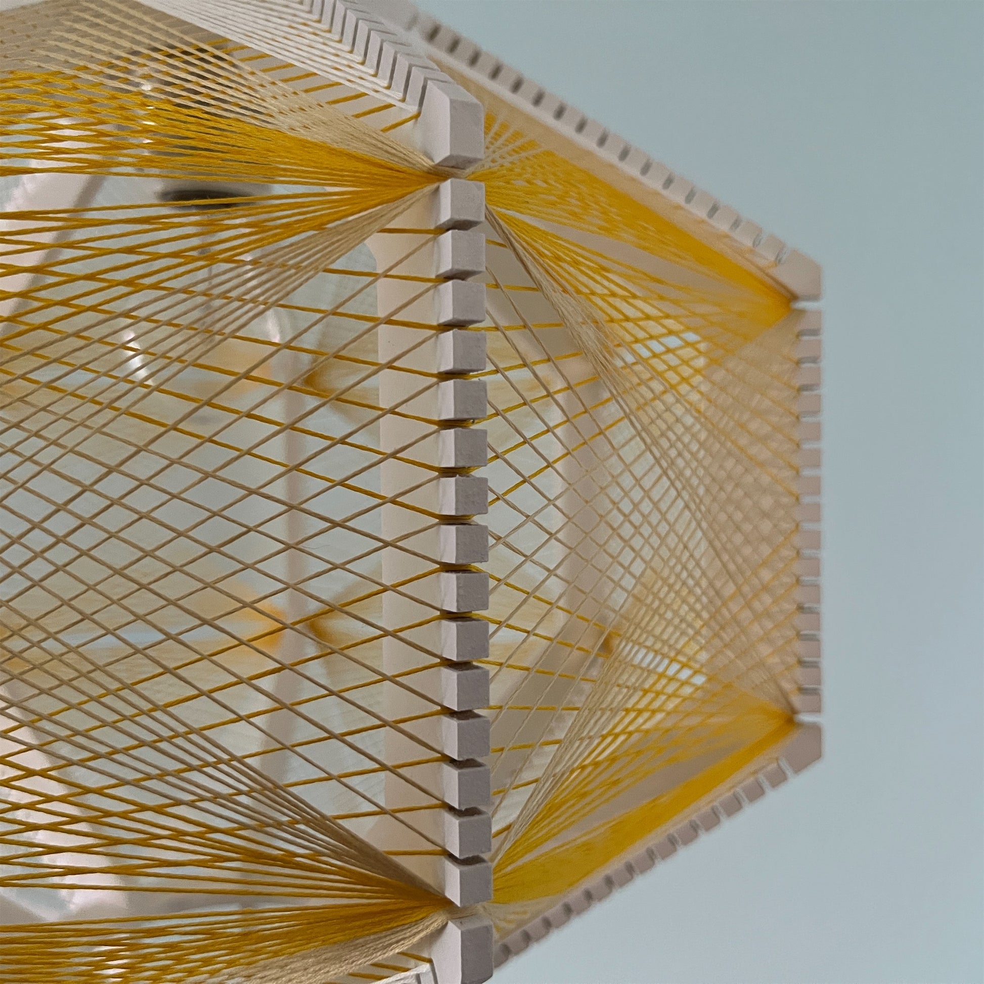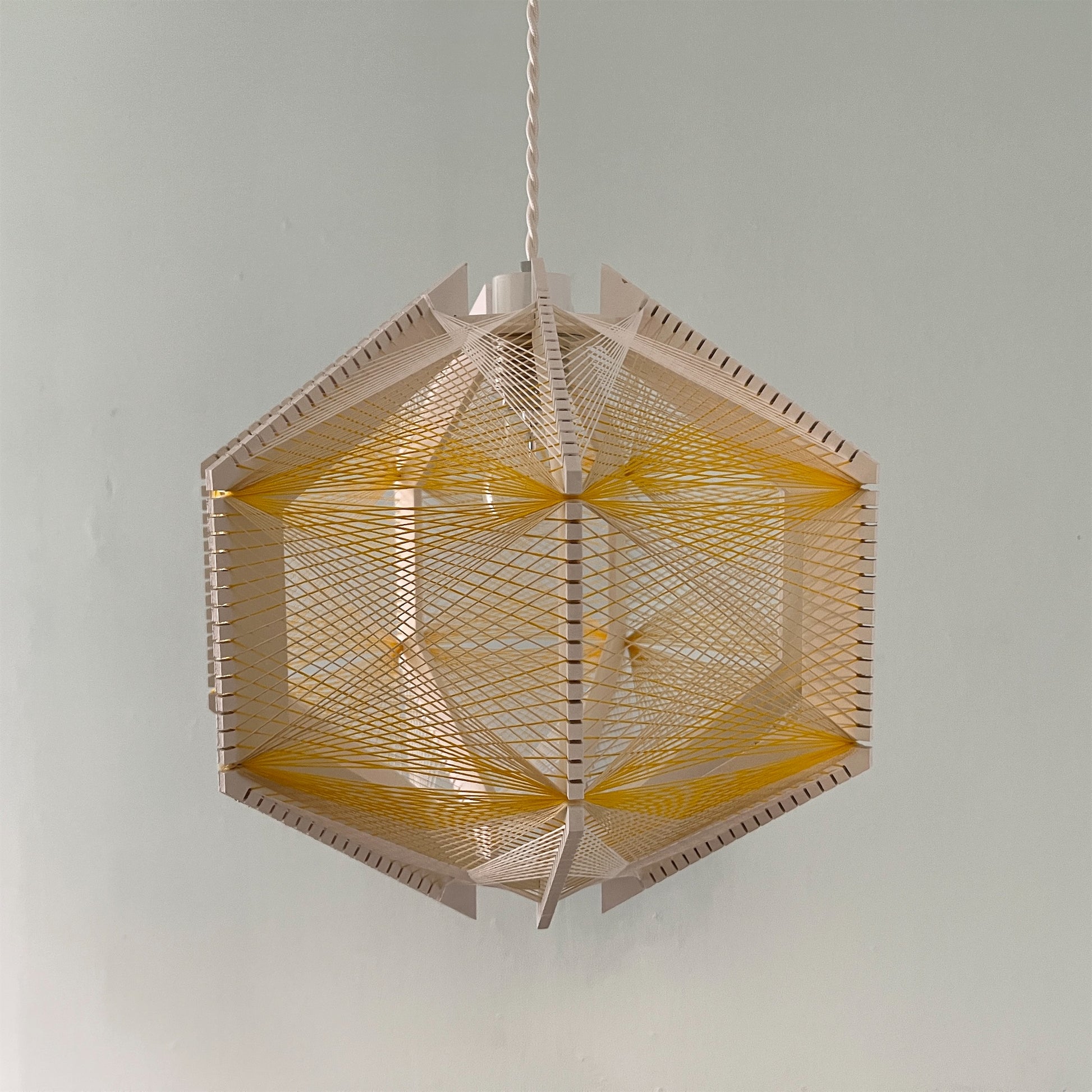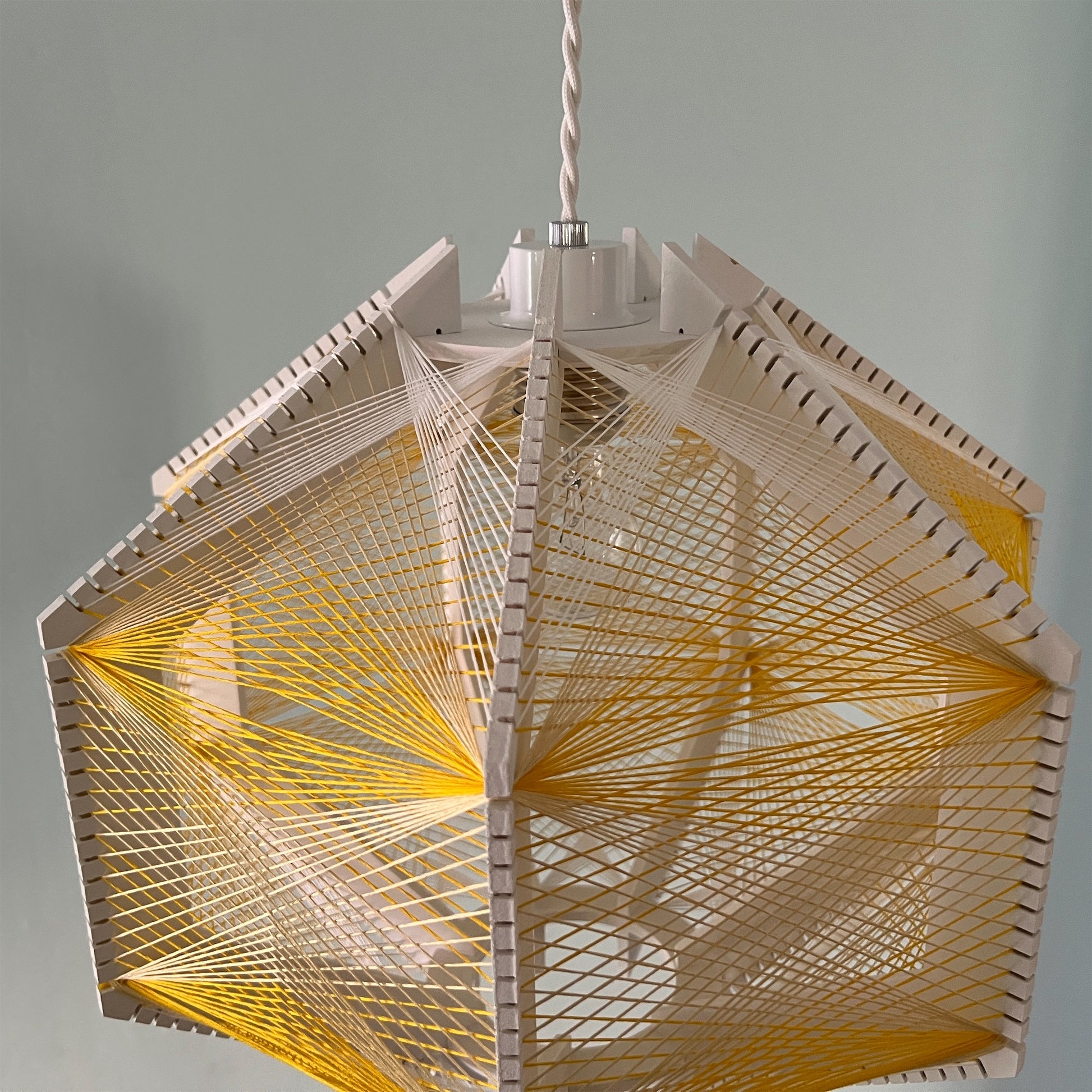 糸の交差が織りなす色彩のグラデーション、糸から溢れる光と影が空間を演出してくれる照明です。
