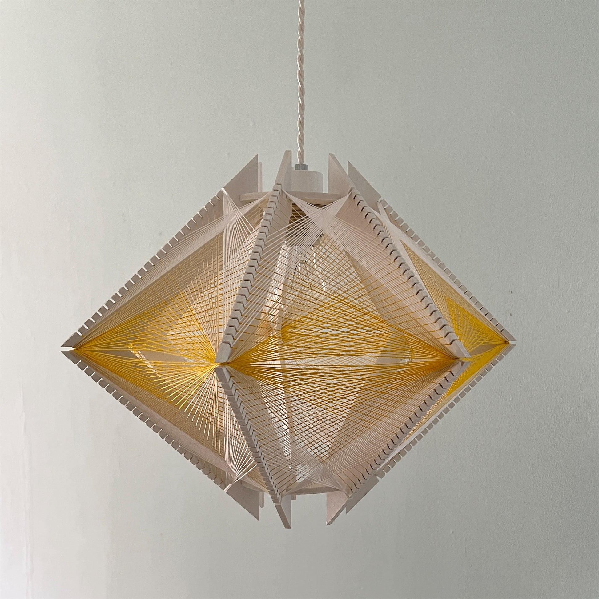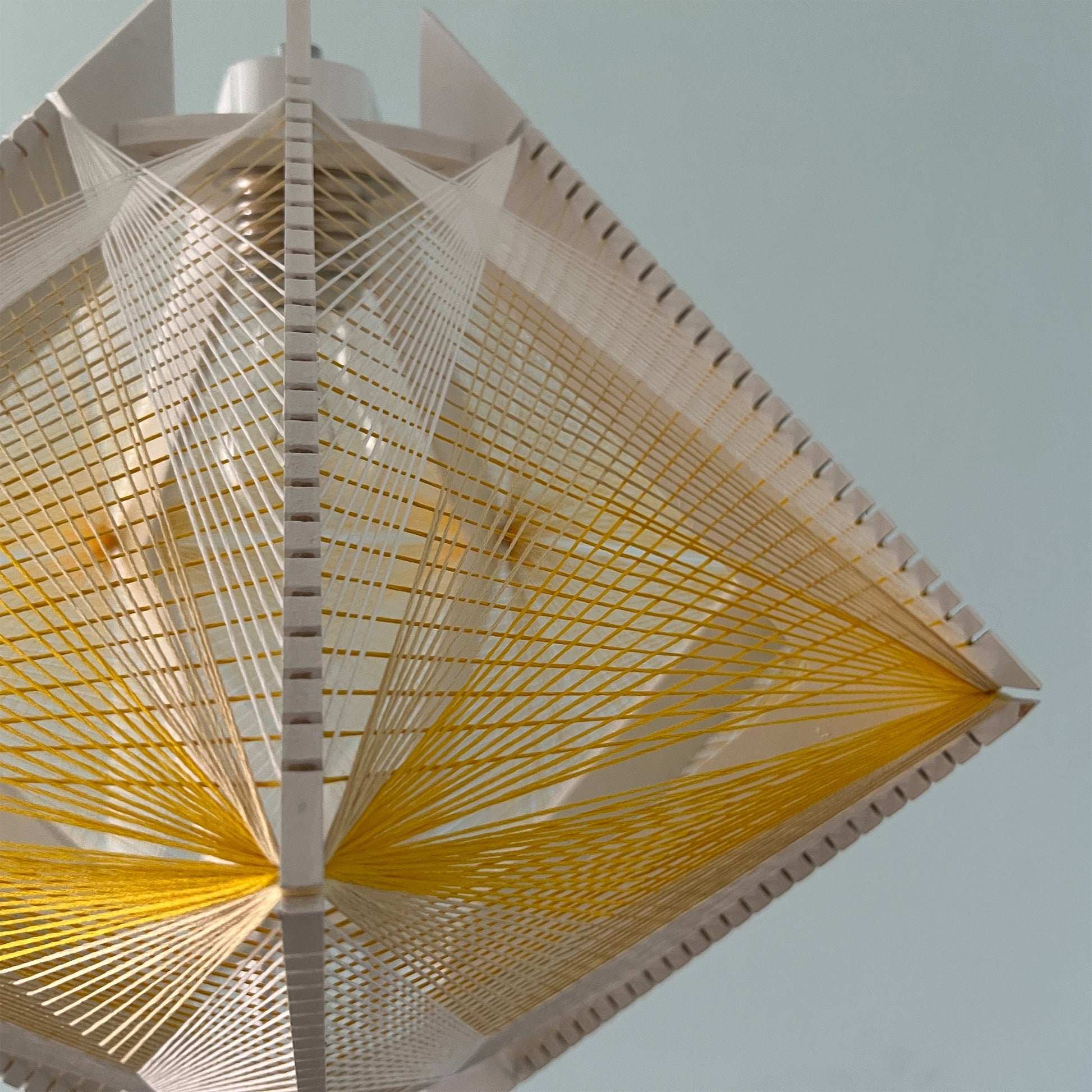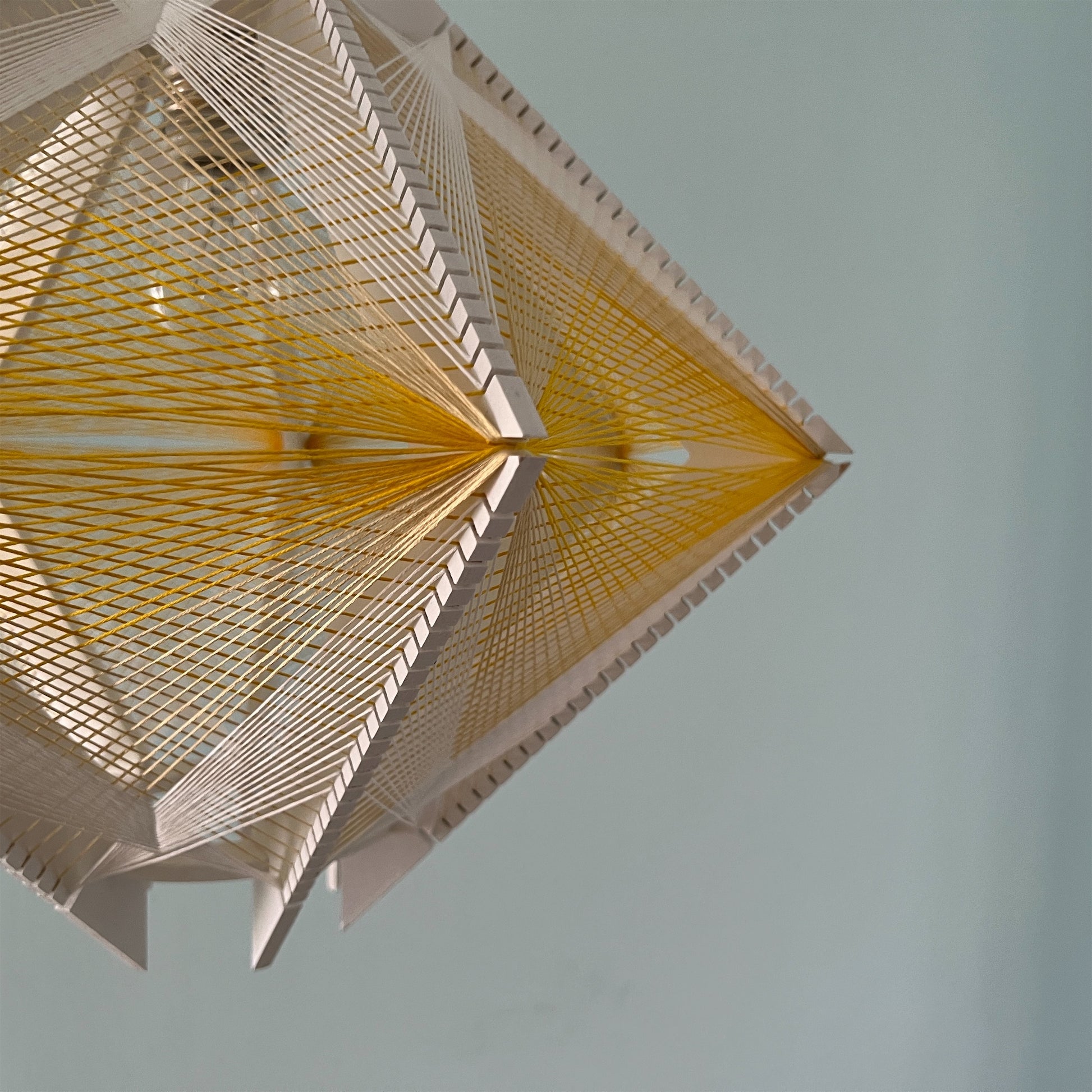 糸の交差が織りなす色彩のグラデーション、糸から溢れる光と影が空間を演出してくれる照明です。