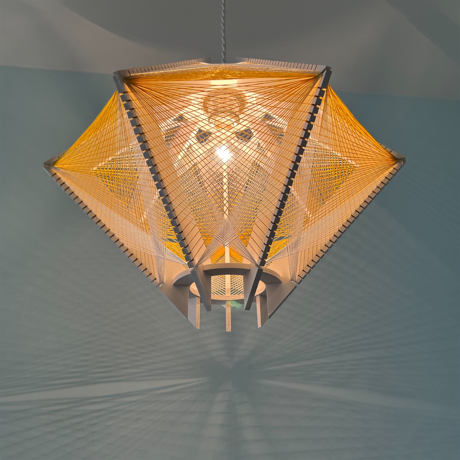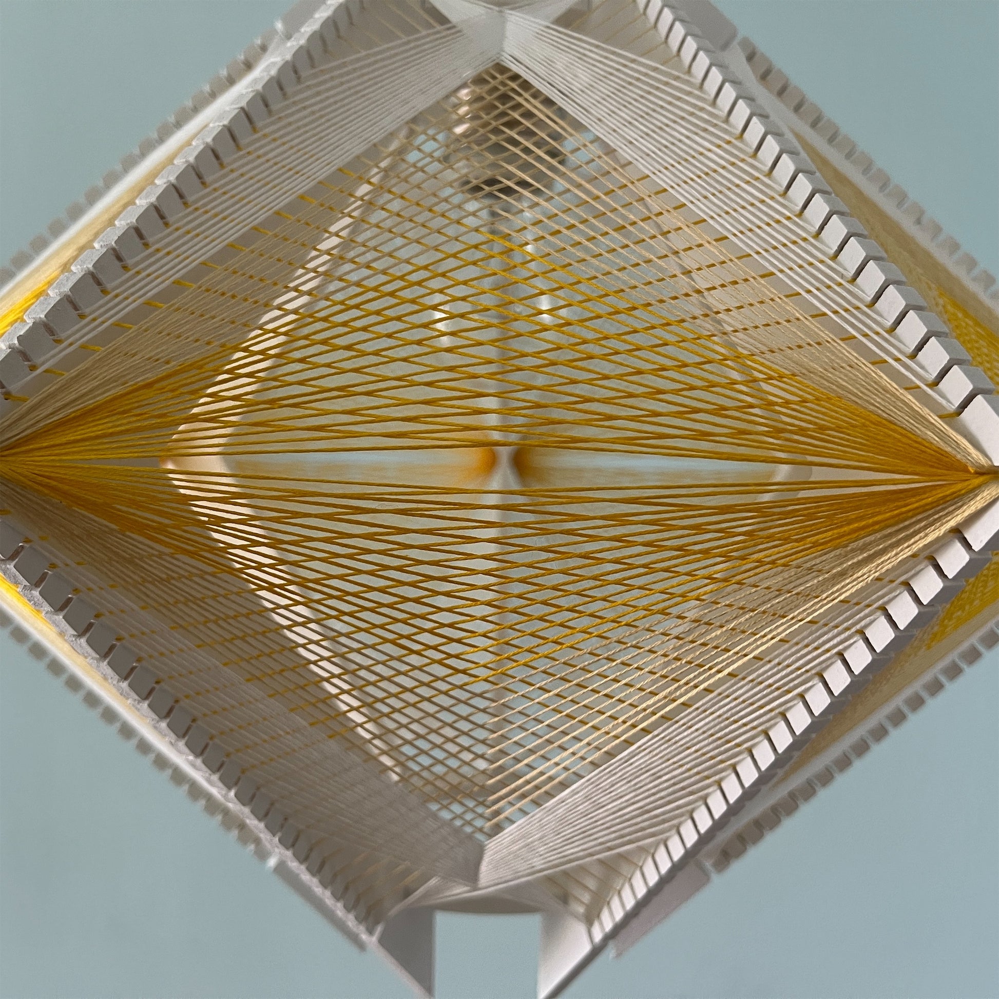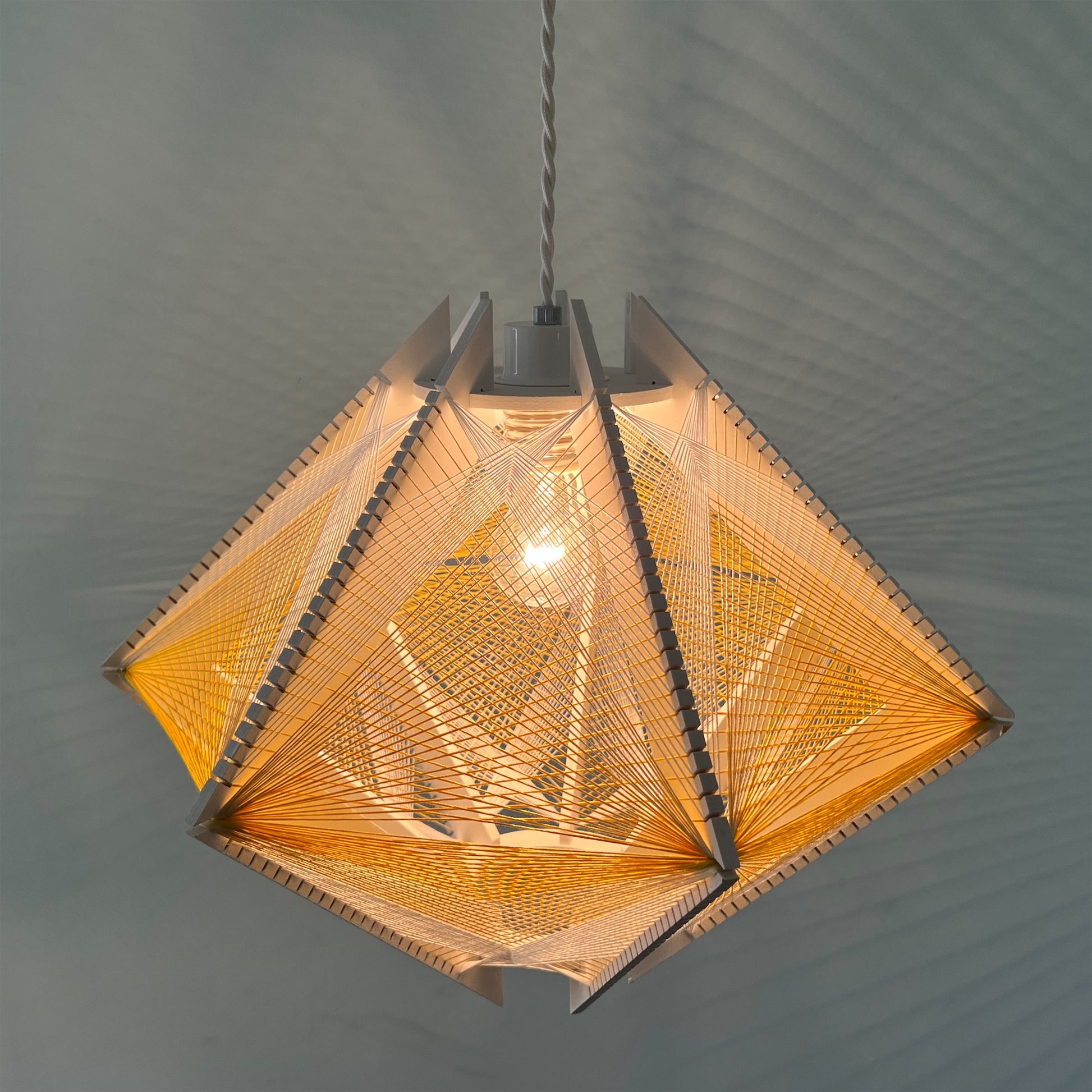 糸の交差が織りなす色彩のグラデーション、糸から溢れる光と影が空間を演出してくれる照明です。