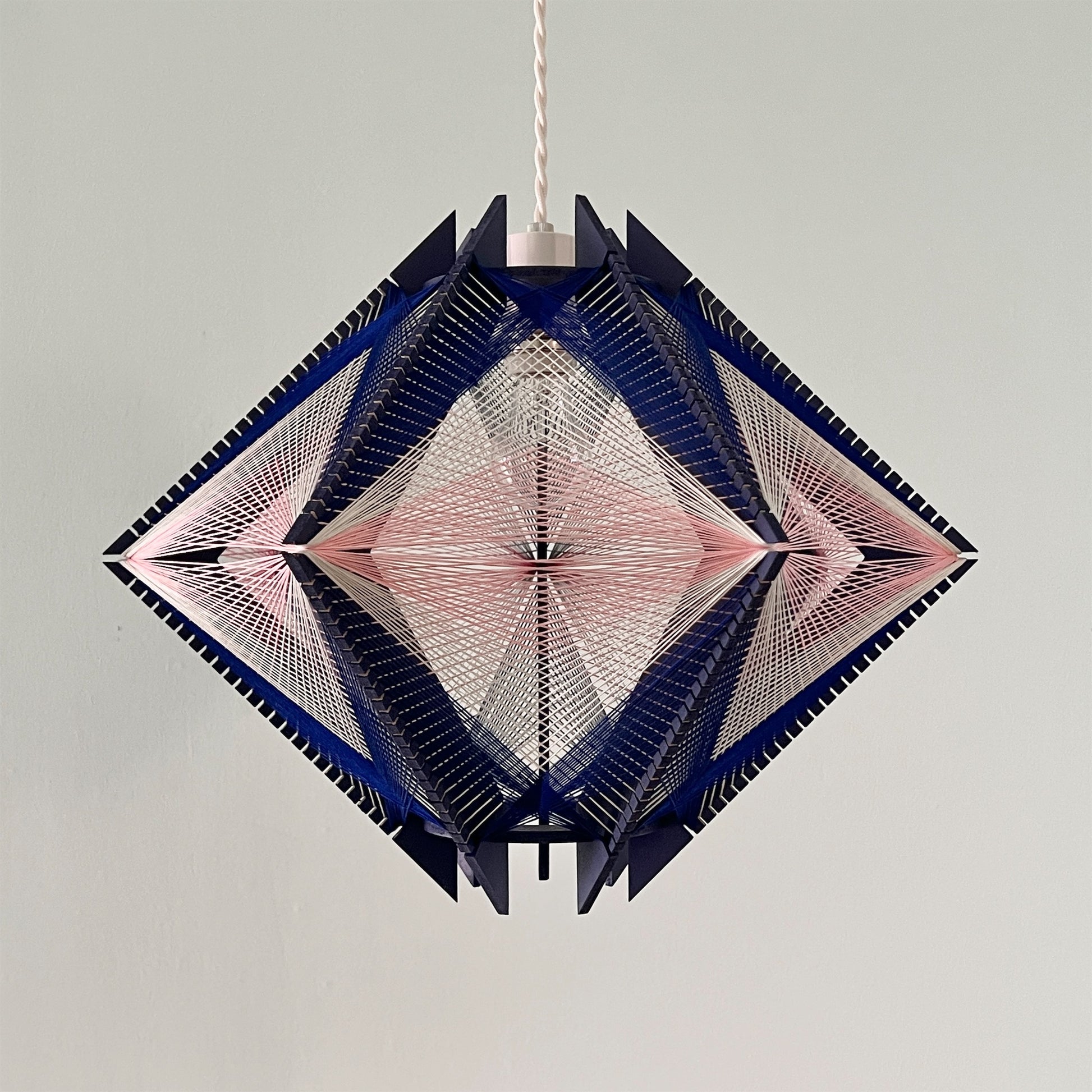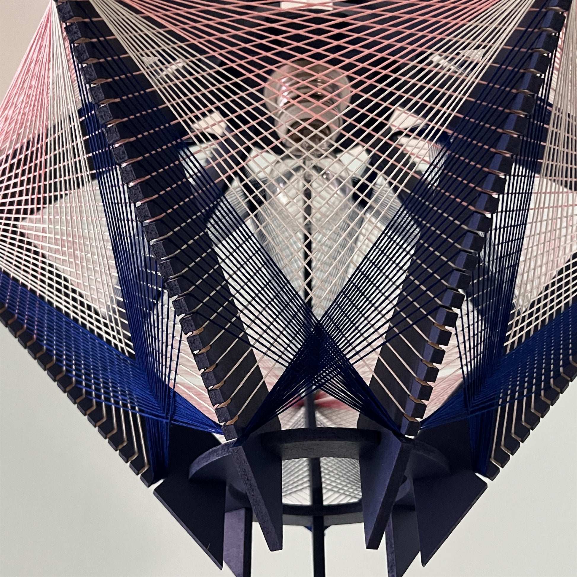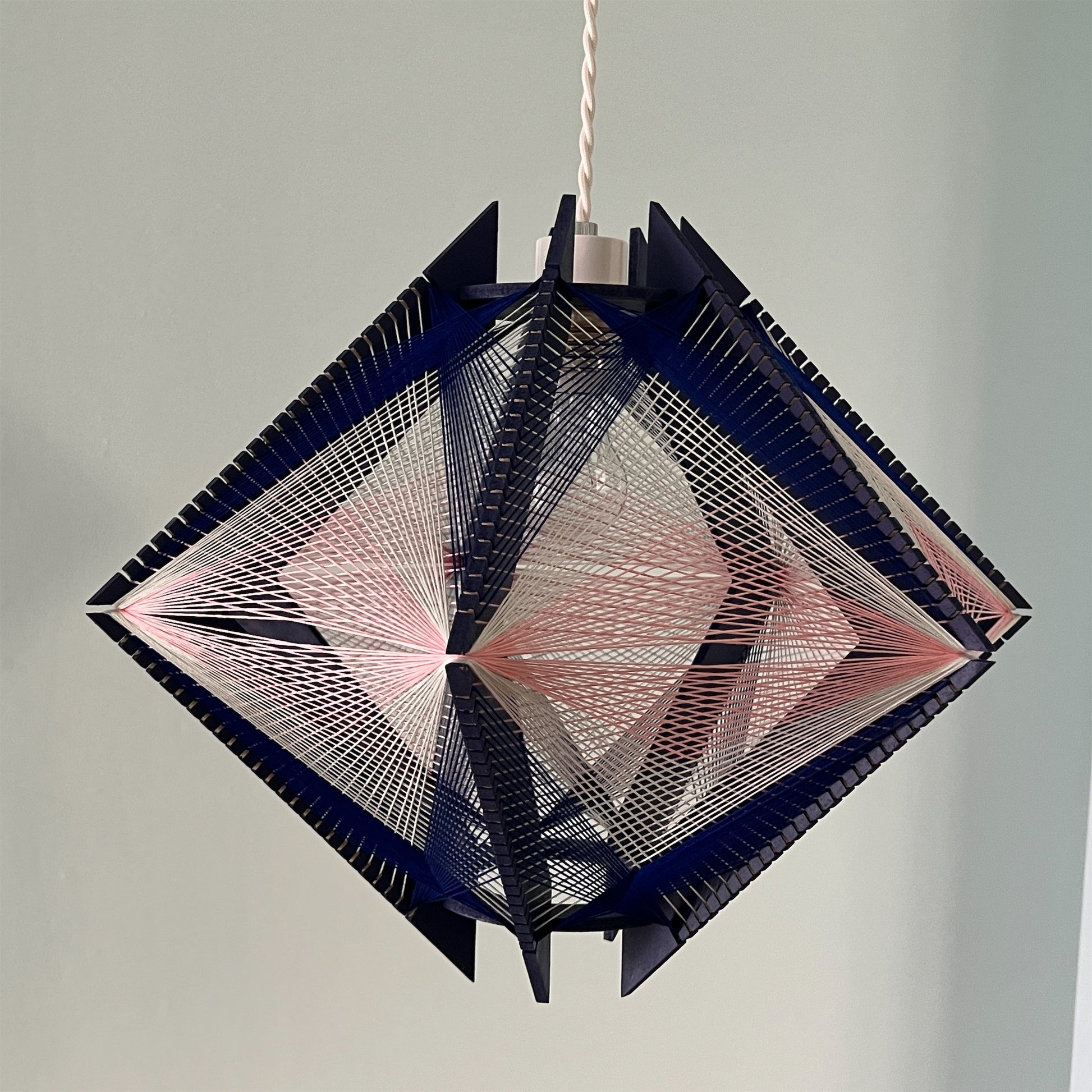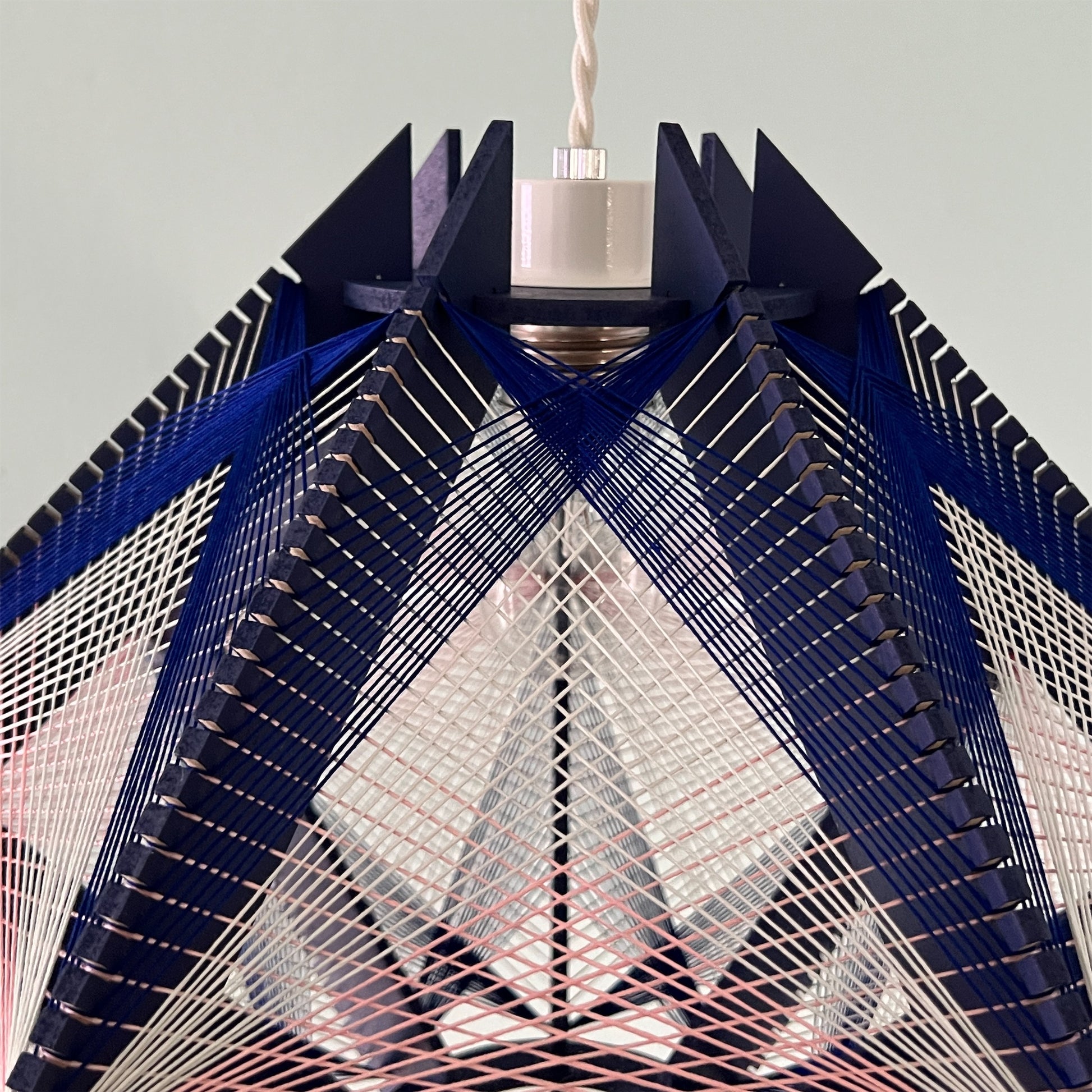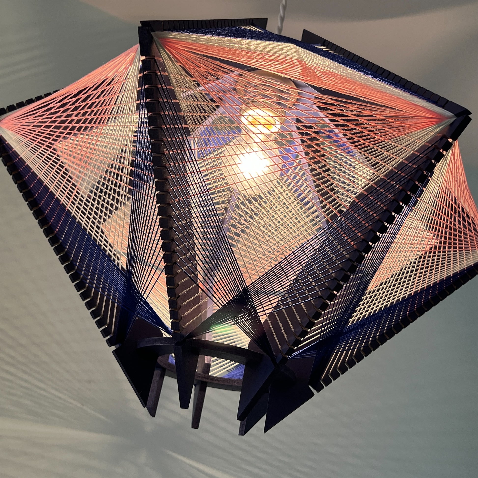 糸の交差が織りなす色彩のグラデーション、糸から溢れる光と影が空間を演出してくれる照明です。