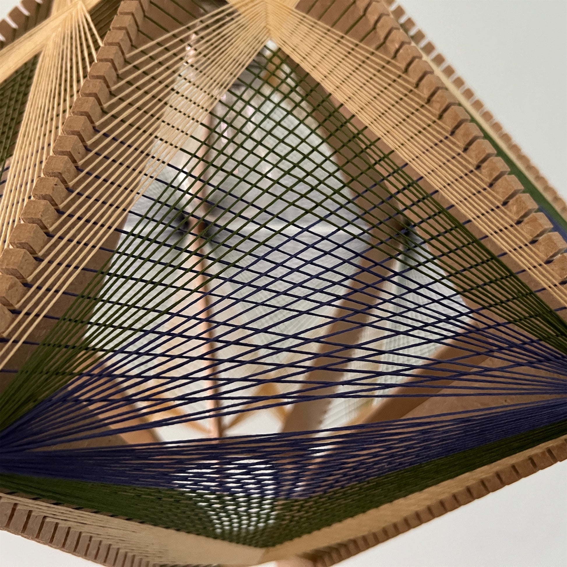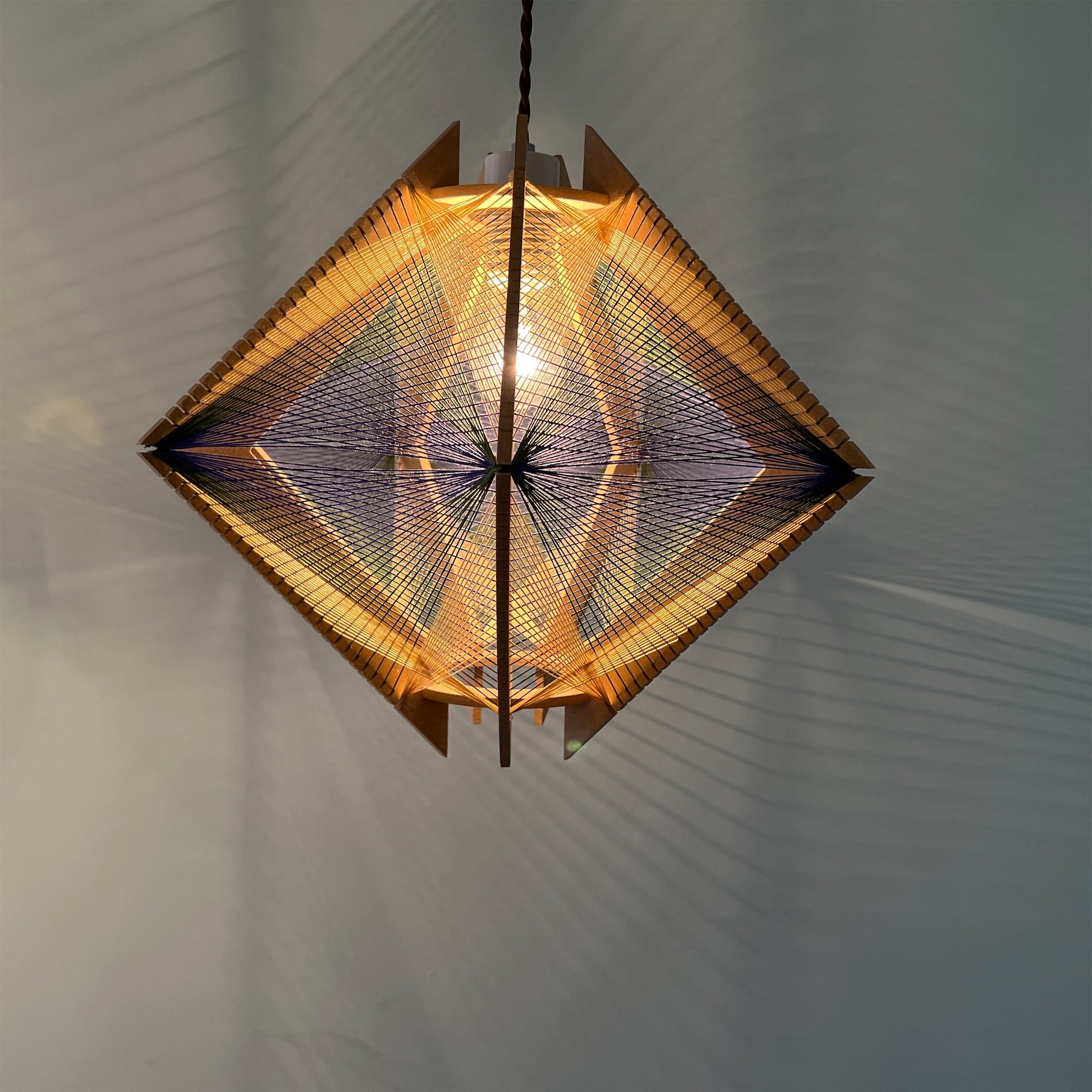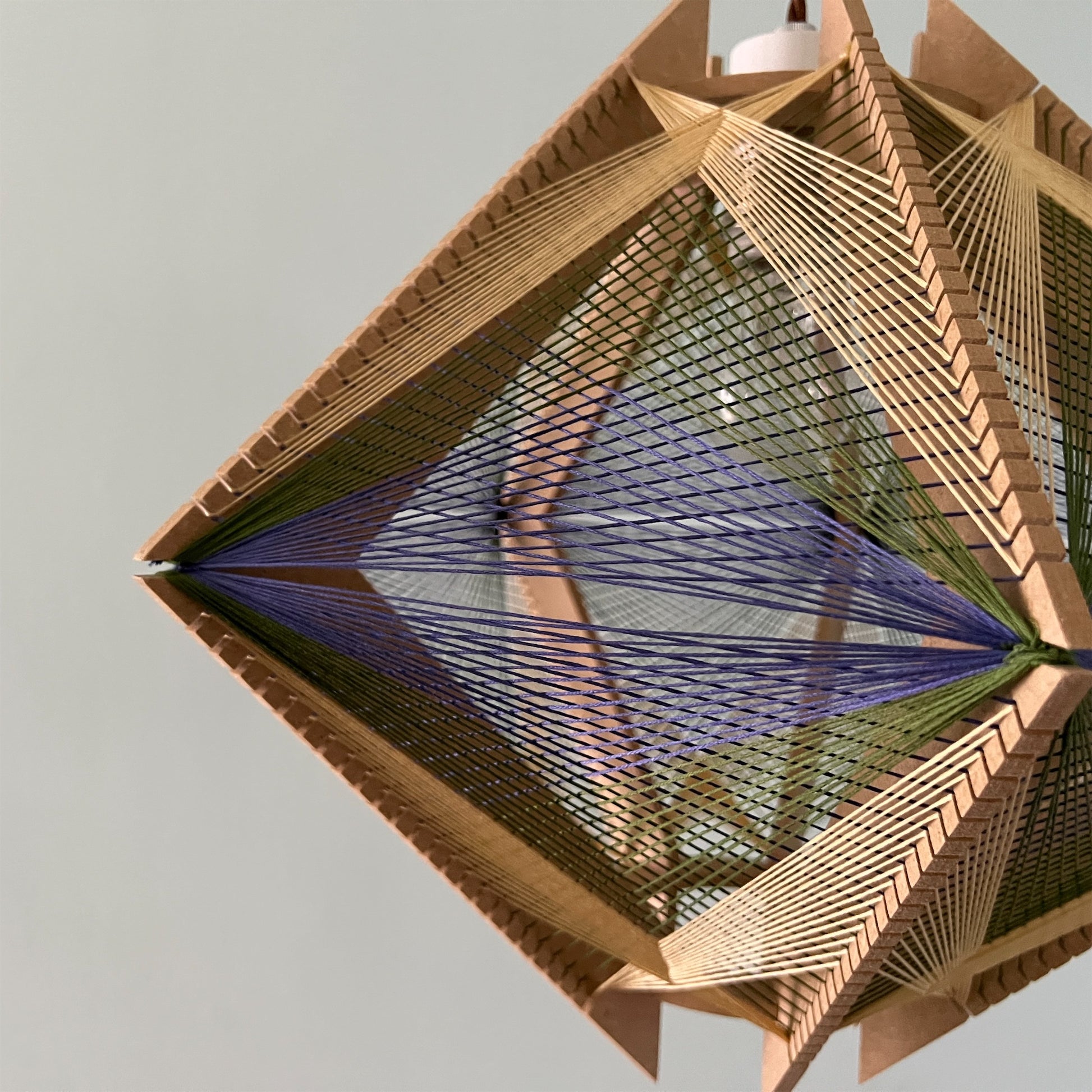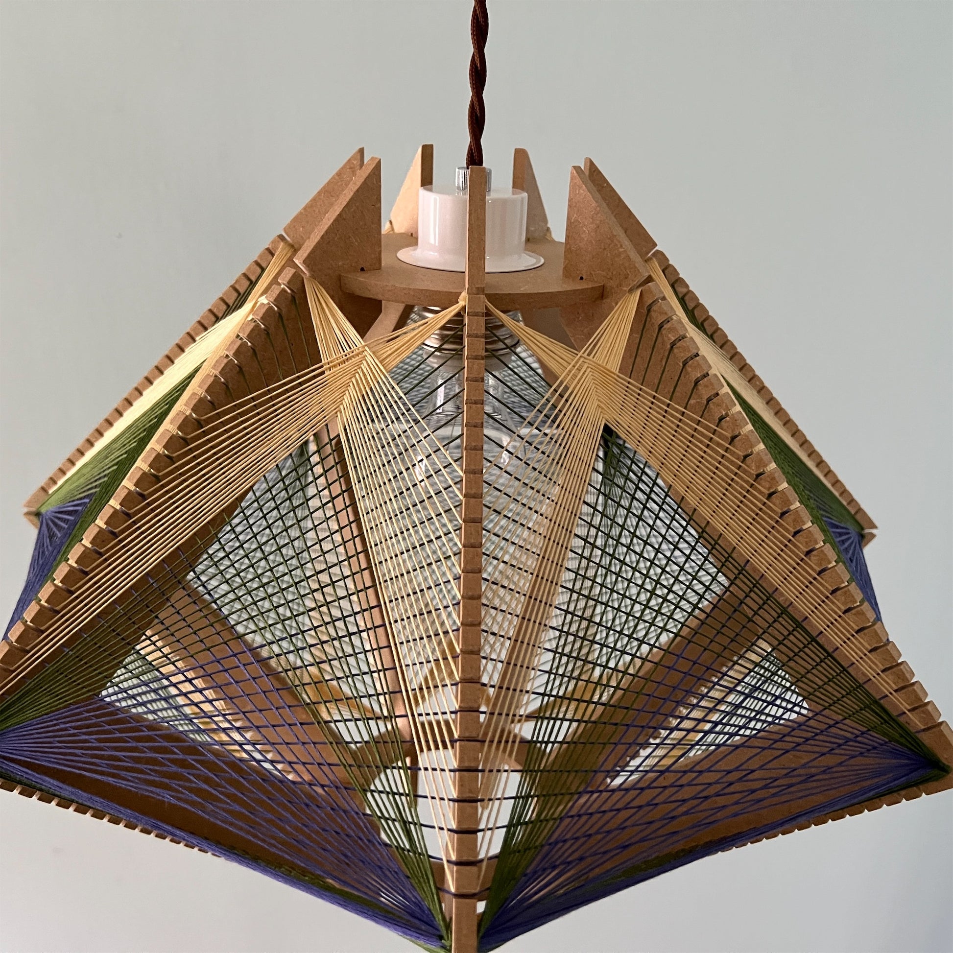 糸の交差が織りなす色彩のグラデーション、糸から溢れる光と影が空間を演出してくれる照明です。