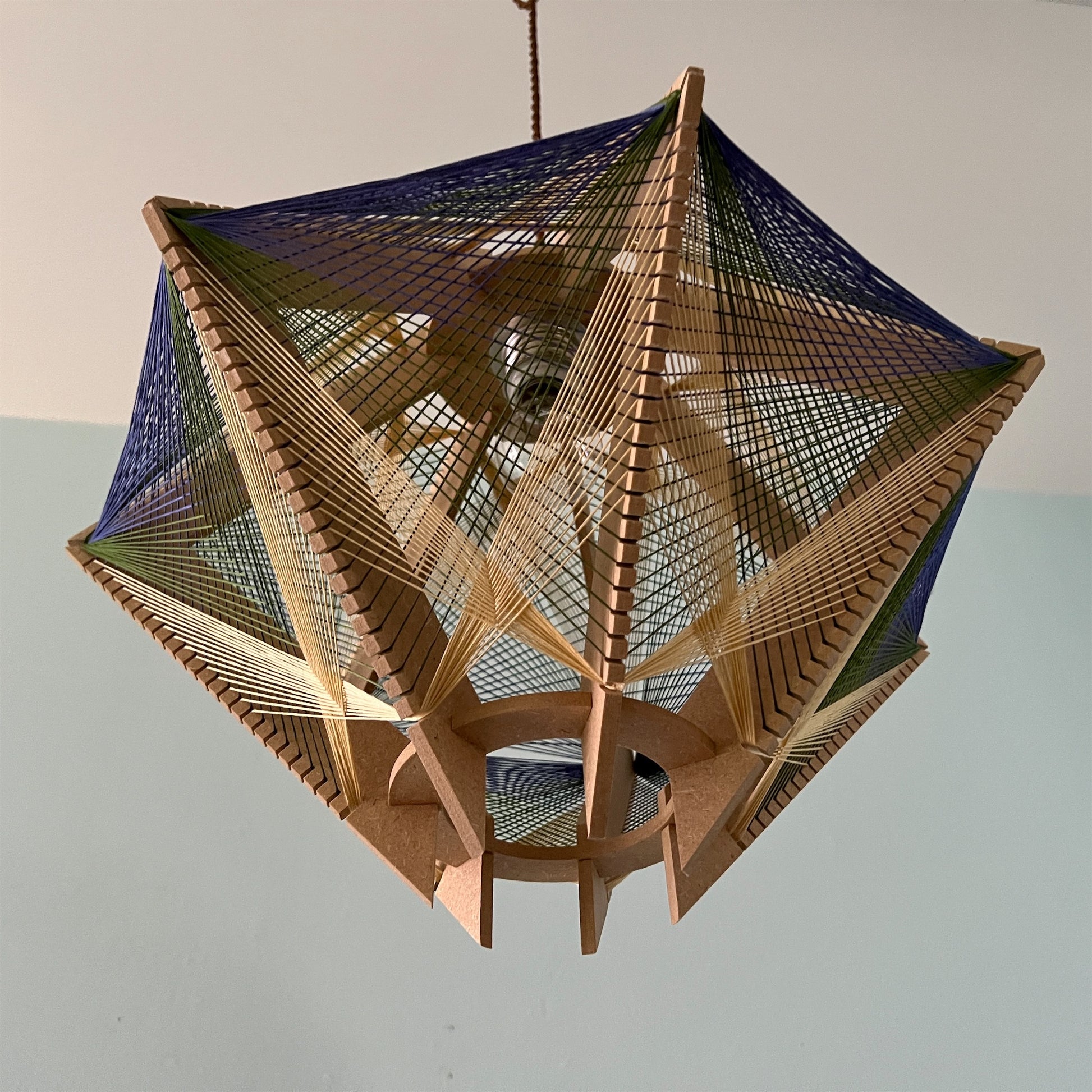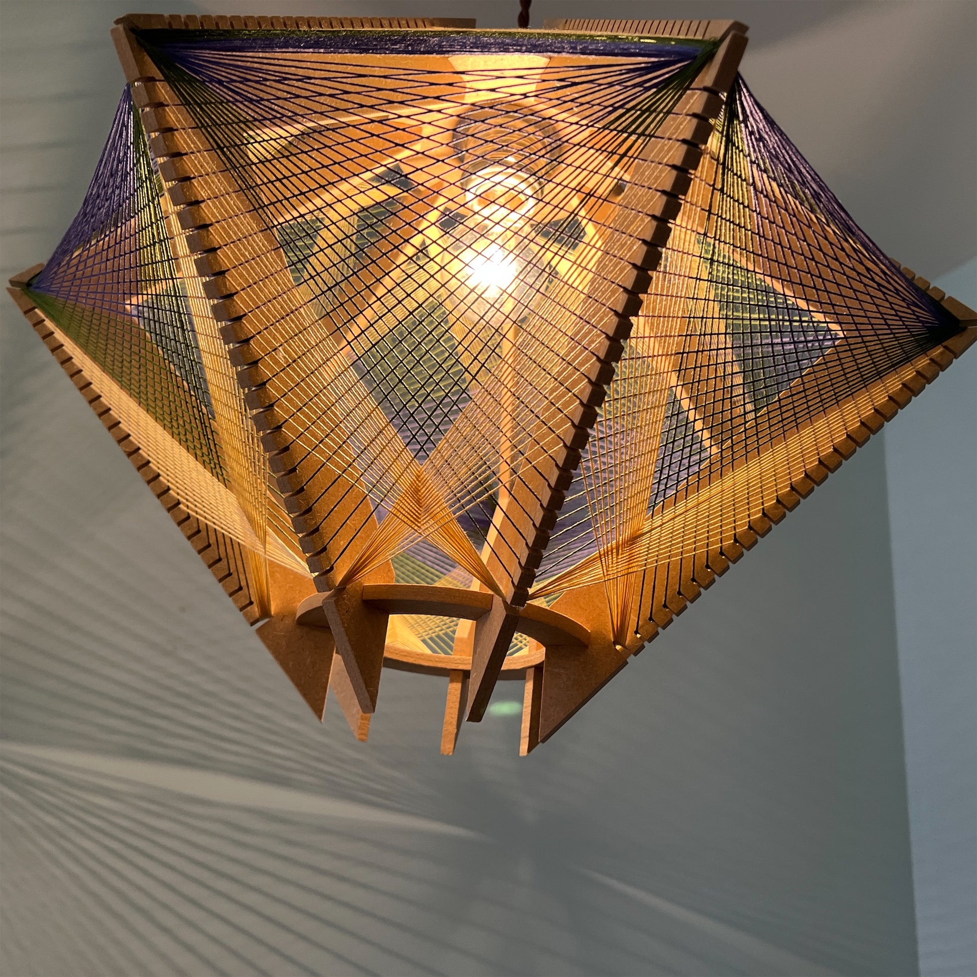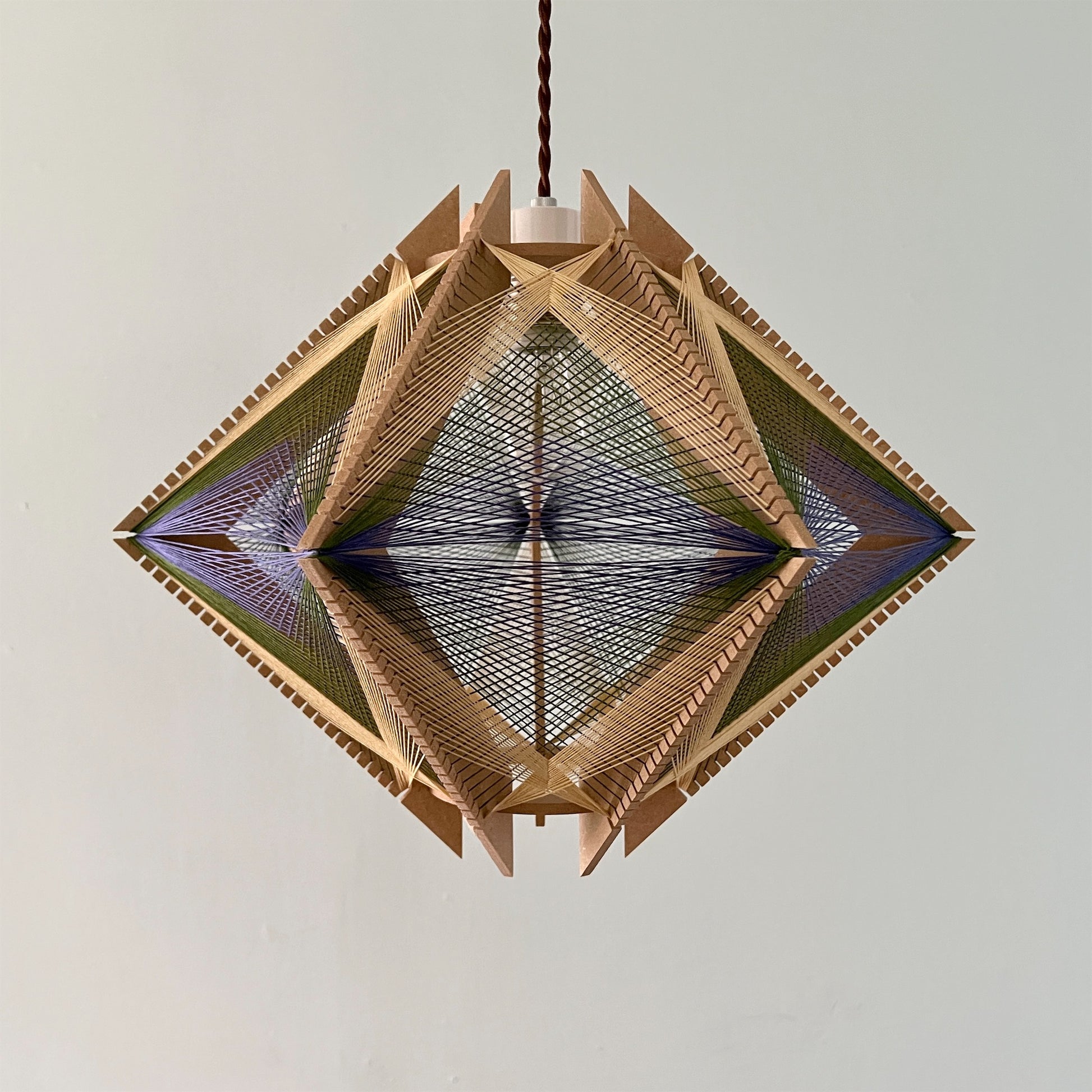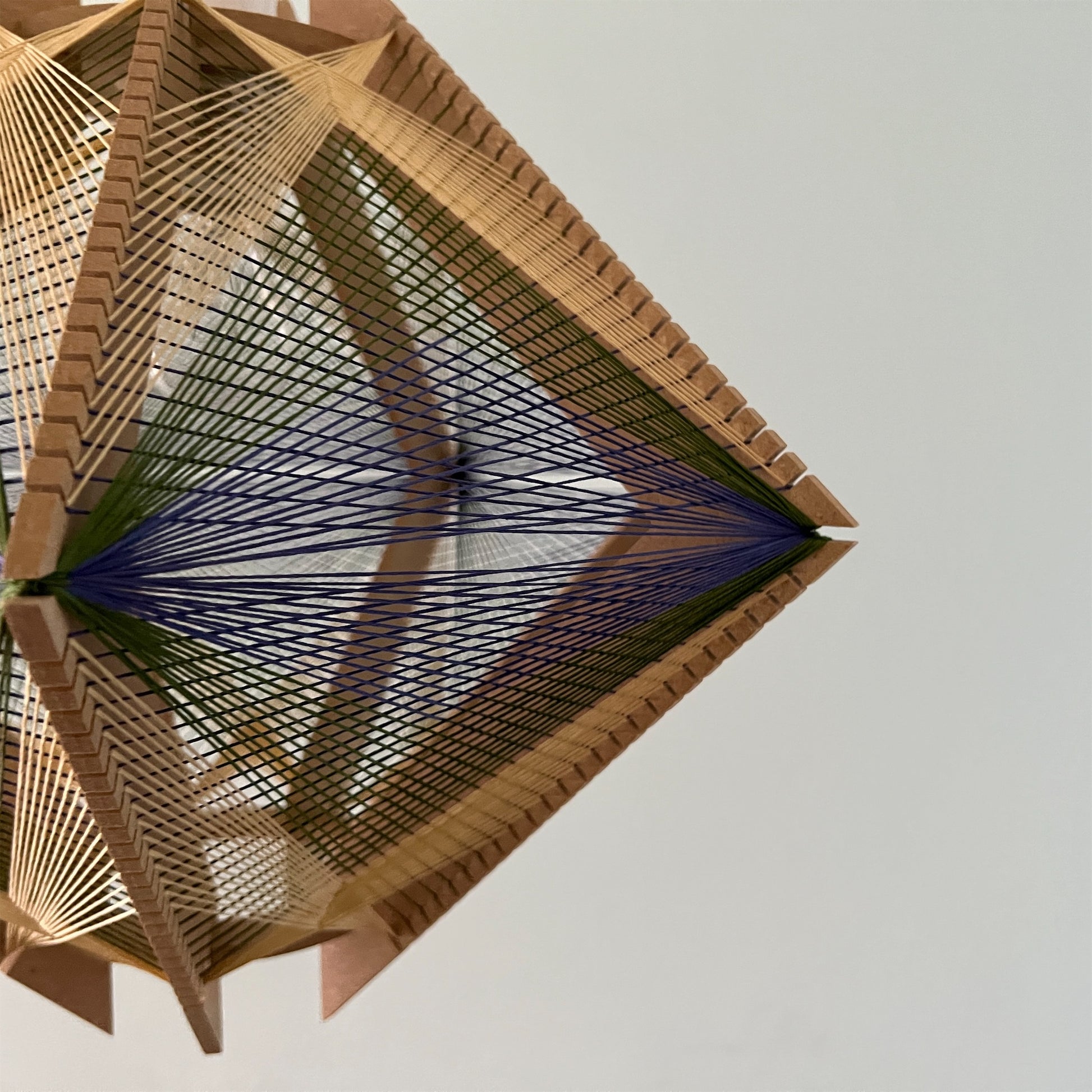 糸の交差が織りなす色彩のグラデーション、糸から溢れる光と影が空間を演出してくれる照明です。