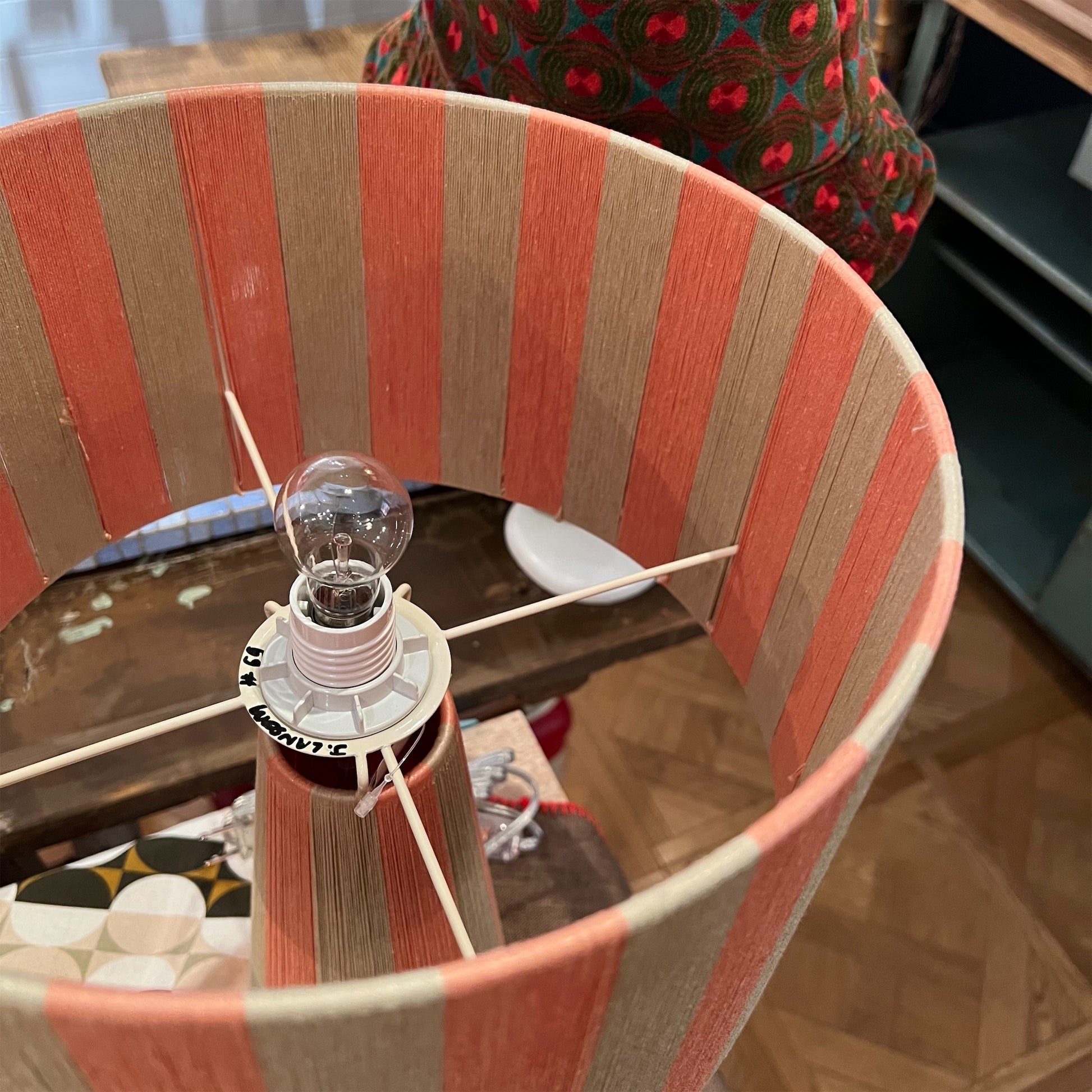 洋室にも和室にもヴィンテージにも相性良く、木枠と糸の優しい質感が空間を照らします。