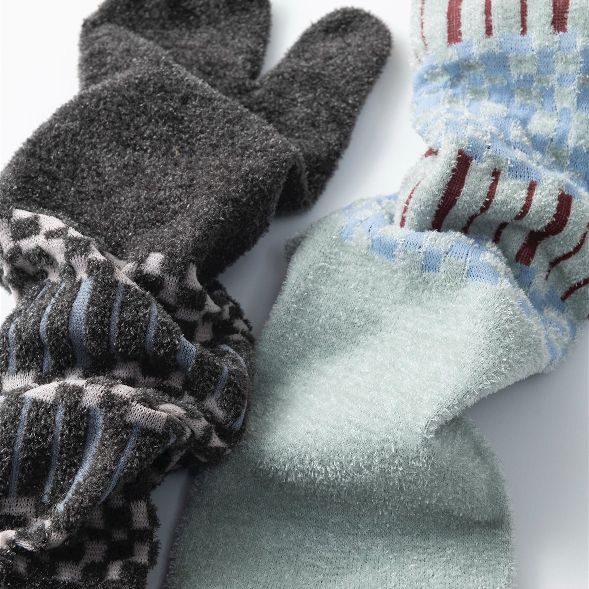 ベロア素材を使用した足袋型ソックス。柄部分に異素材の糸を使用しているため、凹凸感があり、秋冬時期でも華やかな色を取り入れやすいです靴下です。起毛感のあるベロア素材が、足を優しく包み込みリラックスした履き心地です。【TRICOTE】ニット生地を素材とした商品を展開するライフスタイルブランドこちらの商品は実店舗でも取り扱っております。オンラインショップ上でご注文いただいても、現品が実店舗にて「売約済」となっておりご希望に添えない場合もございます。その際はメールにてご連絡いたしますので、予めご了承ください。